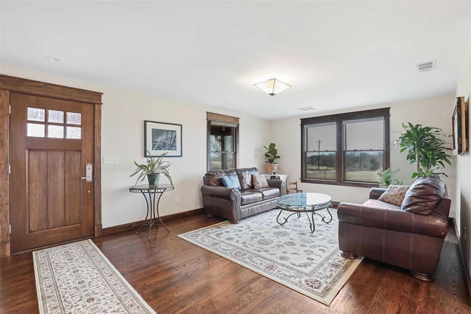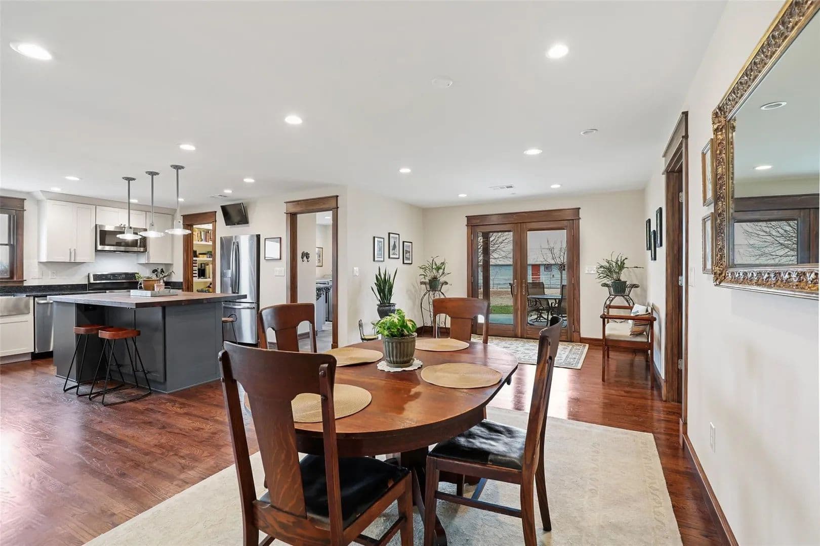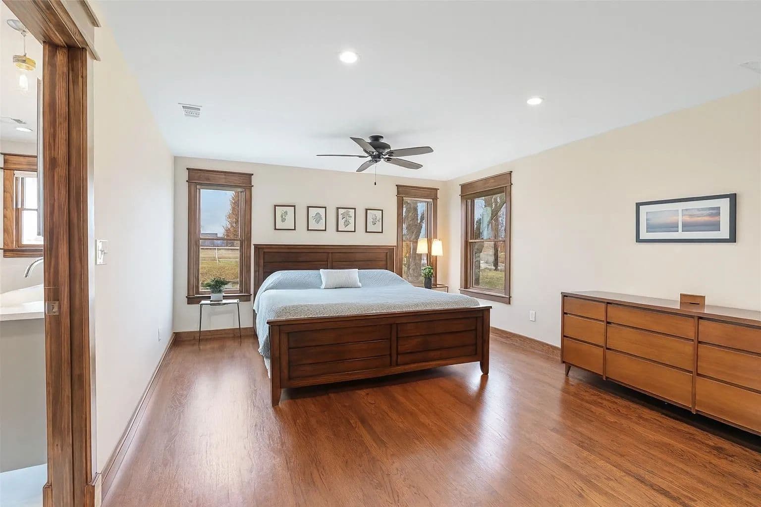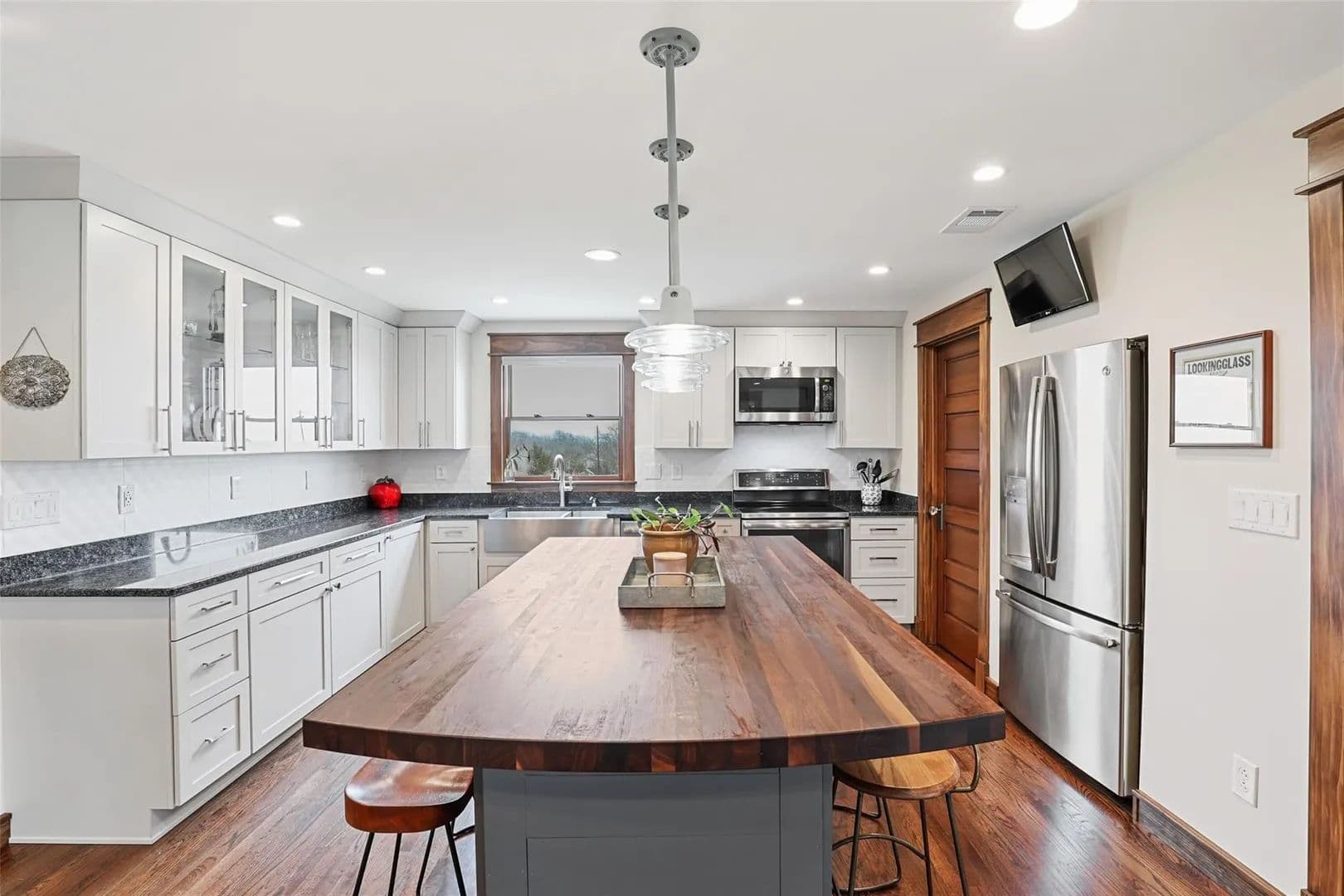 The custom farmhouse was completely rebuilt in 2019 with timeless style and modern efficiency. Inside, you’ll find an open layout with oak floors, LED lighting, and handcrafted details throughout. The kitchen shines with solid maple cabinetry, granite countertops, a large island, and farmhouse sink. The primary suite offers a spa-inspired bath with radiant heated floors, air jet tub, oversized glass shower, and a spacious walk-in closet.