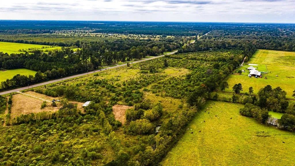 Over 1/2 a mile of Hwy 105 frontage just over an hour from Downtown Houston. 1,100 sqft concrete floor barn onsite had previous construction begun for living quarters and never completed. Blank slate to now make it your own. This tract features 3 ponds and utilities available in multiple locations.