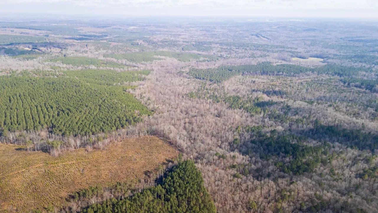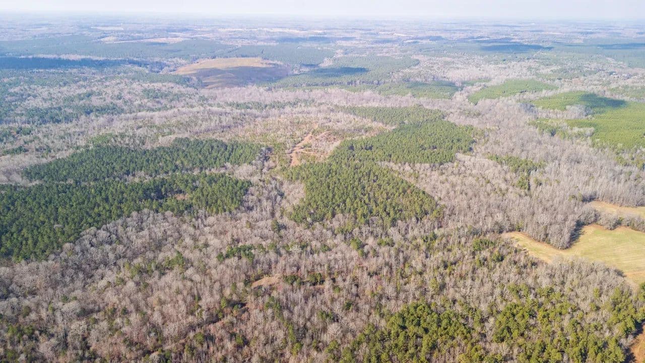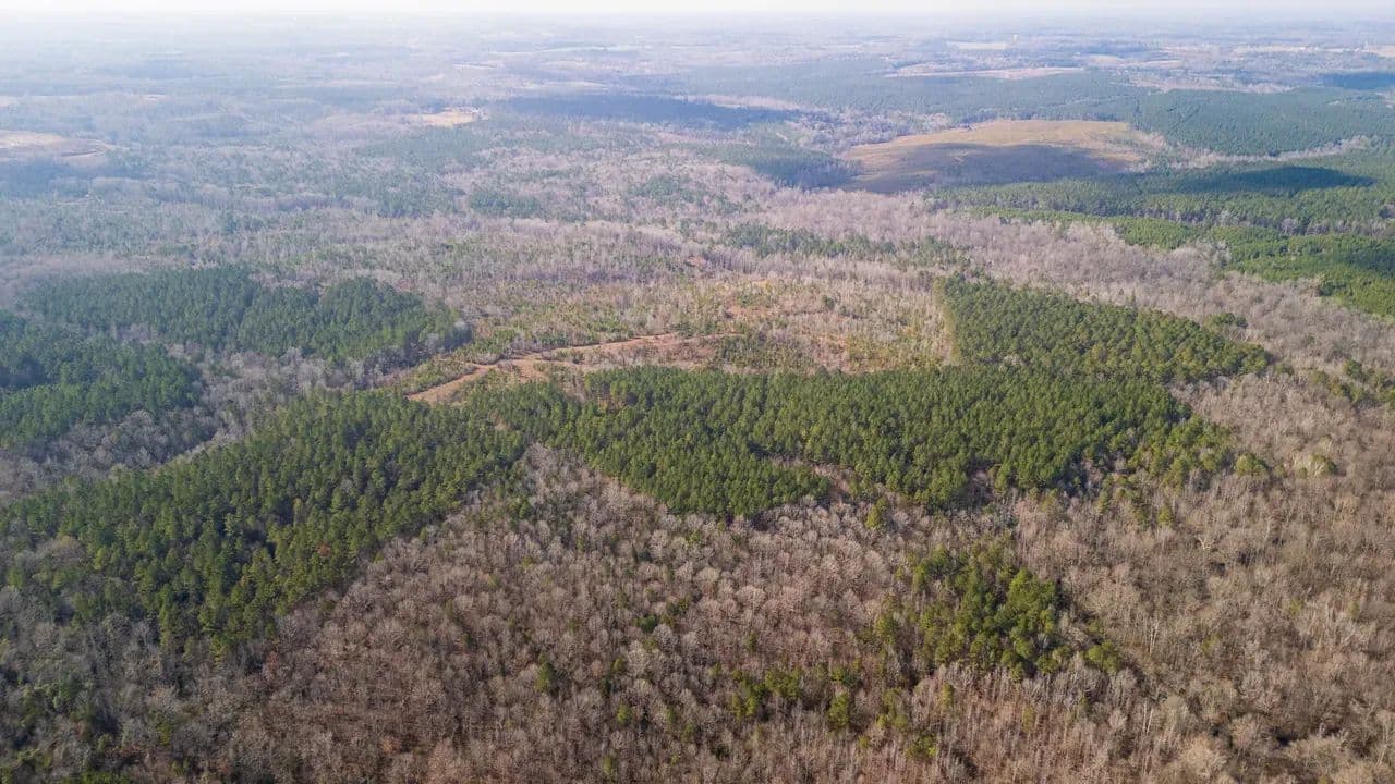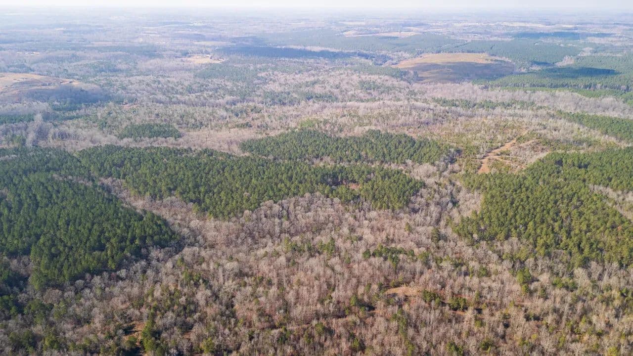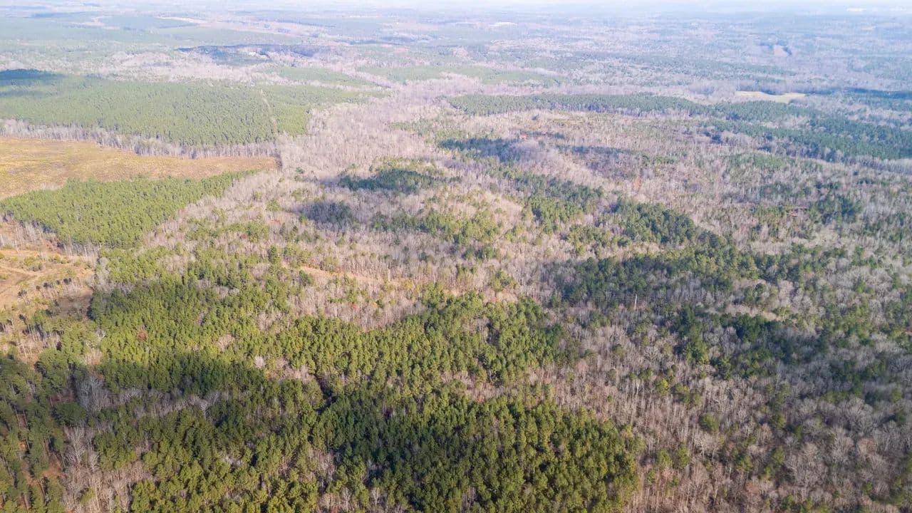 The land features outstanding wildlife habitat, supporting healthy populations of whitetail deer, wild turkeys, and upland game, making it well-suited for both recreational enjoyment and conservation-minded ownership. Flat Creek meanders through the heart of the property, providing scenic water frontage, natural travel corridors for wildlife, and additional ecological value.