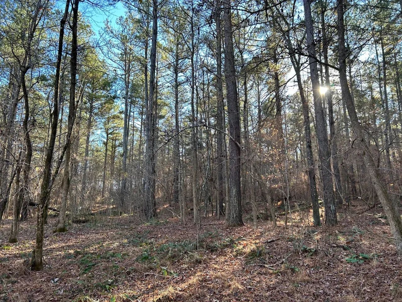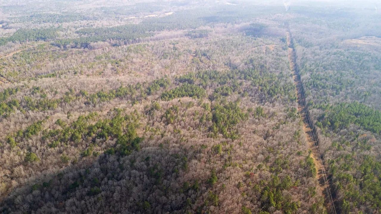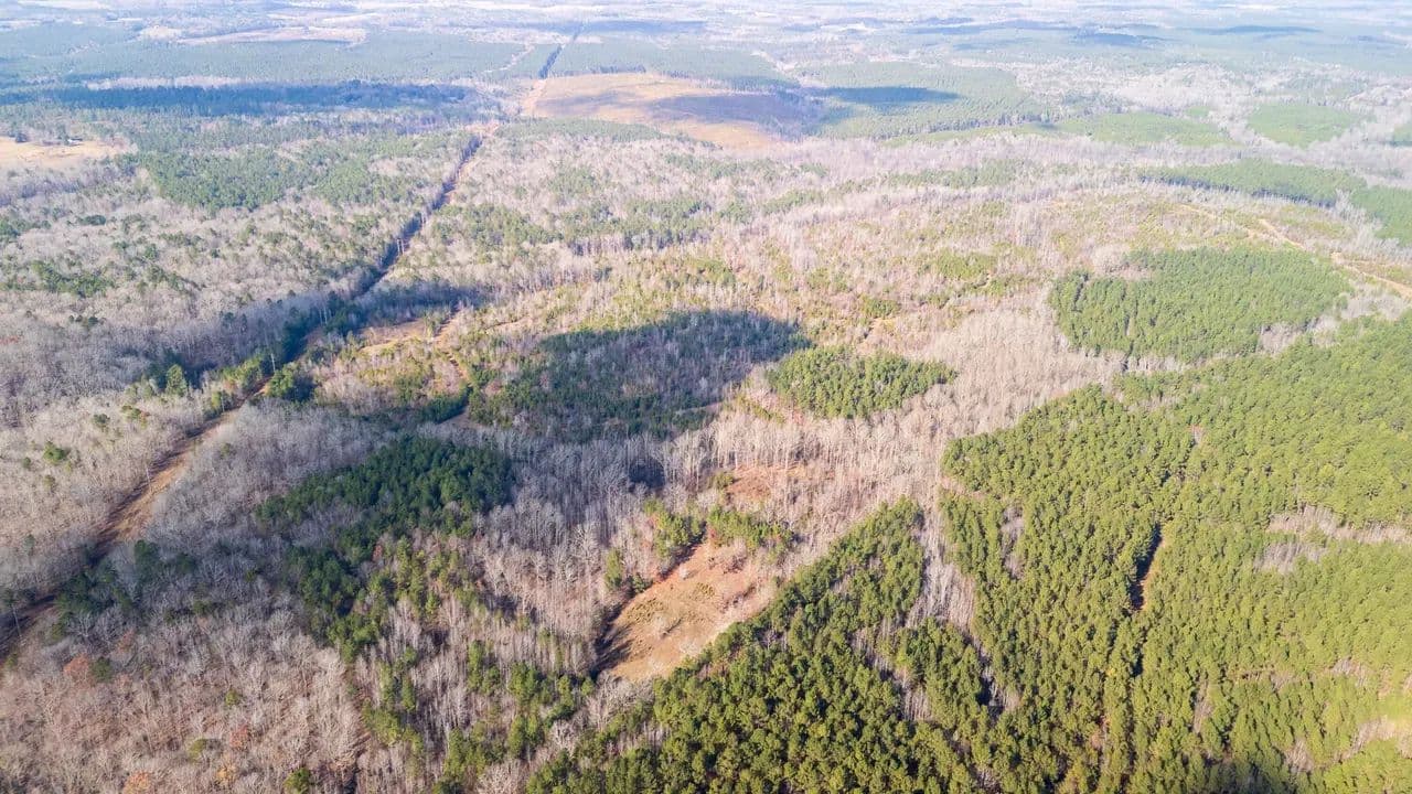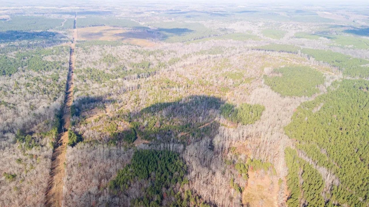 The land features outstanding wildlife habitat, supporting healthy populations of whitetail deer, wild turkeys, and upland game, making it well-suited for both recreational enjoyment and conservation-minded ownership. Flat Creek meanders through the heart of the property, providing scenic water frontage, natural travel corridors for wildlife, and additional ecological value.
