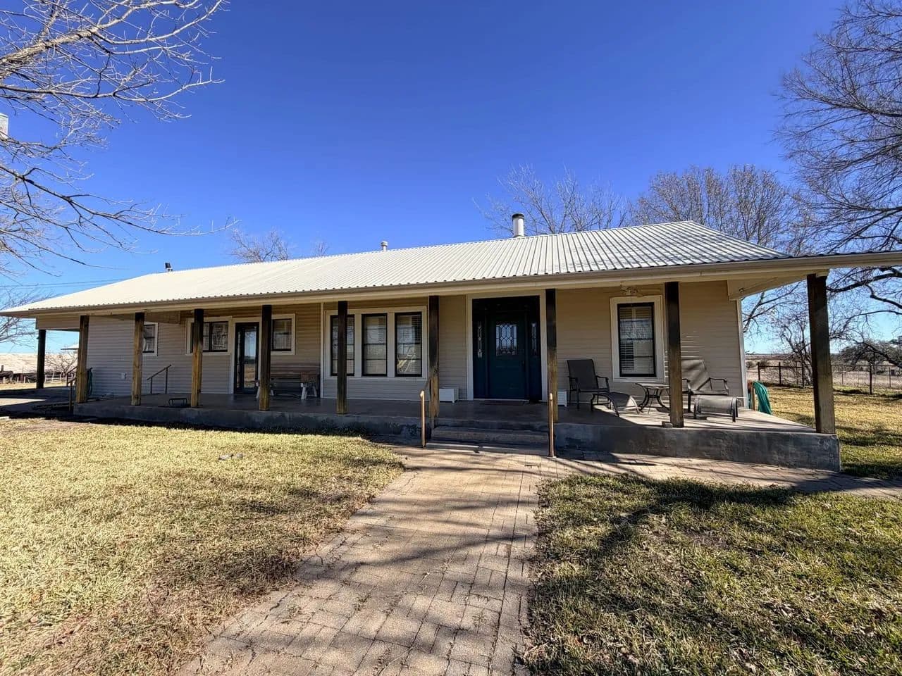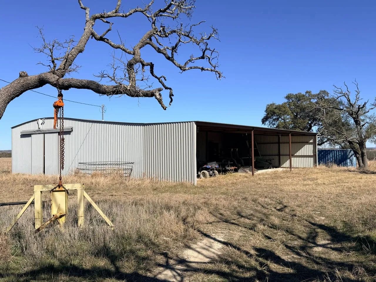 The property is divided into two tracts by the county road. The north part is approximately 90 acres and holds the 2,500 sq ft. ranch house. The home is modest and roomy offering three dedicated bedroom, two baths, dining room, office, living room, kitchen, washroom, and three covered porches to sit back and relax and watch the deer and livestock from. The yard is well cared for landscaping including oak and fruit trees have been planted years ago providing a ranch home aura to be appreciated. The homesite also offers a covered carport, tool shed, well house, a storm cellar, and enclosed garage with tool storage. Behind the house is the barn with storage for tools, tack, and feed, and enclosed tractor/hay area. The covered implement shed is next to the barn ideal for storing trailers, hay equipment, etc.
