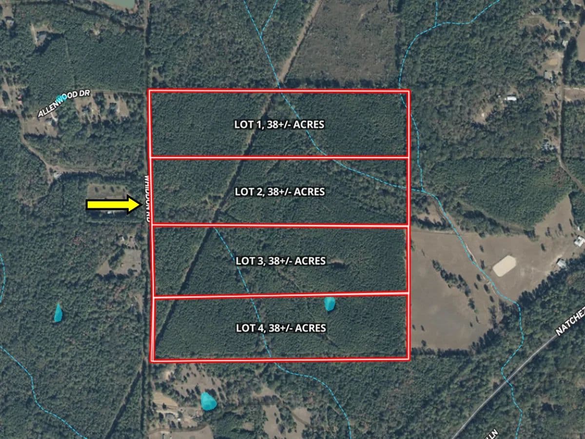 This offering includes four separate 38± acre tracts in Madison County, each providing a strong combination of timber value, recreational opportunity, and long-term development potential. Each tract features approximately 660± feet of frontage on Whiddon Rd along with access to an established internal road system for convenient entry throughout the acreage. Mature pine timber and two hardwood creek bottoms create both investment appeal and excellent wildlife habitat. The land includes established food plots and supports quality deer and turkey hunting. Located near the Natchez Trace and the Ross Barnett Reservoir, the area provides convenient access to recreation and amenities. With manageable tract sizes, generous road frontage, and flexible layout options, these parcels are well suited for residential or recreational use in a rapidly growing market. This is a rare chance to secure versatile, multi-use acreage in Madison County, MS.
