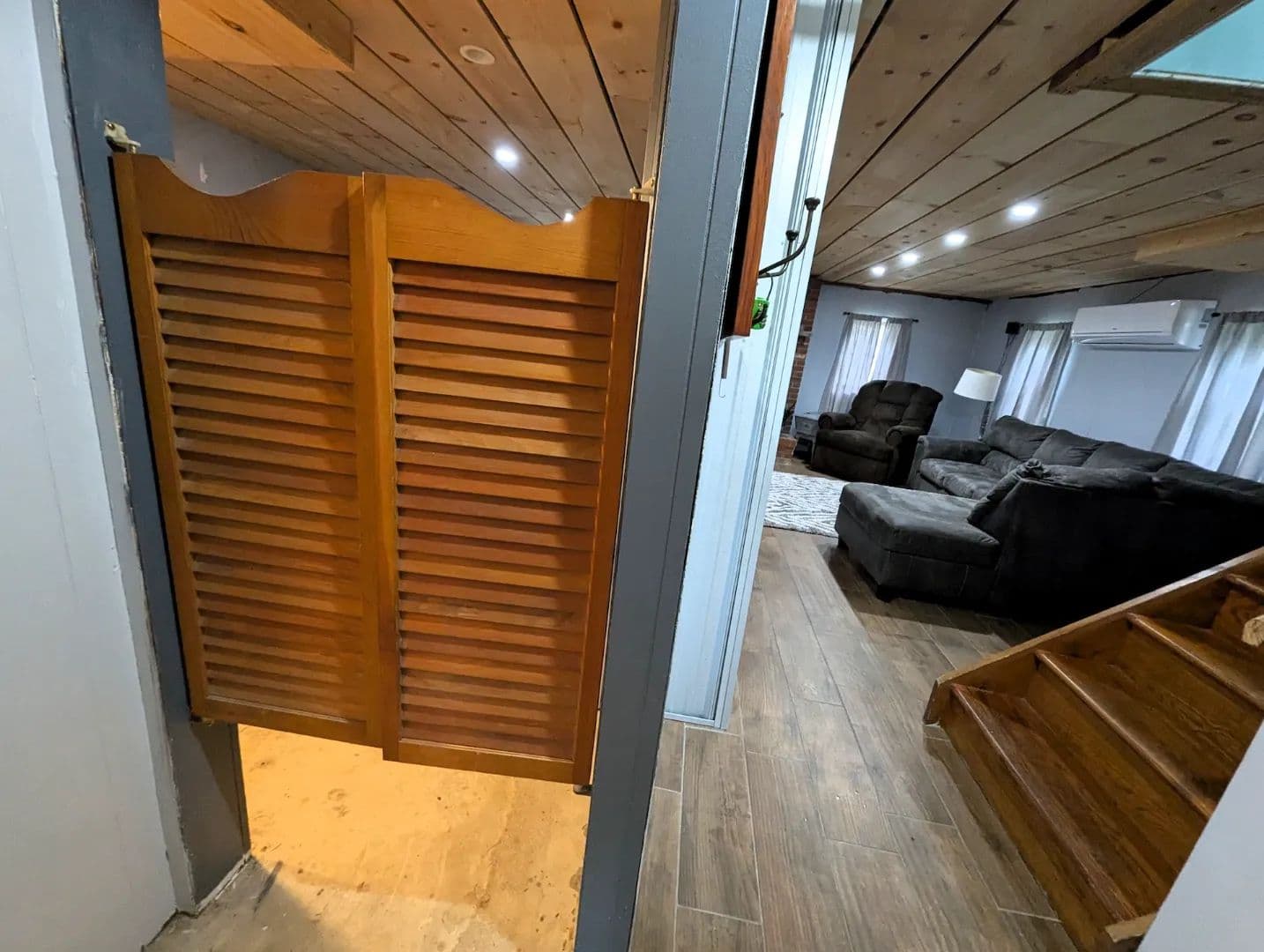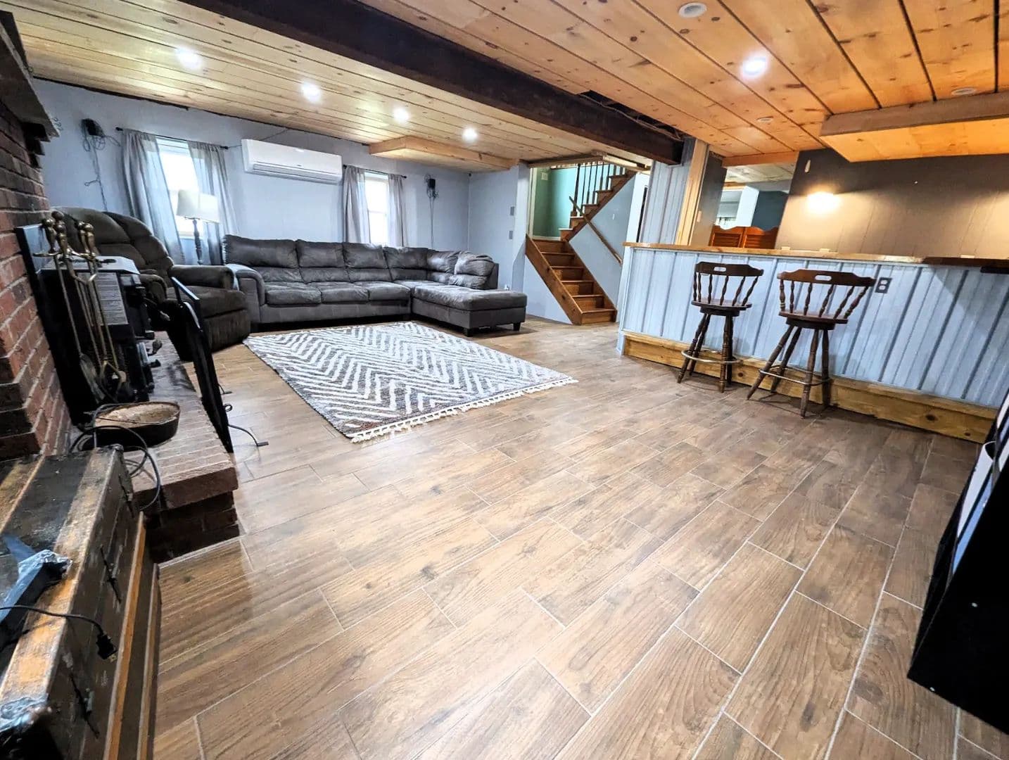 The finished lower level adds valuable living space featuring a large family room with a beautiful brick fireplace, tile flooring, and a wet bar, perfect for entertaining. This level also includes a convenient fourth bedroom, a full bathroom, and a separate laundry area. Beyond the laundry room, a bonus room with tongue-and-groove finishes, a wood stove hookup, and its own exterior entrance provides a flexible space for a rec room, hobby area, or additional gathering space and leads directly into the attached garage. Just off the home is a 45 x 28 pole barn with concrete floors and two overhead doors offering excellent storage and workshop potential.