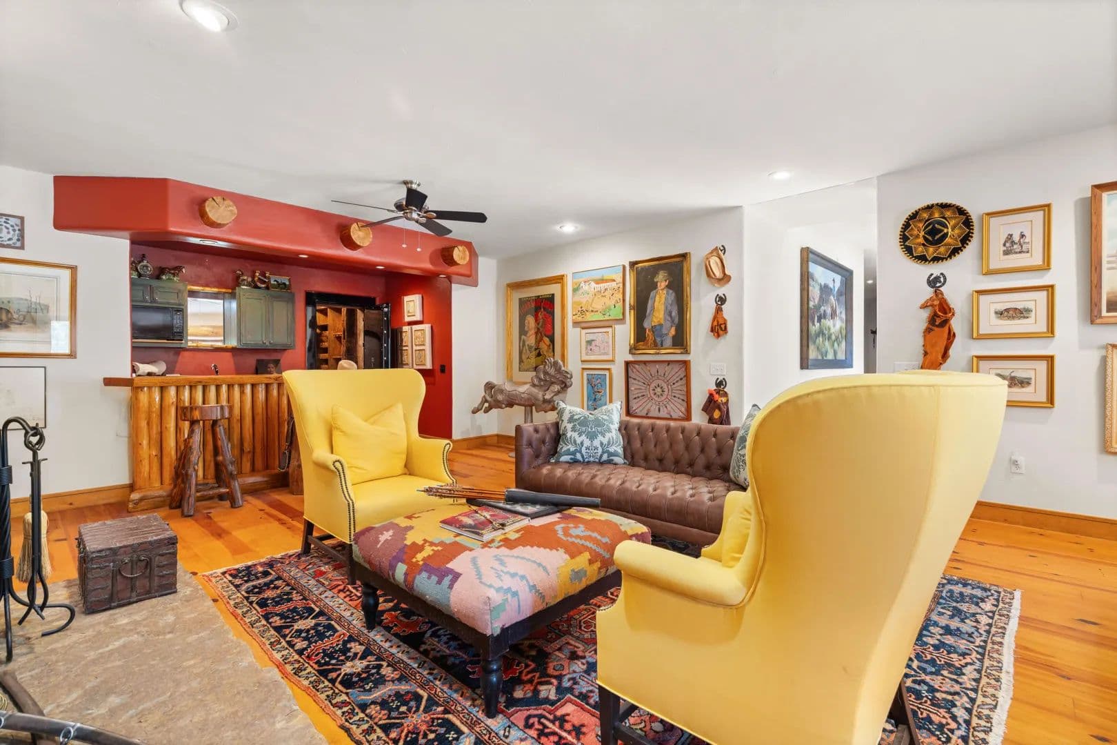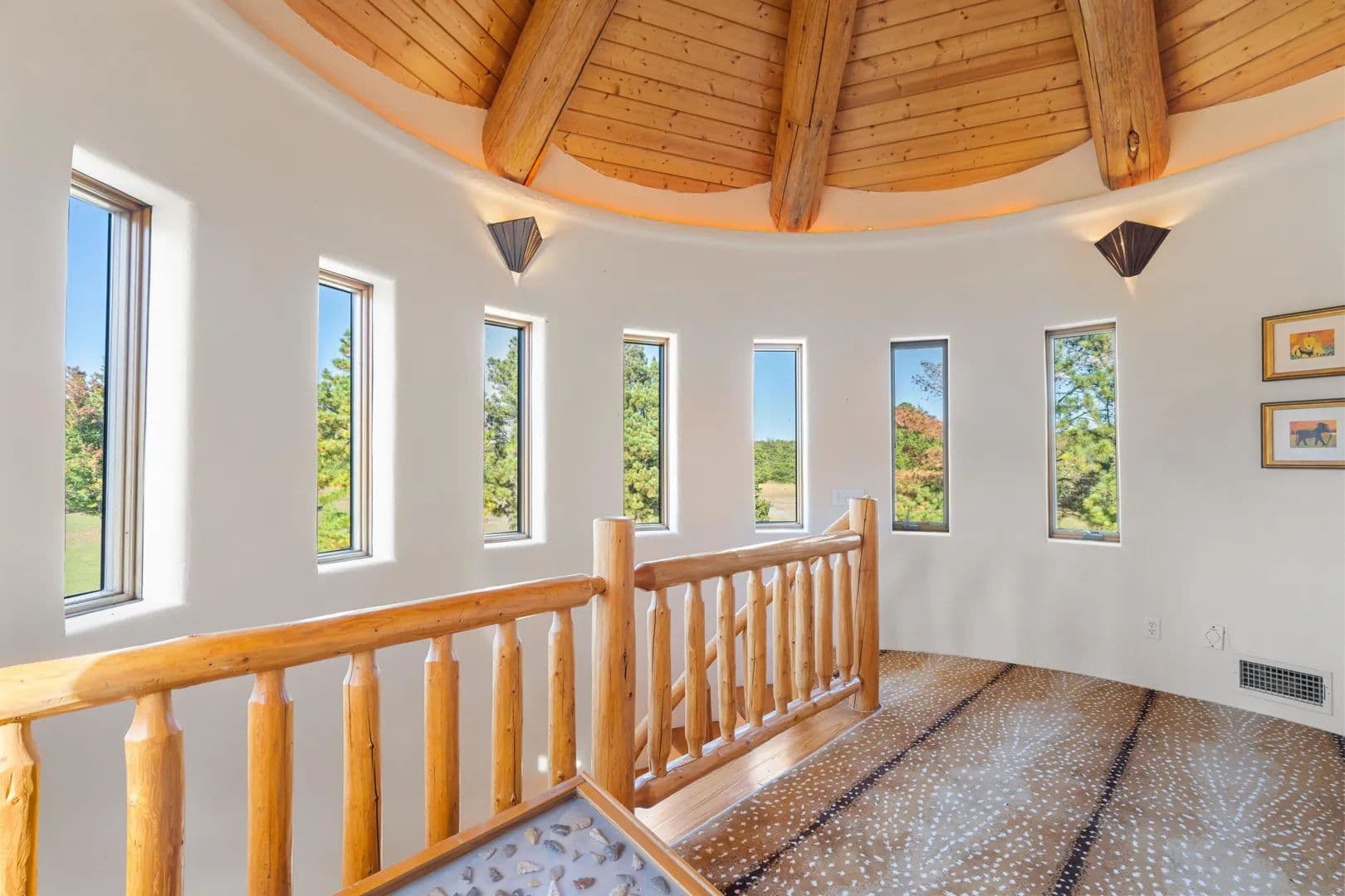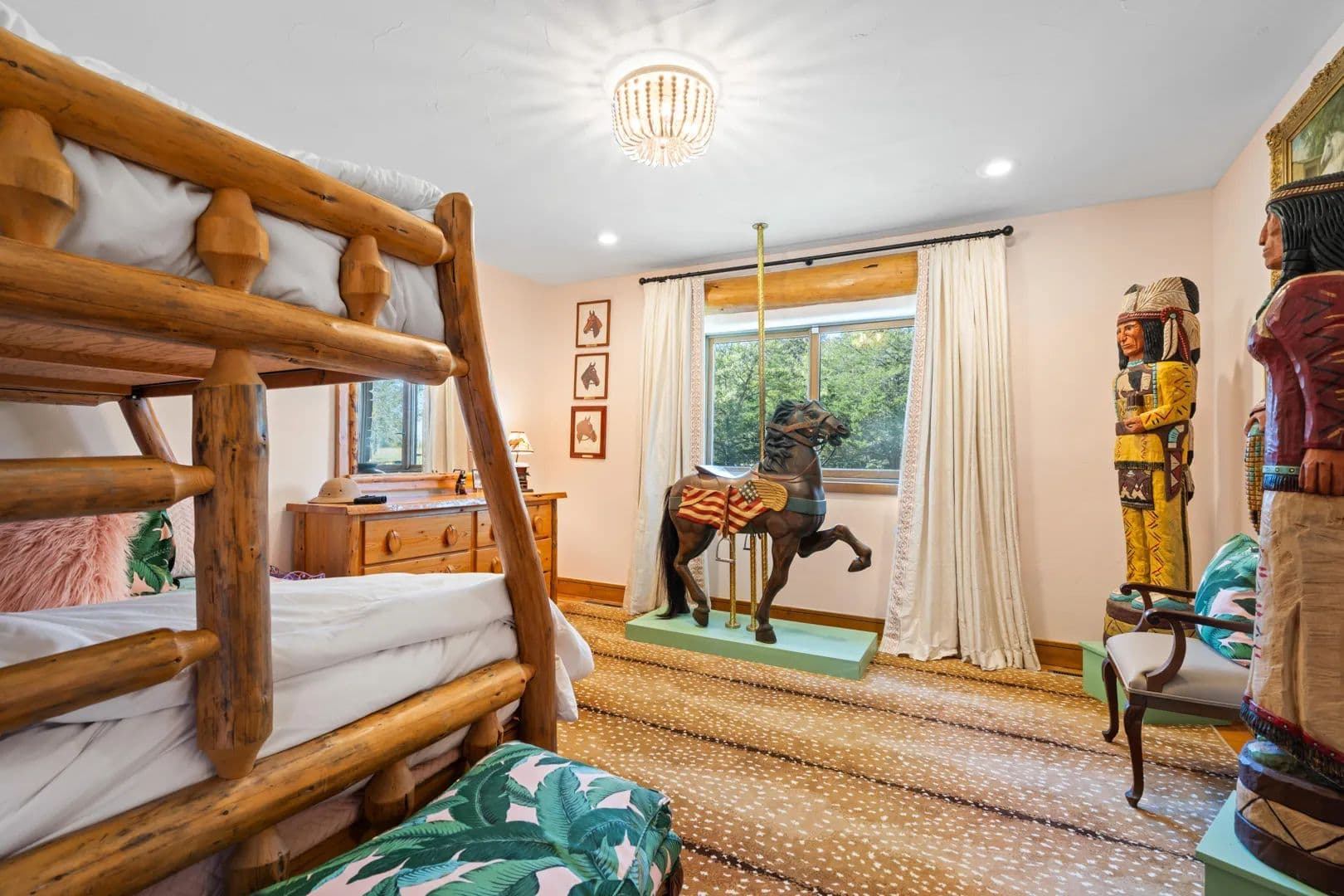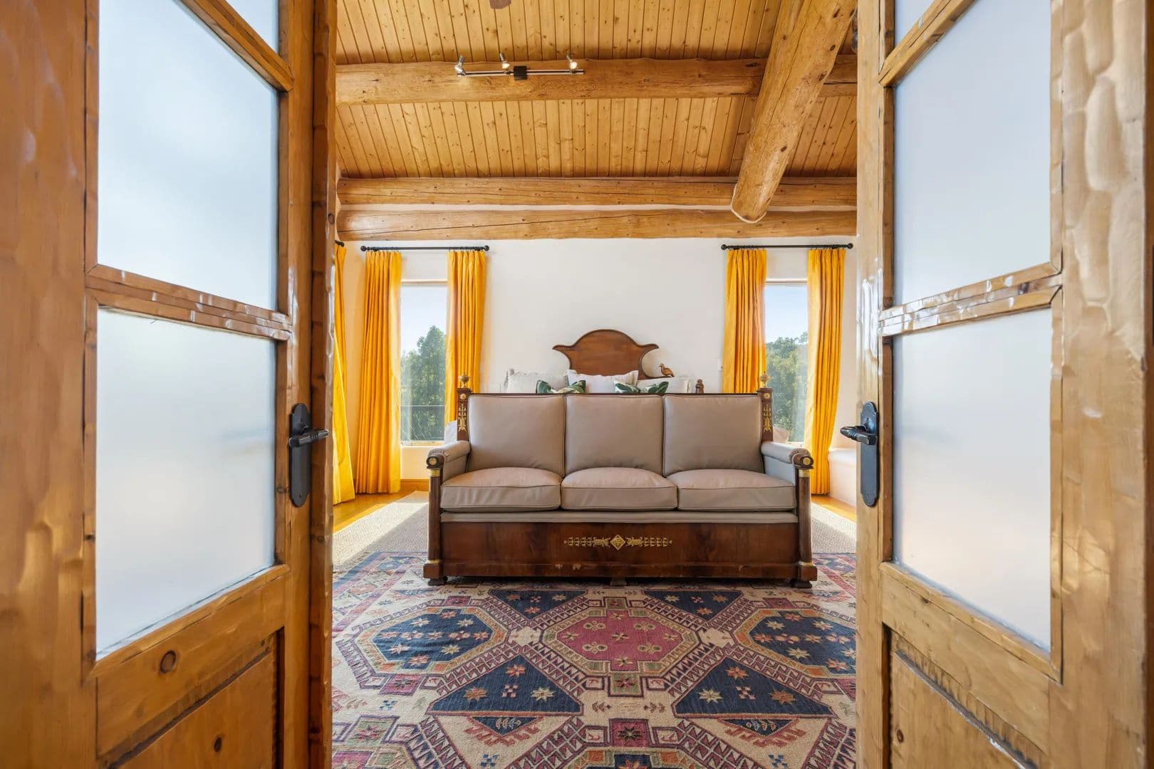 Crafted from massive hand-peeled logs, native stone, and sculpted plaster, the residence blends Western lodge architecture with Southwestern artistry: