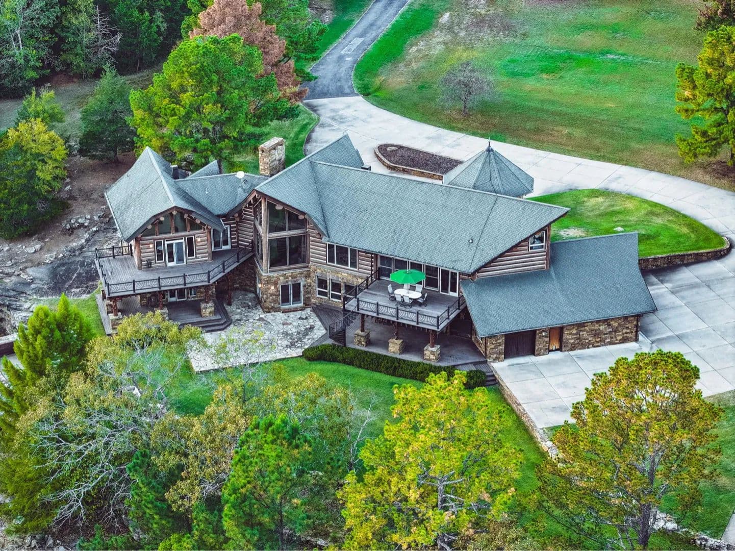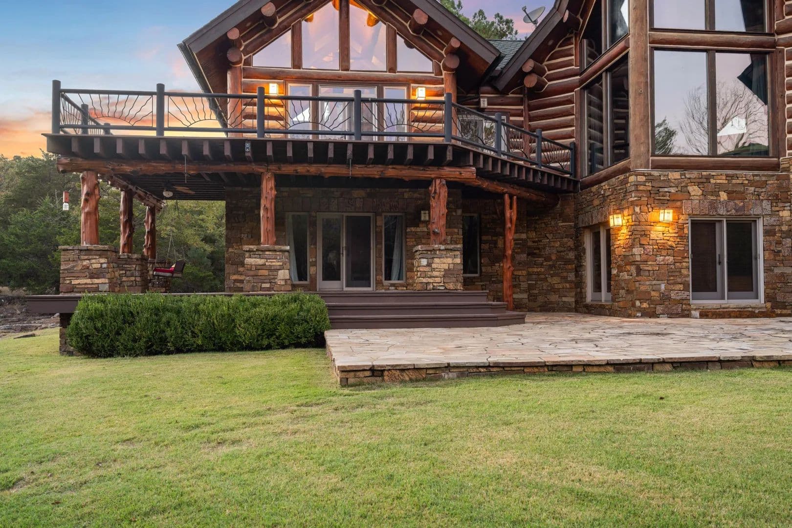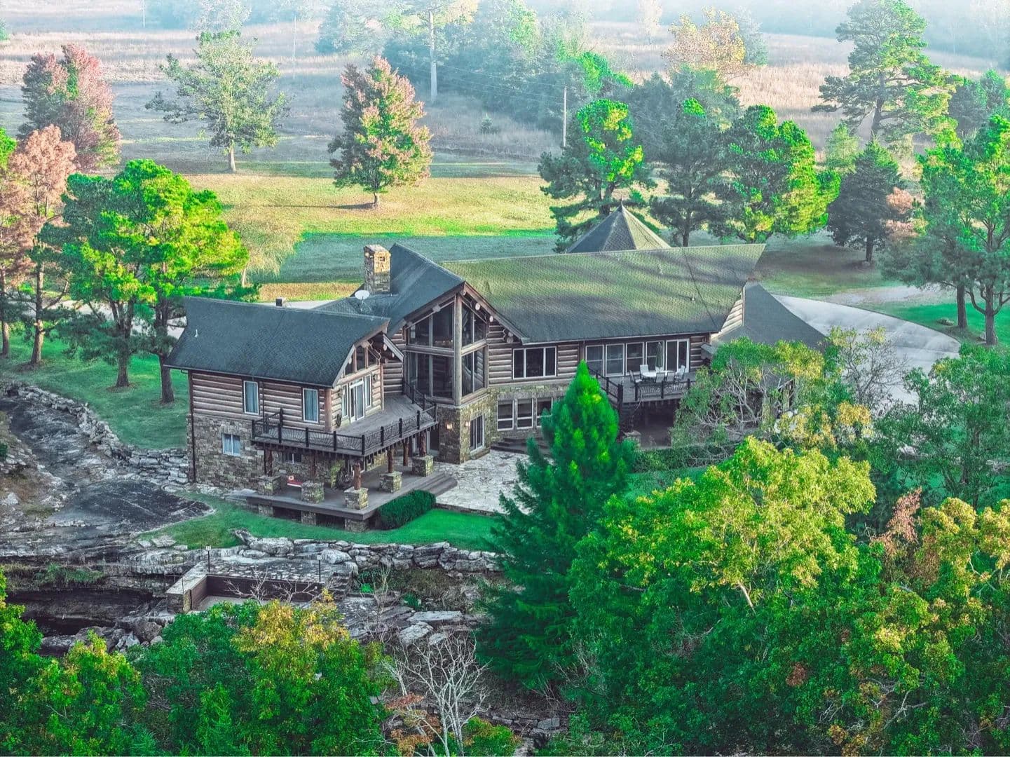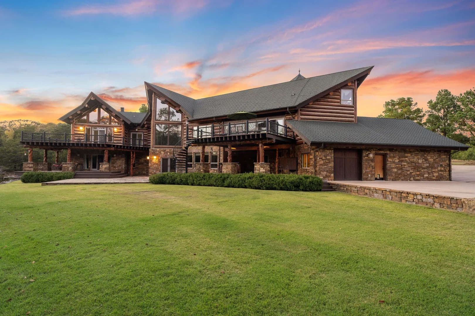 Welcome to The Illinois River Lodge — one of Oklahoma’s most compelling luxury properties. A handcrafted mountain-style log estate set on 74 private acres with 1,700± feet of premier Illinois River frontage, sculpted creeks, native grass pastures, and protected views that stretch across the hills.