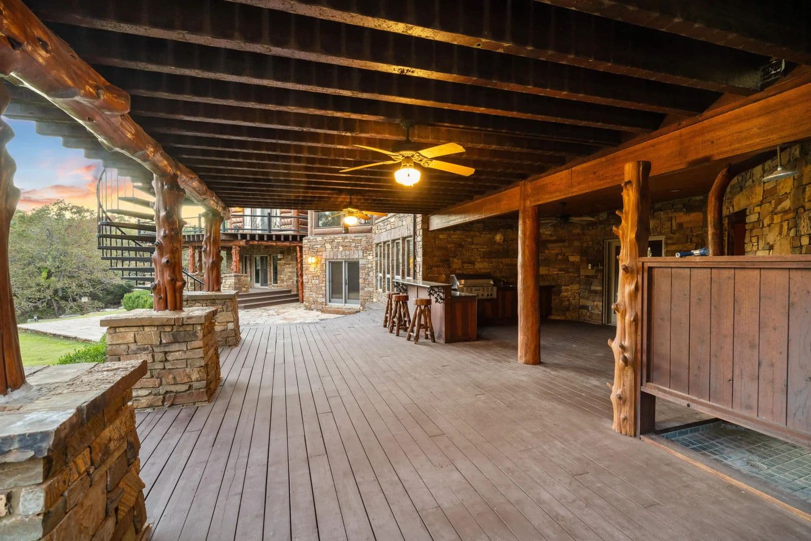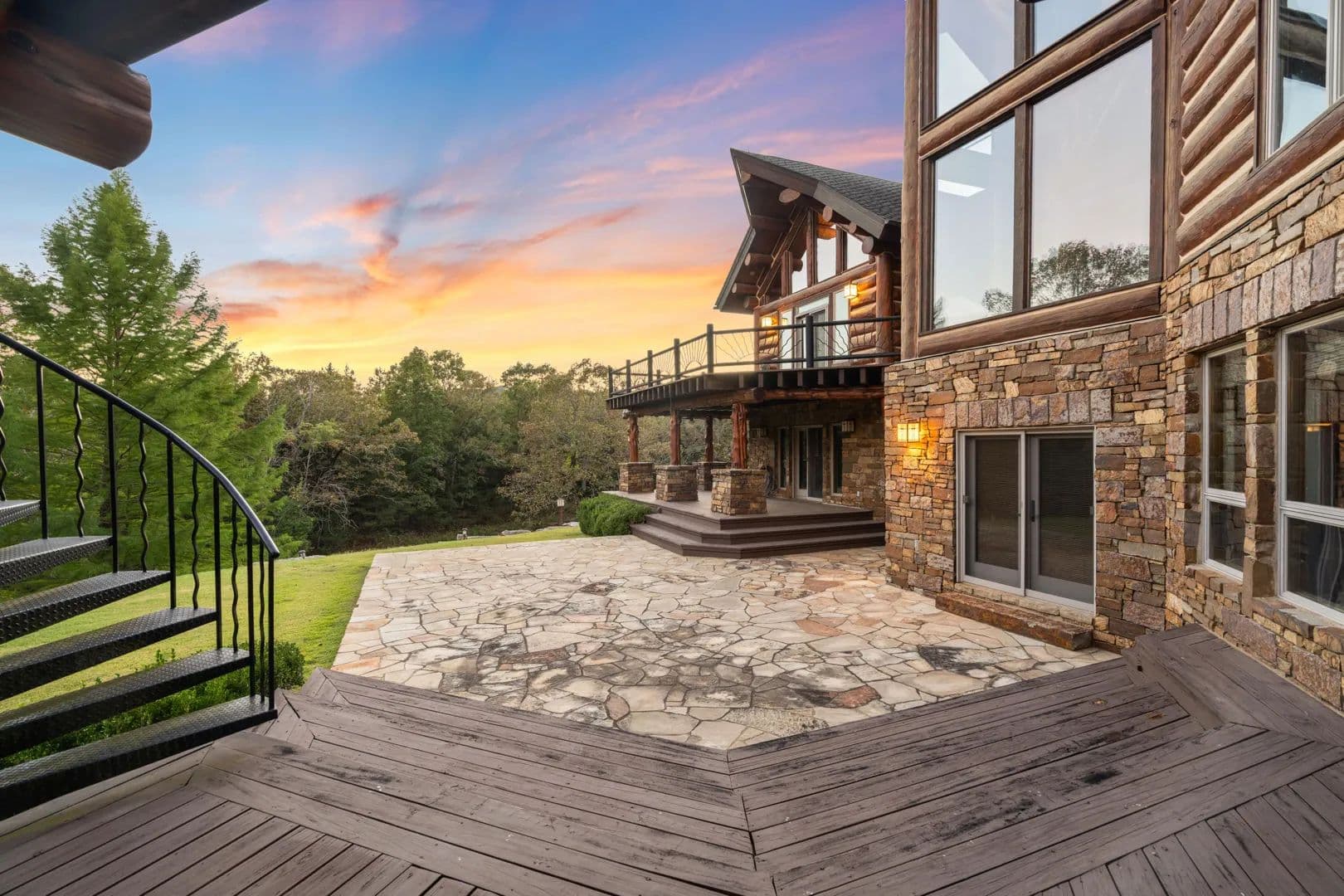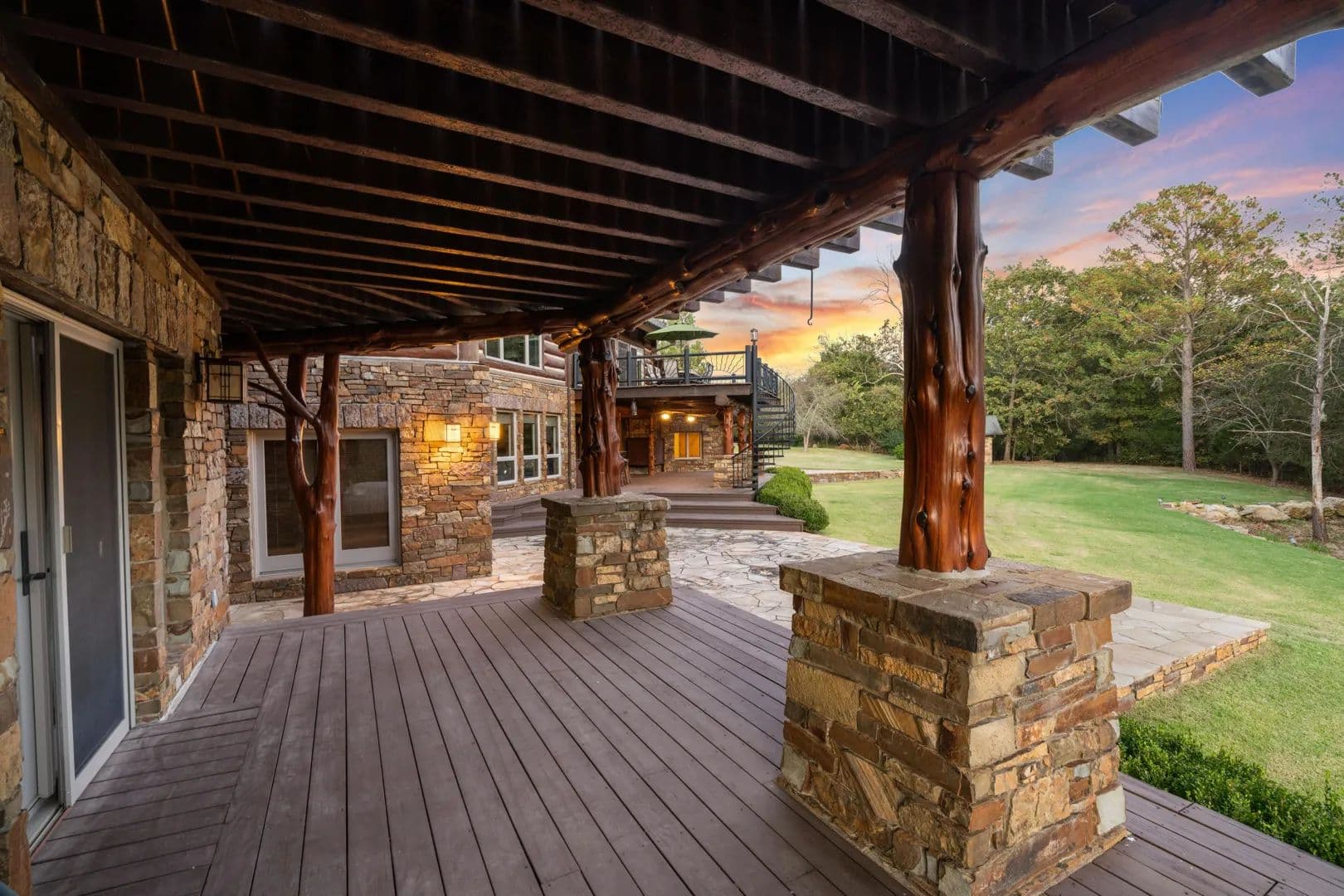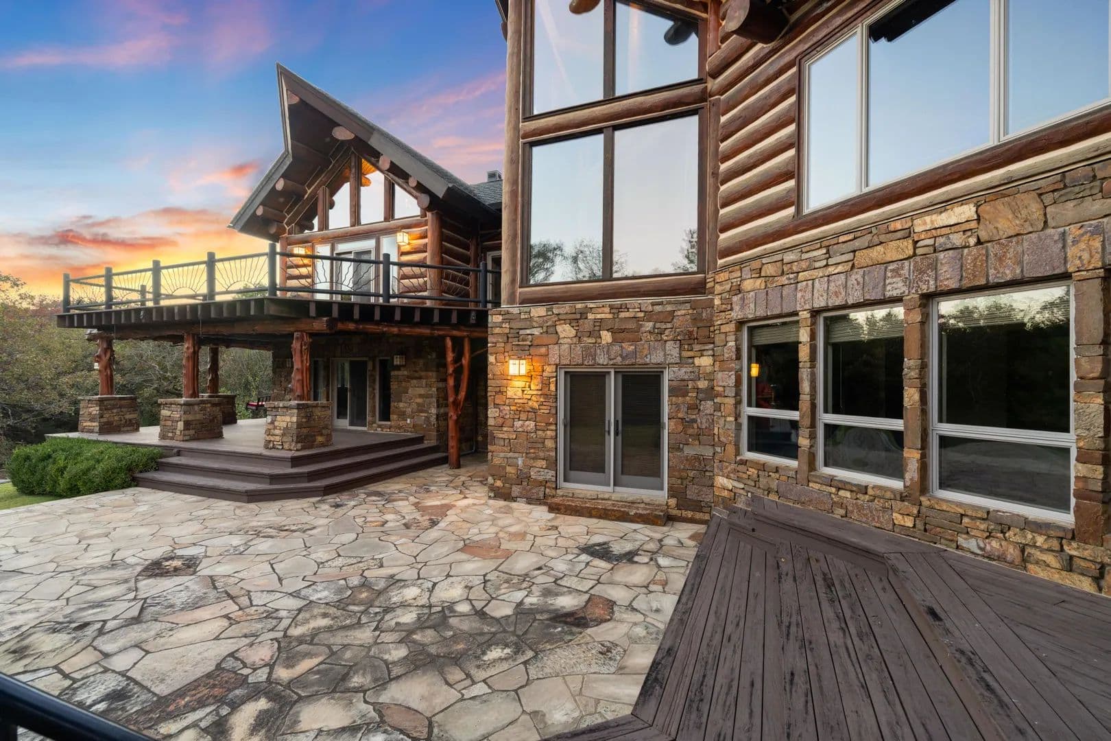 Welcome to The Illinois River Lodge — one of Oklahoma’s most compelling luxury properties. A handcrafted mountain-style log estate set on 74 private acres with 1,700± feet of premier Illinois River frontage, sculpted creeks, native grass pastures, and protected views that stretch across the hills.