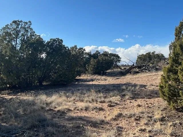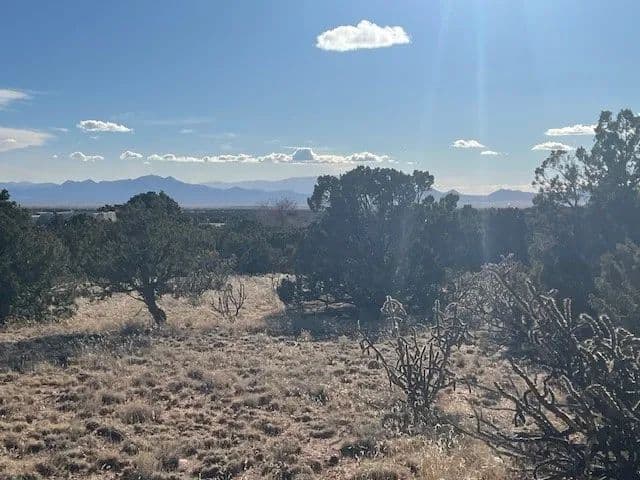 Gently sloping land with signifcant Pion tree cover interspersed with grassy meadows Beautiful views to the South and West with direct line to of sute to Sandia Crest and the Jemez Mts. Extraordinary sunsets year round. Easy access to the Rail Trail for biking and hiking. Neighbors are pleasing substantial homes, some with beautiful horse facilities.