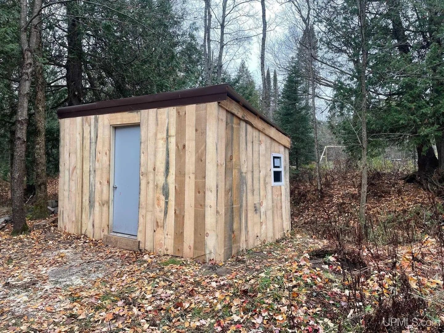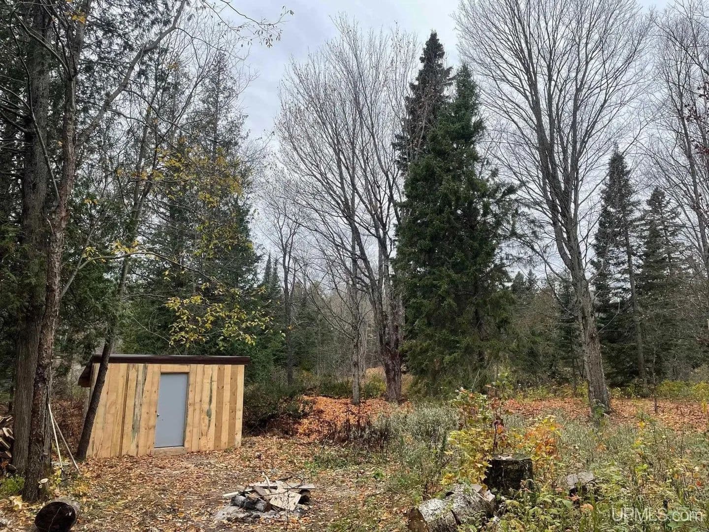 very nice .64 acre 150' square parcel on the chocolay river. this parcel has a small shek with new metal roof and rough pine siding, cement flooring, new 100 amp power box/service. point well no septic . THIS LOT is NOT BUILDABLE cant get septic approval due to elevation and proximety to the river. highest and best use would be for a snow bird to park your rv here all summer, plug into power, make a sauna out of the shed. etc.