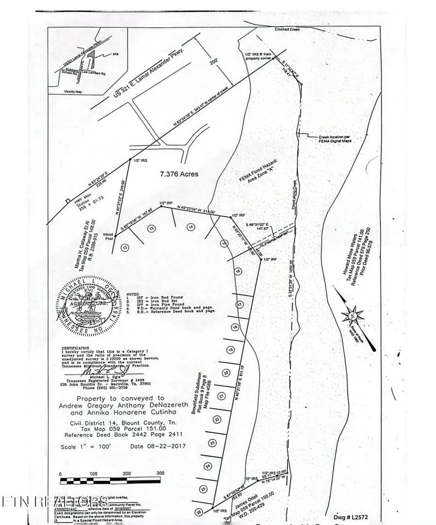 *Commercially zoned** Situated along E Lamar Alexander Pkwy/Hwy 321 with an impressive DOT Average Annual Daily Traffic count (AADT) of 14,000+ vehicles, this high visibility parcel is primed for development with 543ft of frontage. E Lamar Alexander/Hwy 321 isn't just any road; it's a gateway to adventure as one of the main scenic access routes to the Great Smoky Mountains National Park - the most visited National Park in America! Your future development stands at the crossroads of discovery and commerce. Centrally positioned just minutes to Downtown Maryville, with easy access to the Parkway, Wears Valley, and the iconic Cades Cove, this parcel of land offers convenience without compromise. The topography is primarily level along the front portion with moderate brush coverage. The stage is set - come check it out! The upper portion of the property with road frontage is usable, while the lower portion near the creek falls within a designated FEMA flood risk zone. Please refer to FEMA mapping and the uploaded survey for reference. Please note that all information is deemed reliable but not guaranteed. Buyers are advised to verify all essential details in real estate transactions. Approximate boundary lines on aerial photos are to give an idea for proximity only and are not a survey.