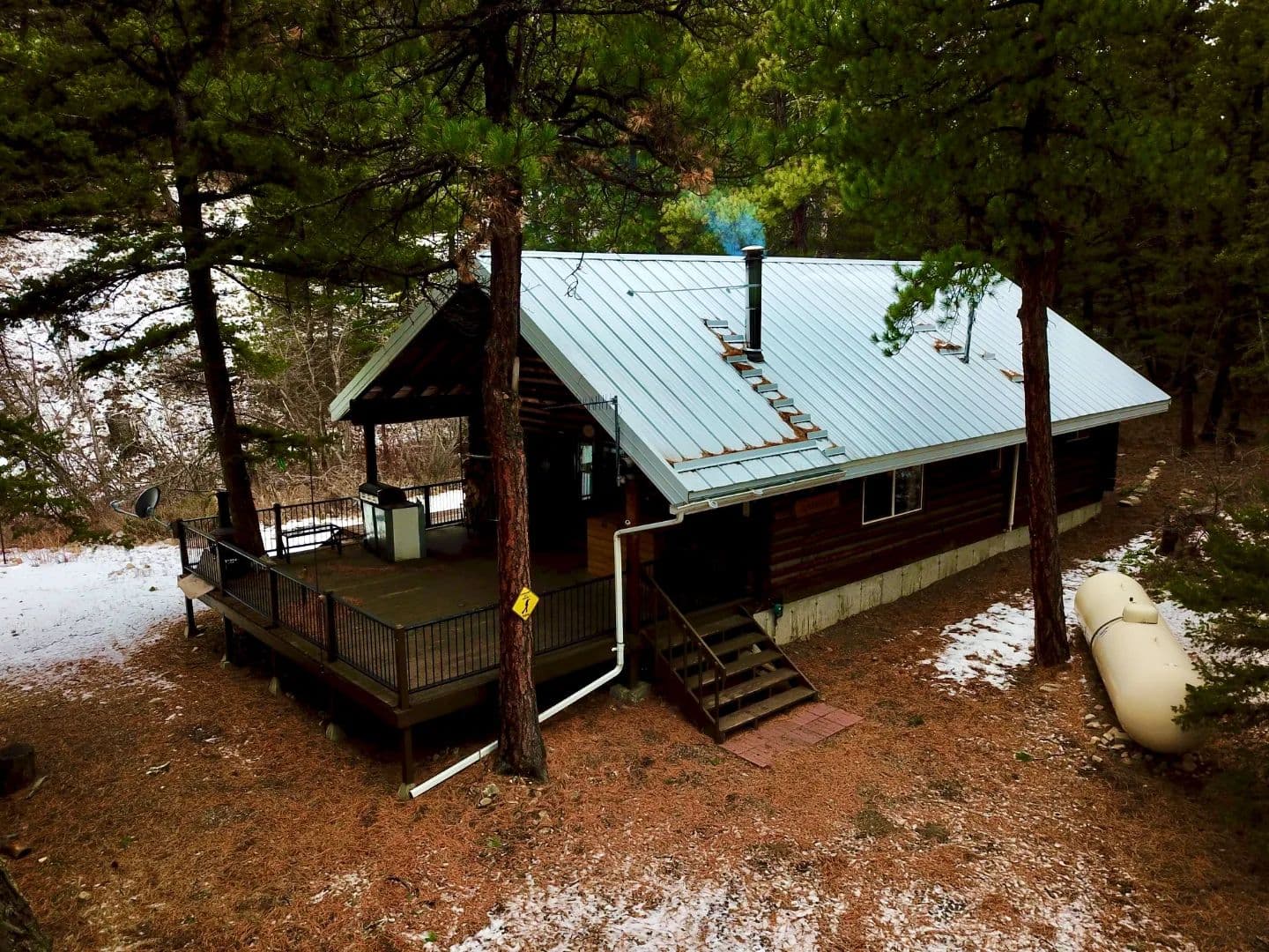 Tucked into the wild, pine-scented beauty of the Helena National Forest, this classic Montana log cabin radiates on 11.5 acres. As you pull in off the gravel road, the first thing you notice is the quiet, the sound of wind moving through the treetops, the soft rush of Little Wolf Creek, and the distant call of birds echoing through the canyon. The air carries that unmistakable mountain smell: sun-warmed timber, fresh water, and evergreen needles underfoot. Built for comfort after long days outdoors, the cabin offers 2 bedrooms, 1 bathroom, and a loft space, with the kind of warm, rustic character that only a real log home can deliver. Inside, you’ll find a cozy layout designed for making memories — from hunting weekends with friends to quiet winter nights when the woodstove is glowing and snow is falling outside. And best of all: much of the furniture and personal property is included, so you can start enjoying it immediately. Down by the water, a lounge swing near Little Wolf Creek becomes your front-row seat to everything the forest offers. In summer, you’ll hear the creek sliding over smooth stones. In fall, you’ll smell crisp leaves and woodsmoke in the air. In spring, you’ll watch the landscape come alive again — bright green, loud, and fresh.