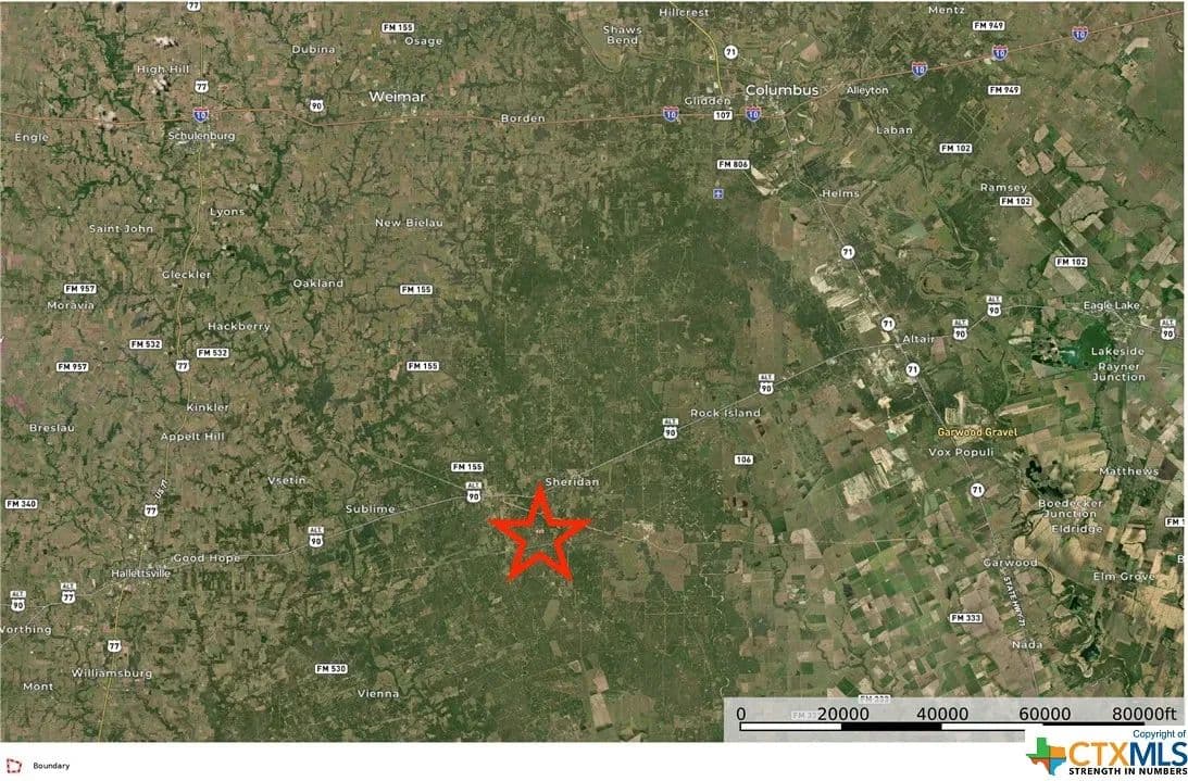 maintained road, 5 PRIME acres perfectly situated & nestled among Mature Oak trees & teeming WILDLIFE, just outside of Sheridan TEXAS on HWY 90. Electricity at the county road & surrounded by undeveloped OAK FOREST where the wild hog, turkey & deer roam. NO FLOOD zone, VERY light restrictions, PRESERVING your property value & encouraging NATURAL HABITAT to remain. PRIVATE, RURAL and NO immediate neighbors! Build your country getaway cabin, weekend headquarters, leisure ranch, custom DREAM home, start a small farm, raise animals, possibilities are endless! The property is covered in mature trees & native grasses, with easy access via County-maintained road, less than 5 minutes to major highway, 90 minutes from HOUSTON. TONS of WILDLIFE! Come Experience the Countryside enveloped in serenity & beckoning you to a slower pace of life....