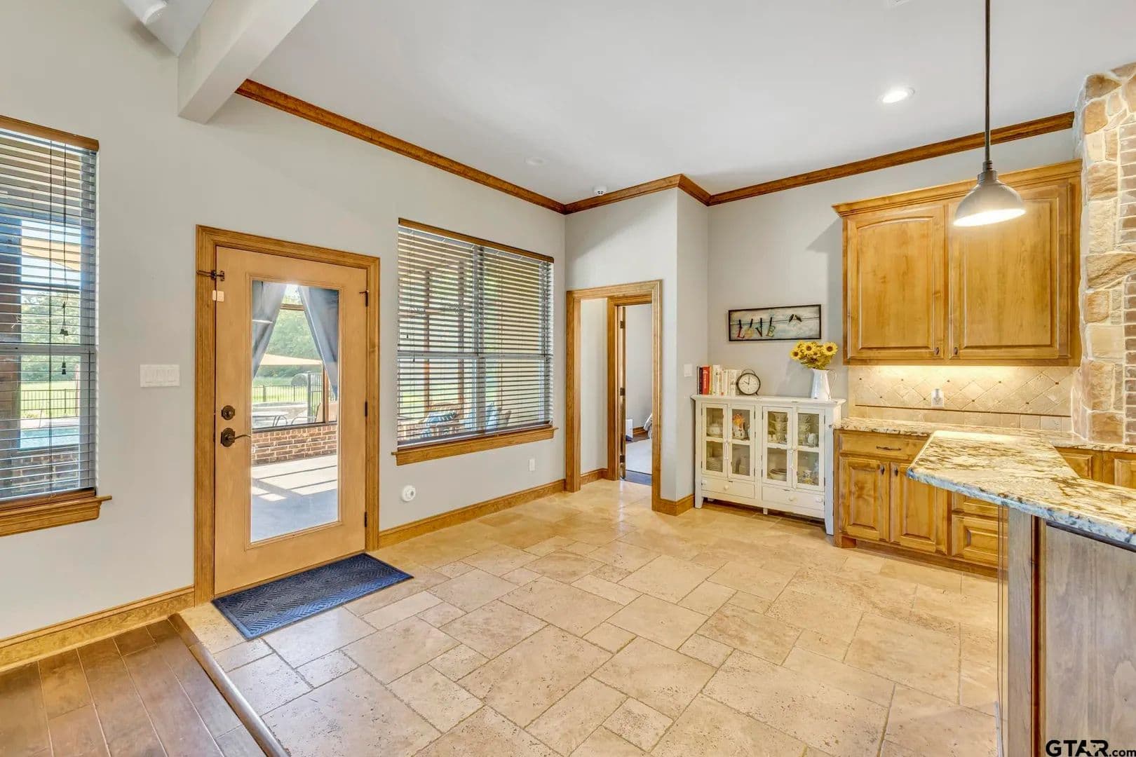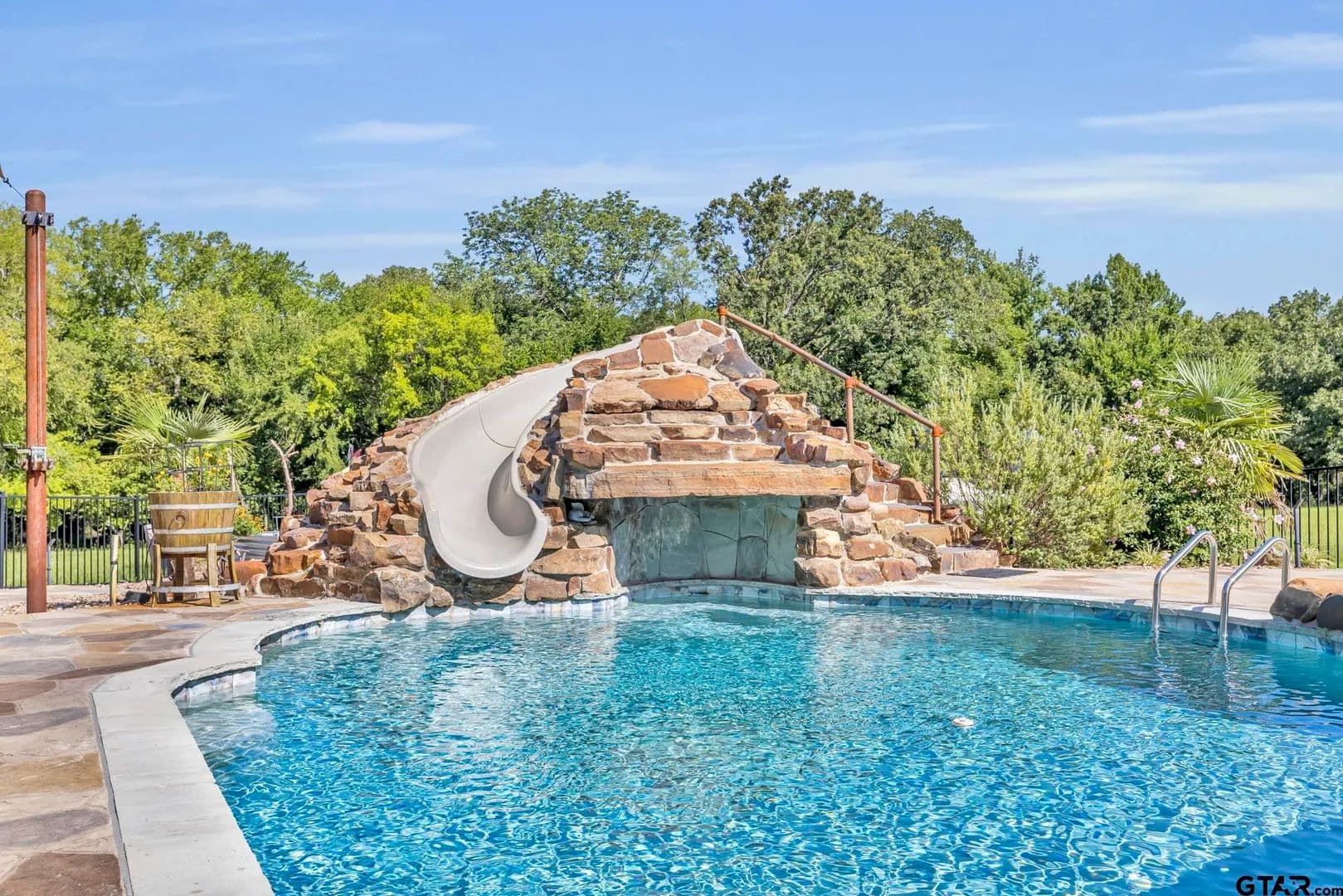 Discover luxury ranch living with unmatched functionality on nearly 29 ag-exempt acres in sought-after Alba-Golden ISD, just minutes from world-class fishing at Lake Fork. Custom built by renowned East Texas builder Lee Knight, this 5-bedroom, 3.5-bath estate spans 3,788 square feet and blends craftsmanship with thoughtful design. Interior features include vaulted ceilings, premium finishes, smart home integrations, a built-in Sonos surround sound system, and an HVAC system enhanced with an ionizer for clean, allergen-reduced air. Step outside to a resort-style setting featuring a heated gunite pool with hot tub, dual stone fireplaces (indoor and outdoor), a screened porch, and a fully equipped outdoor kitchen perfect for year-round entertaining. A garden filled with farm-to-table staples lines the back of the pool area, and a mosquito misting system provides added comfort. The home sits on 28.89 acres of improved hay-producing pasture with a 2-acre Lake Fork leaseback, ideal for both recreation and agricultural use. A standout feature is the fully operational, heated and cooled 4,000+ sq ft commercial aerospace machine shop, offering flexibility for business, creative pursuits, or high-end storage. Additional improvements include three full RV hookups (each with individual power poles), a private storm shelter, stocked pond, cross-fencing, multiple storage buildings, and a large workshop. Designed for efficiency and reliability, the property is equipped with three owned 500-gallon propane tanks, a whole-home generator, aerobic septic system, and a private WiFi tower with Cat 7 wiring for high-speed internet and digital phones. Wrought iron fencing, landscape and security lighting, and surveillance-ready infrastructure ensure both beauty and peace of mind. Whether you’re seeking a luxury homestead, a self-sufficient live/work retreat, or an income-producing ranch, this East Texas masterpiece offers it all.