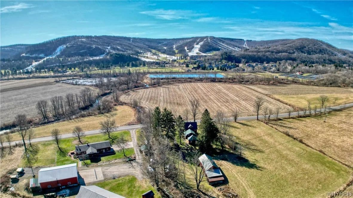 NEW PRICE! HISTORIC SKI. LODGE! AN UNMATCHED OPPORTUNITY AWAITS WITH THIS STUNNING 7-BEDROOM, 6-BATH FARMHOUSE, SET ON 130 ACRES OF PRIME, MIXED-USE LAND—COMBINING BOTH OPEN FIELDS AND WOODED BEAUTY. THIS PROPERTY HAS REMAINED UNTAPPED, HAVING NOT BEEN TIMBERED IN OVER 20 YEARS, PROVIDING A RARE BLANK CANVAS FOR DEVELOPMENT OR AGRICULTURAL USE. ENJOY PICTURE-PERFECT VIEWS OF HOLIDAY VALLEY GOLF AND SKI RESORT, ALONGSIDE HOLIMONT SKI RESORT, MAKING IT IDEAL FOR RESIDENTIAL OR RECREATIONAL USE. WITH ENORMOUS POTENTIAL TO CREATE A MINI-SUBDIVISION OR MAINTAIN THE ENTIRE PARCEL FOR YOUR PRIVATE OASIS, THIS PROPERTY OFFERS ENDLESS POSSIBILITIES. ADDITIONAL STRUCTURES INCLUDE A LARGE BARN AND MULTIPLE OUTBUILDINGS, PERFECT FOR CONVERTING INTO A BED AND BARN BUSINESS OR UTILIZING FOR FARMING, STORAGE, OR HOBBYIST NEEDS. SITUATED JUST 1 MILE FROM THE HEART OF DOWNTOWN ELLICOTTVILLE, YOU'LL ENJOY THE CONVENIENCE OF SHOPPING, DINING, AND ENTERTAINMENT, ALL WHILE EMBRACING THE TRANQUILITY OF COUNTRY LIVING. DON'T MISS OUT ON THIS ONCE-IN-A-LIFETIME PROPERTY! ALSO LISTED AS B1520806