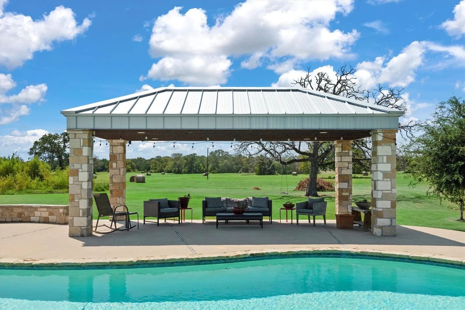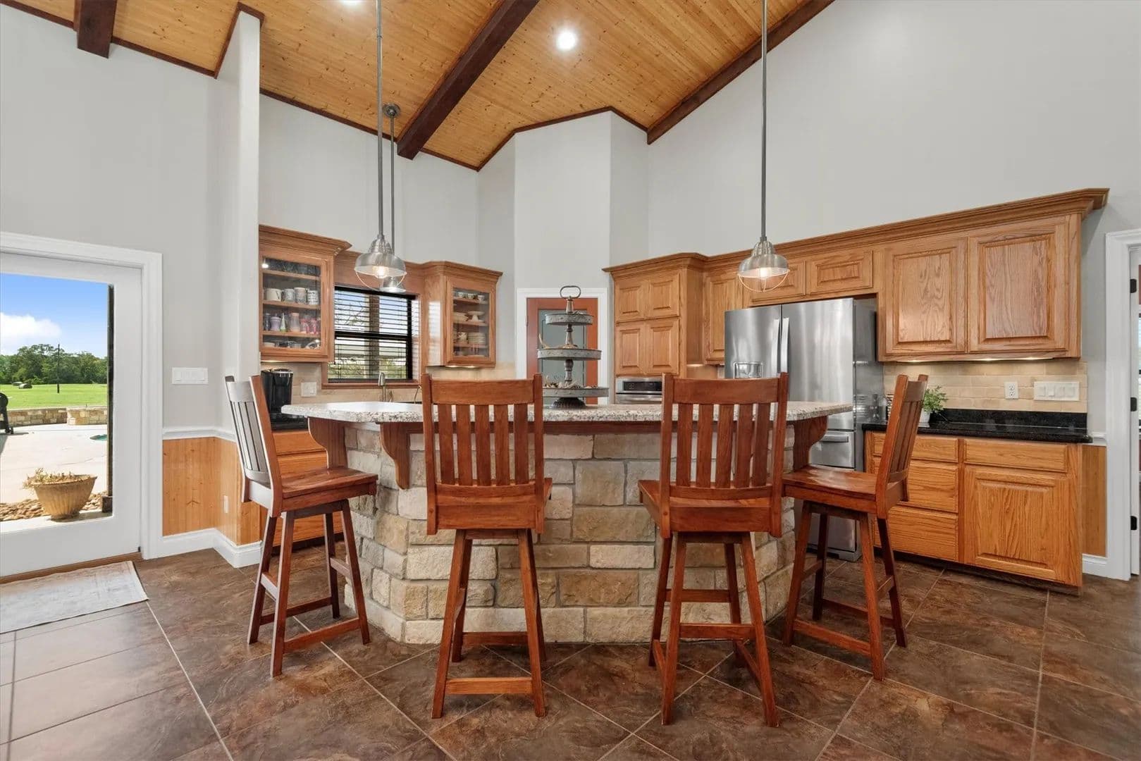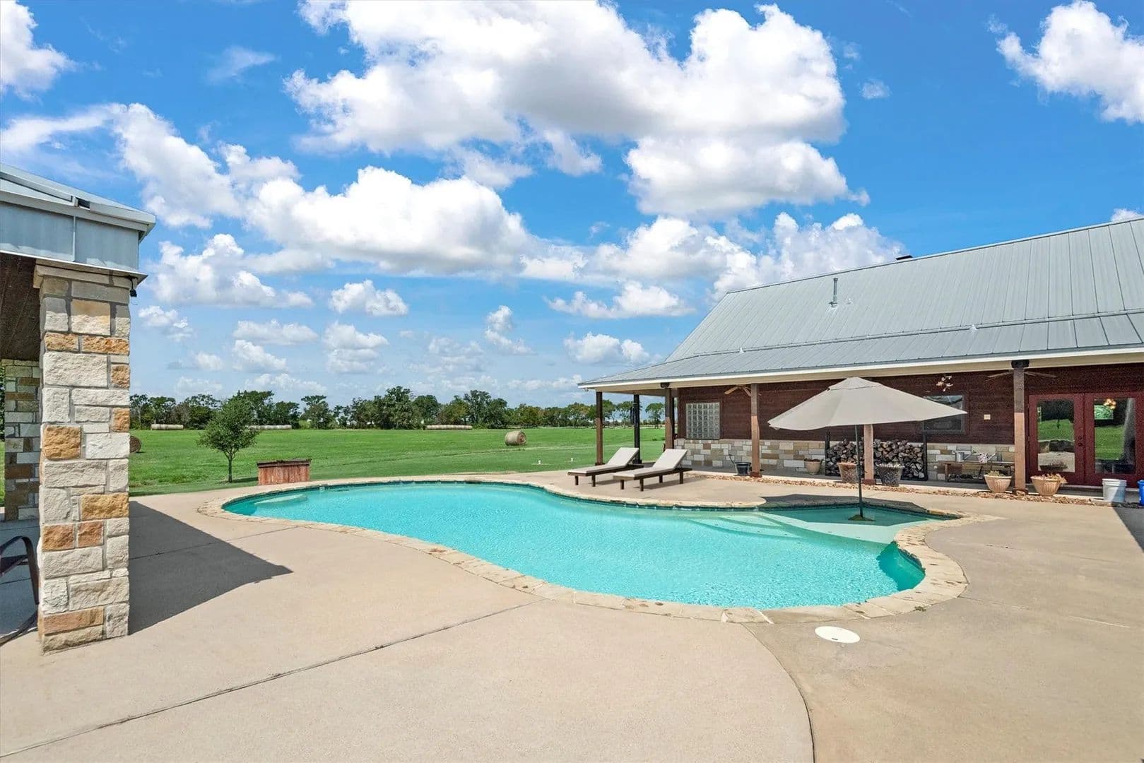 Exceptional 53-acre ranch, harmoniously blending country living & modern conveniences. This expansive property features 2 residences. The main residence boasts wrap-around porches, perfect for soaking in the peaceful surroundings. Inside, discover an open-concept, split floor plan with 3 bedrooms & 2 bathrooms. The second residence offers an excellent option for guests, extended family, or potential rental income. The ranch is equipped with numerous outdoor amenities, a pool, cabana, fire pit, & dog kennels with run. For sustainable living, the chicken coop & raised bed garden present a wonderful opportunity for farm-to-table living. Additionally, there's a metal building with electricity suitable for a workspace or storage, an RV hookup, water well, & concrete driveway for easy access. The land features a hay pasture & 3 ponds with stunning views & potential for agricultural & recreational use. This property is the ultimate retreat for those seeking an authentic slice of ranch life.