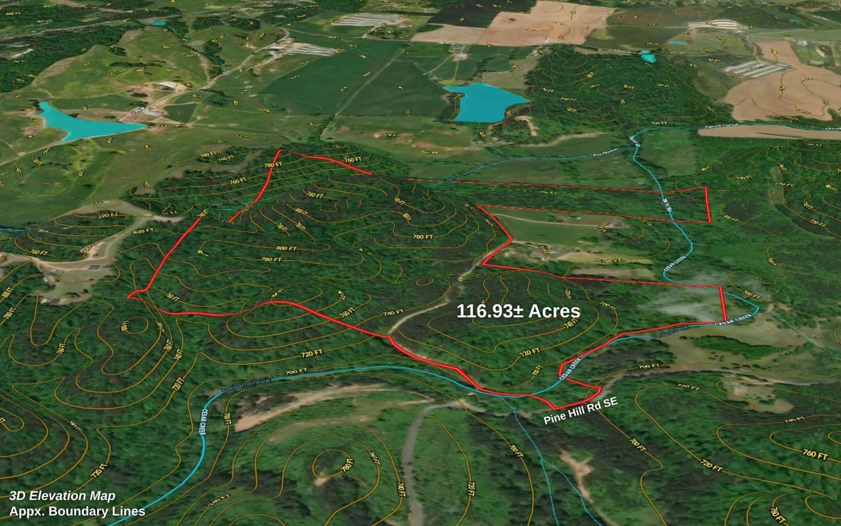 116.93 +/- ACRES of beautiful, wooded land in middle Georgia! Rare opportunity to own a large tract in a charming location, conveniently situated between Atlanta and Chattanooga. Surrounded by attractive farmsteads and countryside cabins, this property features approximately 275 feet of ROAD FRONTAGE on Pine Hill Rd SE. Adorned with mature woodlands, level to rolling topography, and frontage along Cedar CREEK and Big Branch Creek. This 11 parcel property has ELECTRICITY available and A-1 Agricultural ZONING. Enjoy HOBBIES like hunting (deer, turkey, small game), fishing, or relaxing to the peaceful ambiance of creekside living. Convenient to local schools, churches, and dining. Whether you're looking to build your dream homestead, private estate, stunning subdivision, or simply enjoy nature, this property offers beautiful potential. LOCATION: 12 minutes from Hwy 411, 13 minutes from I-75, and within easy reach of Adairsville, Calhoun, Cartersville, Dalton, and Rome. Nearby attractions include The Rock Gardens, Fields Ferry Golf Club, and Cooper Creek Farm—all while being 1 hour from both Chattanooga and Atlanta. Rural charm, privacy, and convenience await... Schedule a private showing today! (Any and all property lines on photos are simulated and are approximate. Buyer is responsible to do their due diligence to verify that all information is correct, accurate and for obtaining any and all restrictions for the property deemed important to Buyer.)