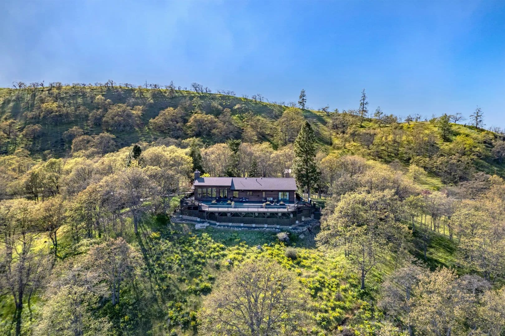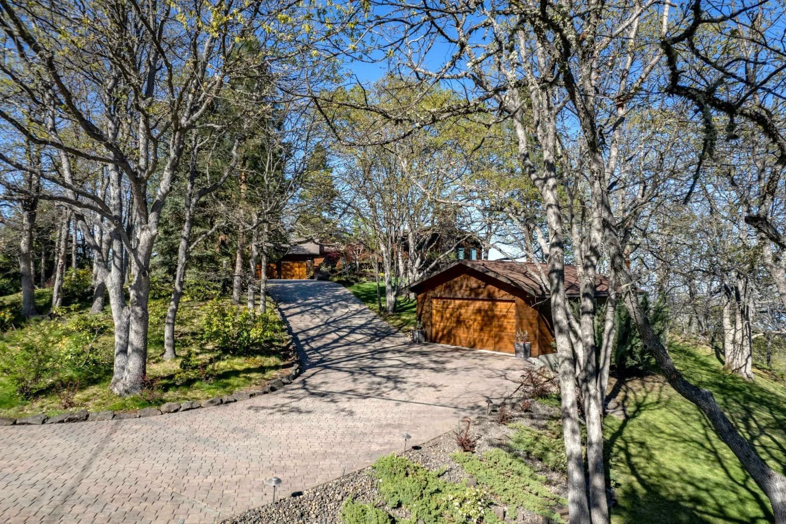 Located within the Columbia Gorge Scenic Area, this stunning property in The Dalles spans 9.13 acres with a panoramic view of the Columbia River Gorge, Washington hills and city lights of The Dalles. The 2,140 sq ft, single level home features 3 bedrooms, 2 bathrooms with hard surface countertops in the kitchen and ample cabinet storage. The dining and living room boast beautiful views of the river and Gorge and access an expansive deck. Meticulously maintained, this home showcases pride of ownership. This acreage property includes an attached 2-car garage with built-in cabinets for optimal storage as well as a detached 2-car garage along the paved, LED-lit driveway. Additionally, there is a private road that winds through a portion of the property with a large outbuilding. The septic tank was replaced in early 2024.