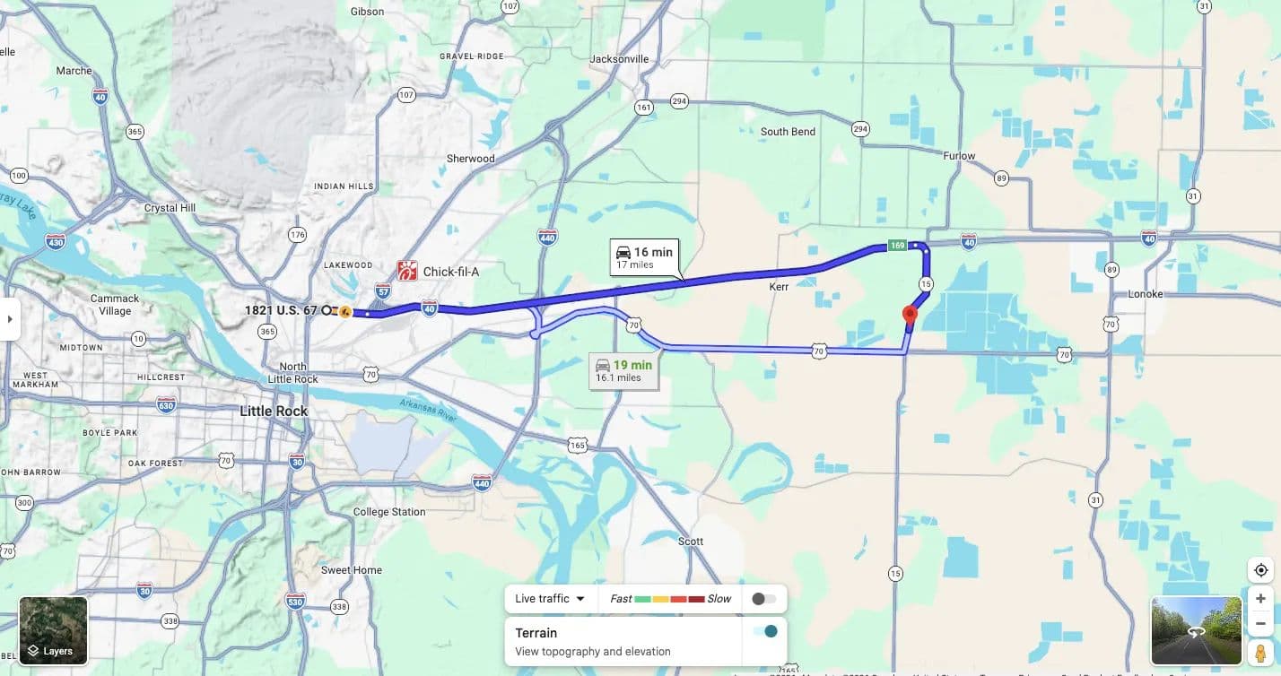 Located just two miles south of Interstate 40 and roughly eight miles west of Lonoke, this tract is still close but far enough away for peace and quiet.