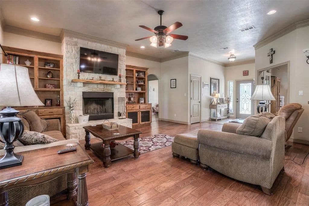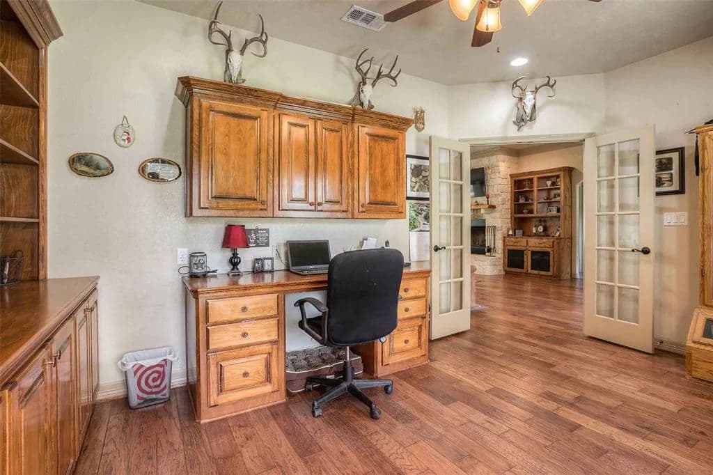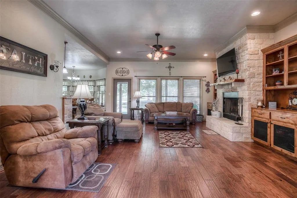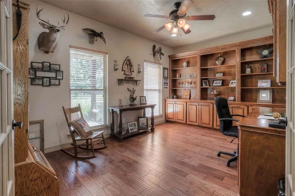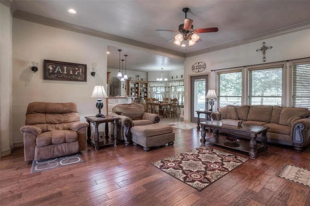 AMAZING custom built home on 10 acres conveniently located off Hwy 30 west of Huntsville. Spacious open concept floor plan with split bedroom arrangement, large study and game room upstairs. If you love the outdoors, this property is secluded and private and immaculately manicured with scattered trees with 36x27 workshop. The workshop is complete with kitchen, bathroom and living space making it an additional guest house. 2 covered areas for additional parking or equipment, plus a storage building. Kitchen has gorgeous custom alder wood cabinets - with pull-out drawers and stainless steel appliances. A wall of windows overlook the covered back patio and is an amazing place to enjoy the nature that surrounds this property. Additional custom features include beautiful wood floors, crown molding, many custom built cabinets, stone fireplace, neutral paint colors and much more. The property is fenced on 3 sides.