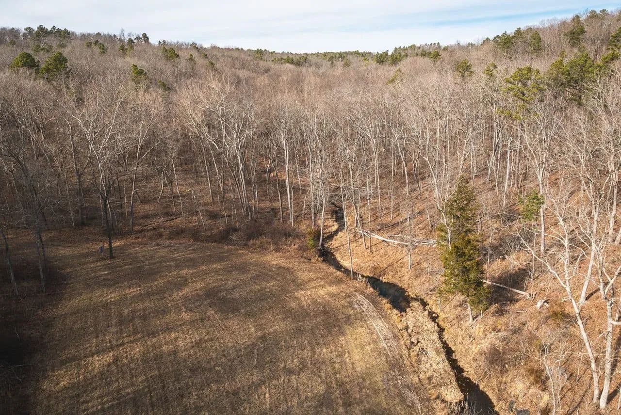 Peterball & Ferrill spring surround this 32 acres of Ozark foothills paradise. This property is surrounded by mark twain national forest on all four sides making it a needle in a hay stack. Peterball spring rolls right into the southwest corner of the property and the seller has spent extensive time and money making a trail and nice damn across the creek. It is absolutely gorgeous in the spring and summer when it is pouring over the damn. There is a 40x40 pole barn with a concrete floor and a camper included as well as 12 roll up doors and one storage area in the barn. There is a fire pit right out front for a great place for cooking smores or warming up after a hunt. If you are looking to be secluded and off grid with no neighbors in site this is the place for you. There are two nice deer blinds with tinted windows that are fully enclosed and are great for turkey and deer hunting. The area is also known for the occasional black bear and even mountain lions. There are a few nice food plots and fields where you can sit and watch deer and turkey and hear the spring roll by in the background. Plenty of ridges and hilltops that other wooded stands could be added to hunt. A mature stand of timber lives here So many county roads for trail riding and forest service roads. Property is about 10 miles from Salem that has Walmart and other big name stores for camp needs The barn has solar for its electric. The bottom fields have been planted in wild flowers before and it makes an amazing site in the spring an d the summer with the spring running nearby. The current river and Montauk Park are nearby as well as other floating and fishing opportunities. Come take a look at this Ozark Gem.