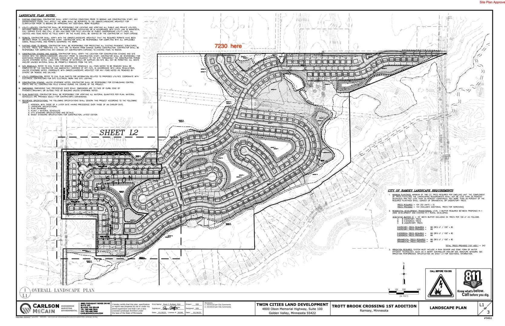 The land bordering the south end of the property is being developed. The Trott Brook 3rd addition has final approval and has broken ground. (see supplements for plat map) Public utilities are set to begin install this spring/summer. Future use of this land will be overseen by the City of Ramsey. Please direct all specific questions to the Community Development Department. Any subdivision of this land will require re-zoning. It is zoned as low density residential.