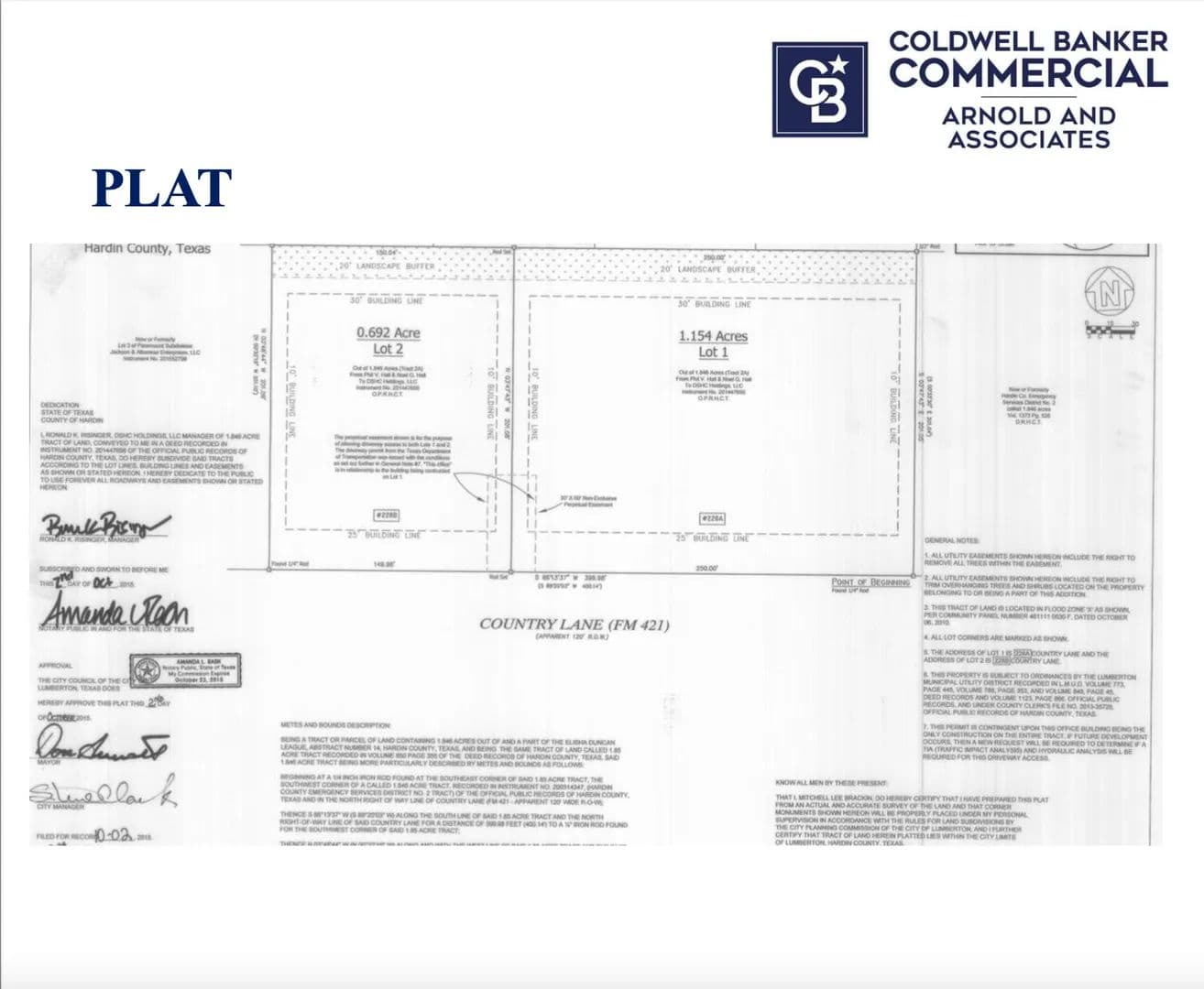 Located between the highly traveled Hwy 69 and Hwy 96 Highway access already developed (shared with Orthodontic Office) Electricity, Water and Sewer serving adjacent property Zoning – C1 – To be confirmed by City of Lumberton