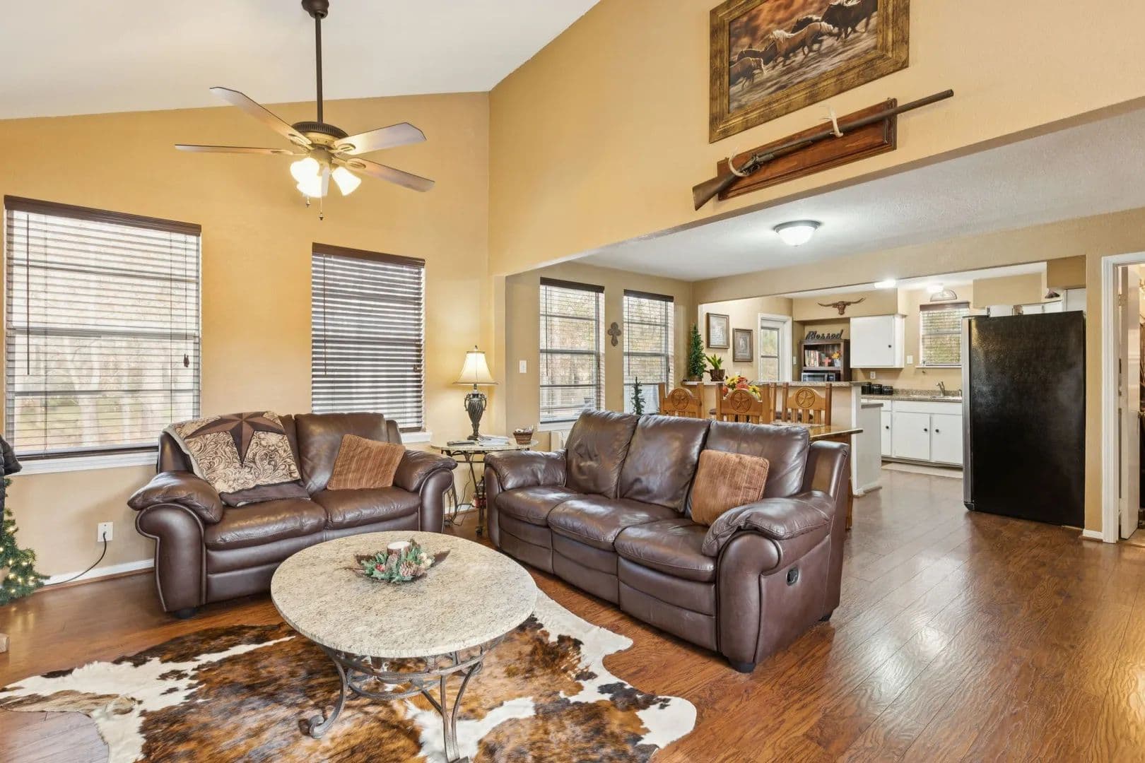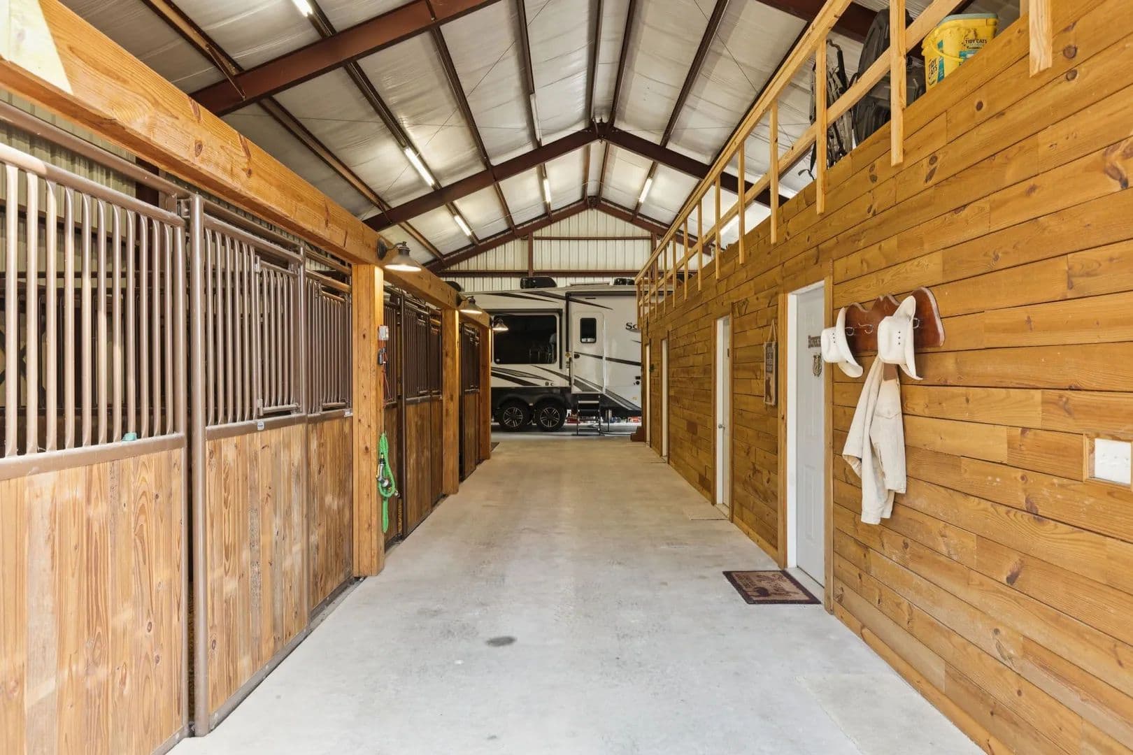 Arrive home to approximately 20 park-like acres featuring a charming 2 bedroom home surrounded by abundant nature; a live running creek and a spring fed stocked pond with pier! Fully fenced and maintains a wildlife tax exemption. Additionally included is a 40x75 engineered Mueller metal building with guest apartment, 3 Priefert horse stalls, tack room, workshop, interior RV parking and 2nd story storage structured for further buildout. Whole house generator, water softener and so much more. Plenty of room to add a second home for your family compound! See this slice of heaven on a private, quiet cul-de-sac!