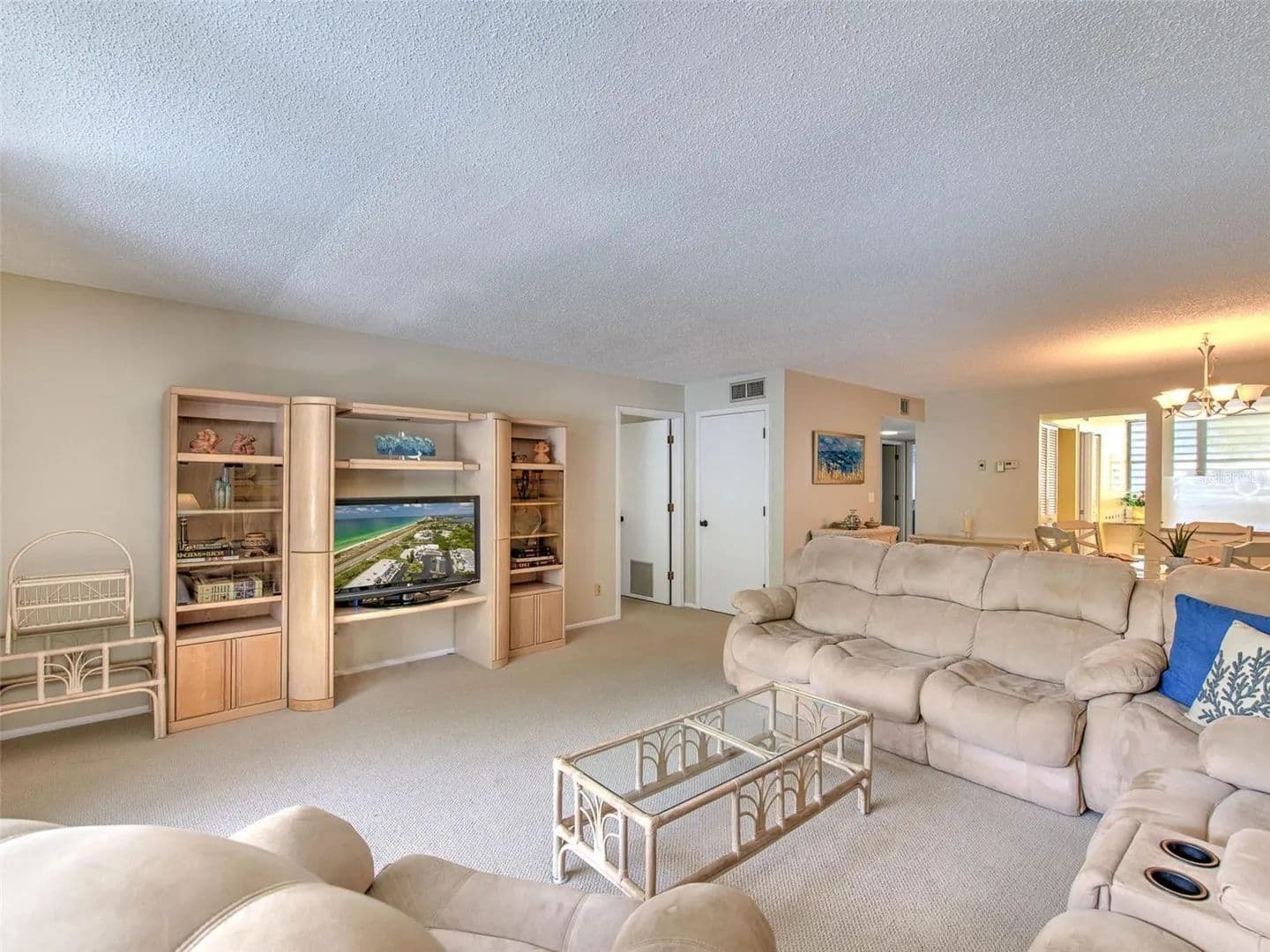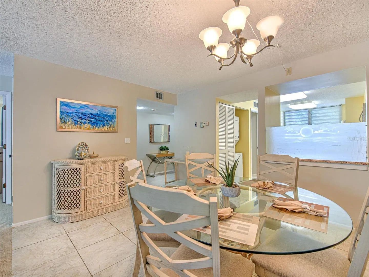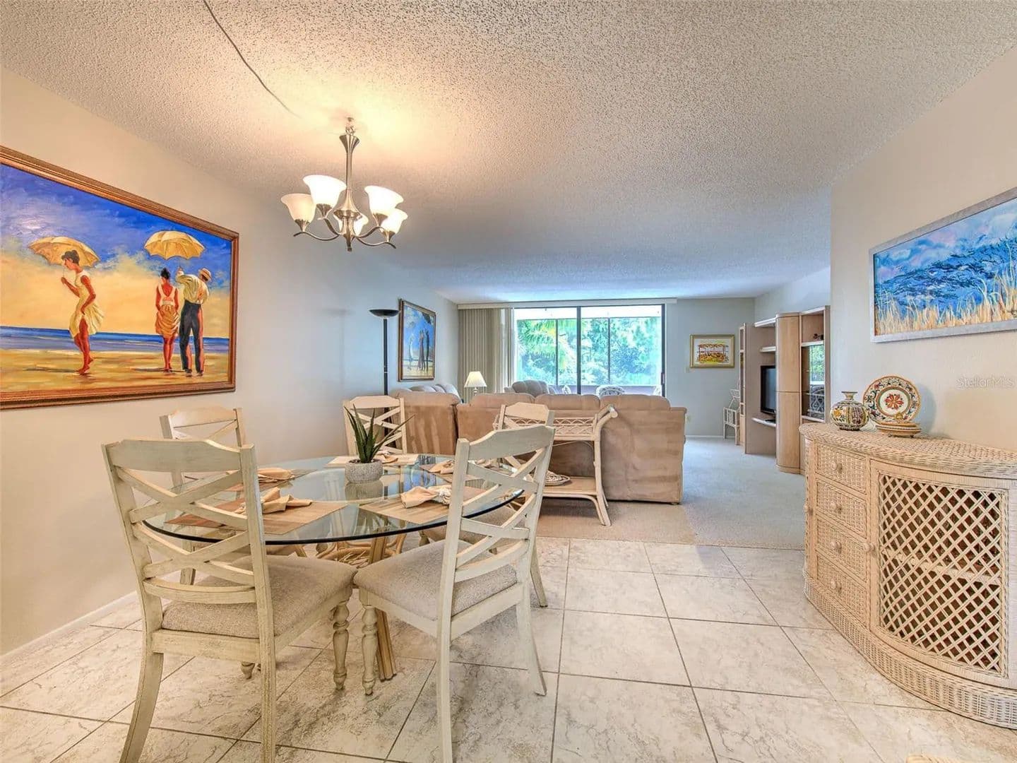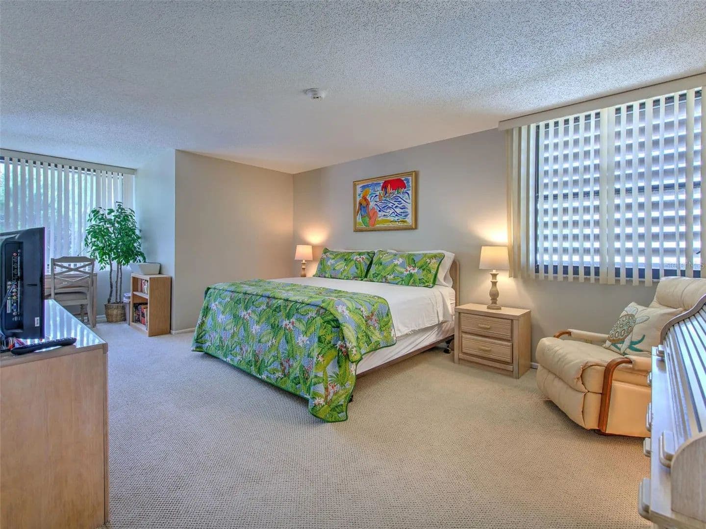 Seasonal rental in Bayport Beach and Tennis Club which is a beautiful, established, award-winning, amenity-rich community with immediate access to a peaceful private beach that continues in both directions for miles along the Gulf of Mexico shore. The complex includes a large pool surrounded by flowering trees, four immaculately maintained clay tennis courts, fitness center, a large clubhouse, bike trails, and a private fishing pier on the bay side surrounded by mangroves. Turnkey furnished on the upper level of a quiet end unit, including two full bedrooms - one with a king bed and the other with two twin beds. You can see the Gulf from the entrance and the guest bedroom. Each bedroom has its own bathroom; the guest bath has a shower and the master bath has double sinks and a bathtub. The kitchen has granite countertops and there is a separate tiled dining area with a glass table, that seats up to six. There is also seating in the kitchen at a granite counter. The living room has comfortable, large couch with an entertainment unit. The condo has a lanai overlooking lovely tropical gardens. In unit washer/dryer. Nearby is a convenient grocery store, great restaurants, museums, galleries, marinas and shops at St. Armand’s Circle. One covered parking space is provided, with plenty of guest parking spaces
