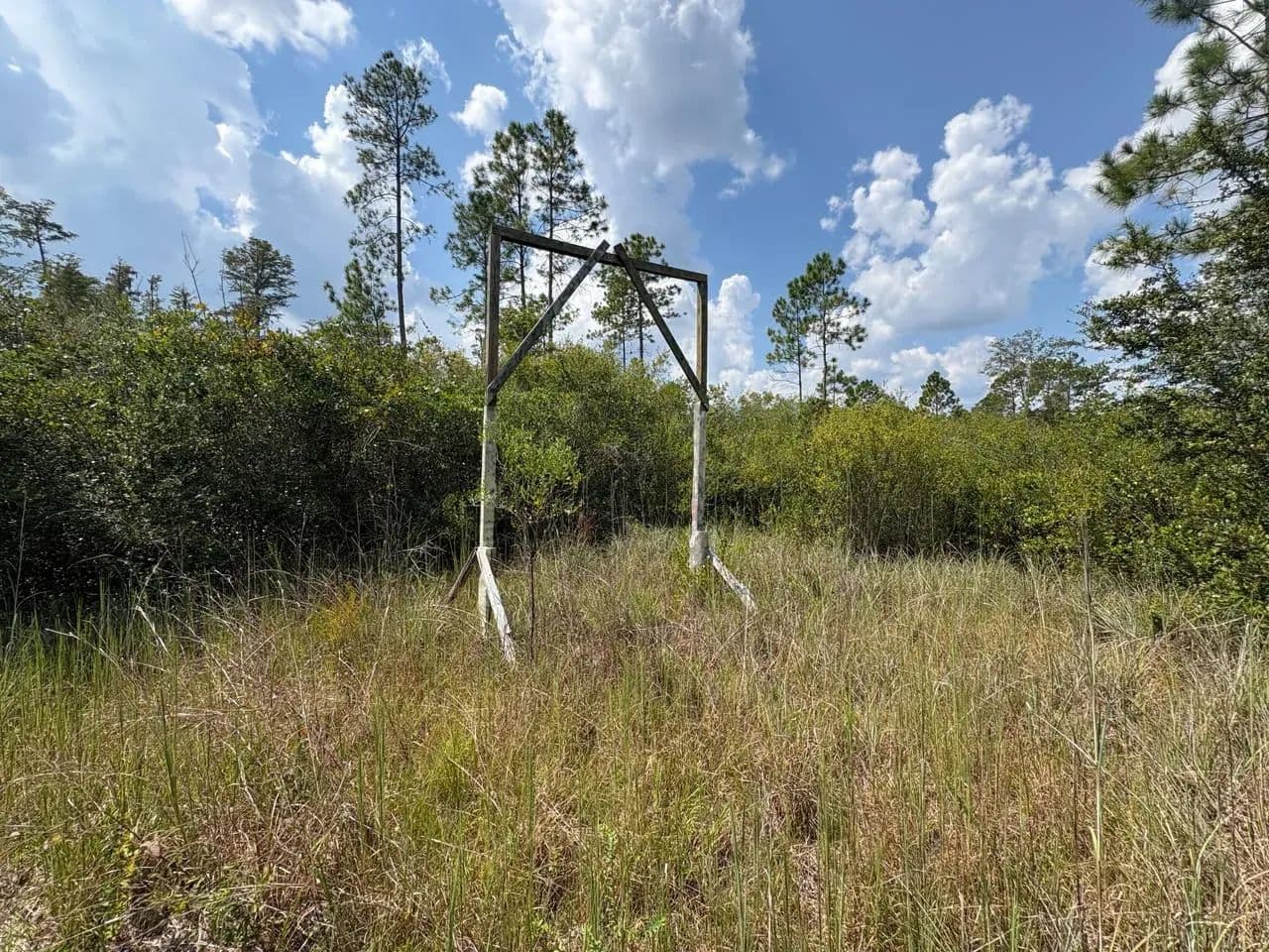 This isn’t your average countryside lot—it’s a true hunting camp. You’ll find cleared trails, open areas for stands, and even a deer skinning rack already on site. The property includes a 30-amp RV hookup and electric service at the property, so you can roll in and set up camp right away. A well and septic system would complete the setup for long-term stays.