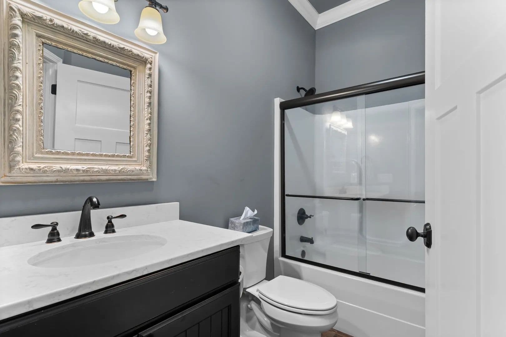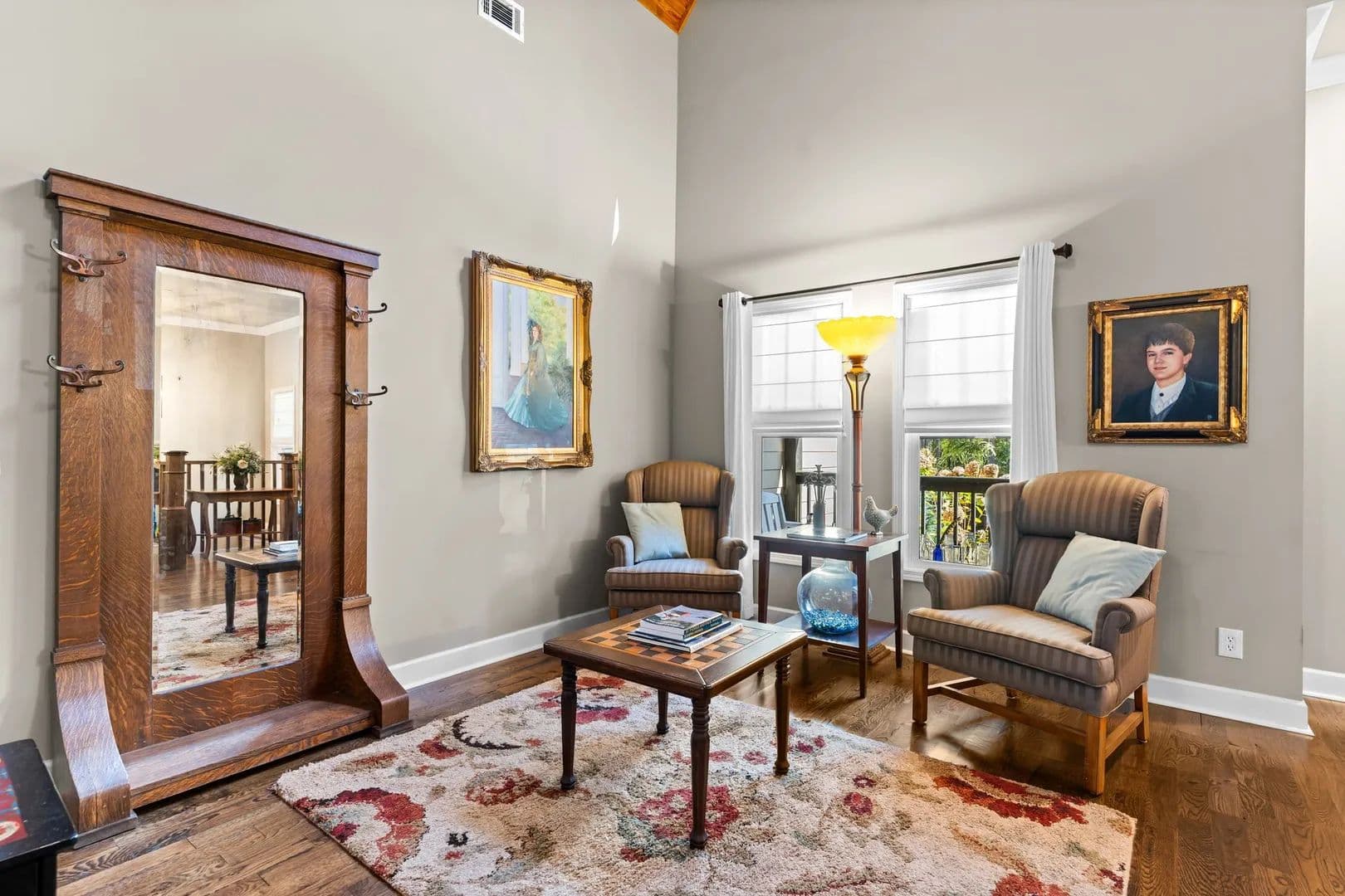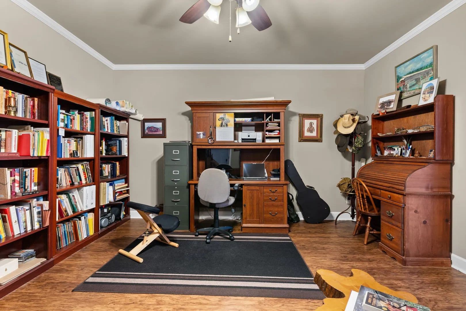 Rounding out the main level, you’ll also find two additional bedrooms, one and a half bathrooms, a small office, laundry room, ample storage, and a two-car garage.