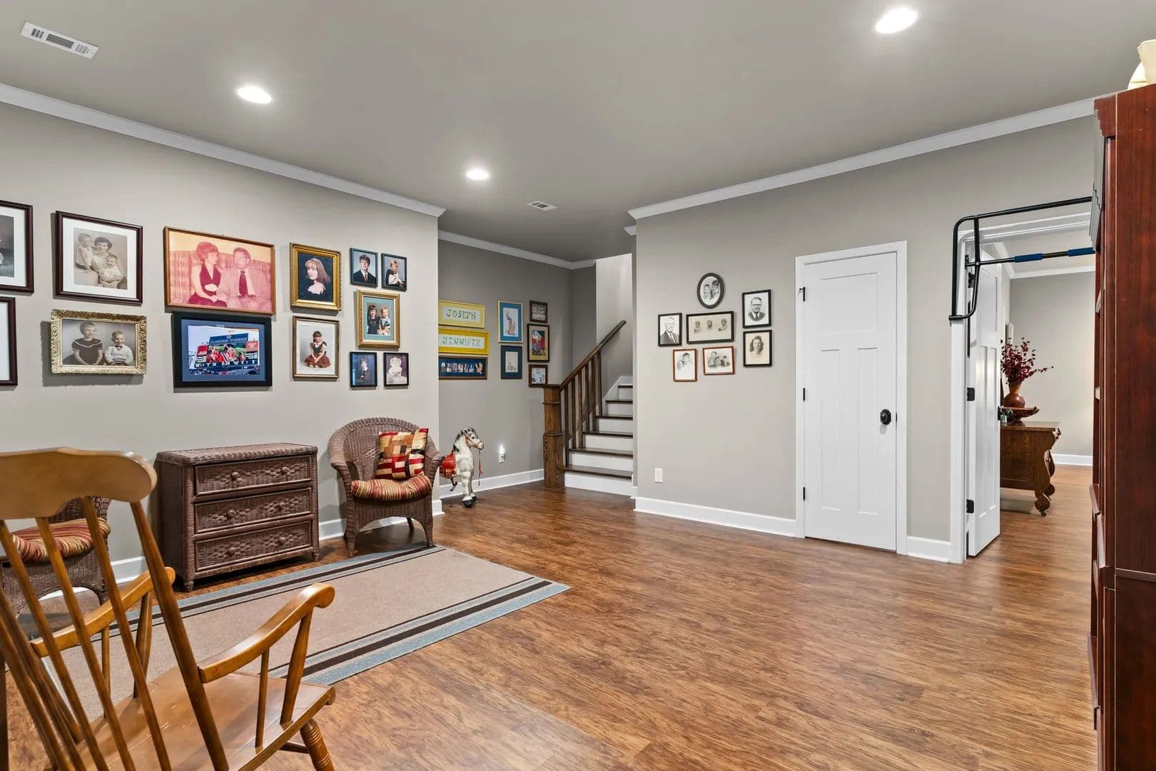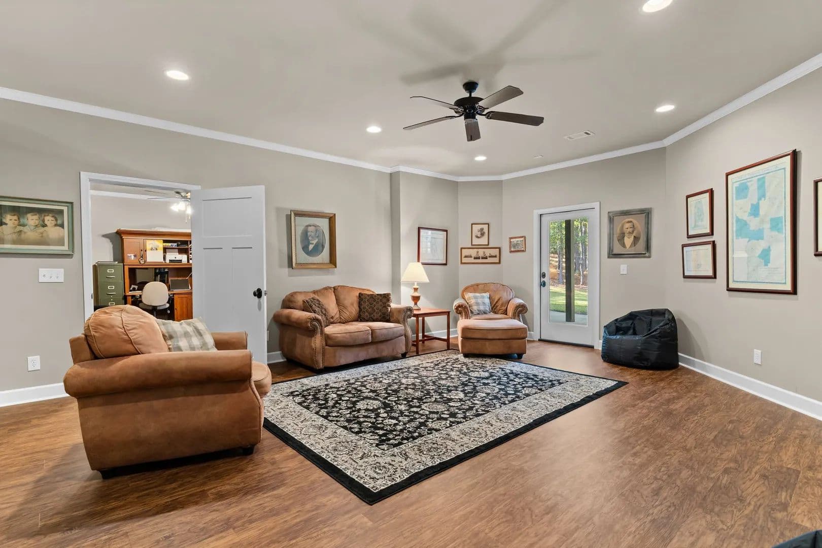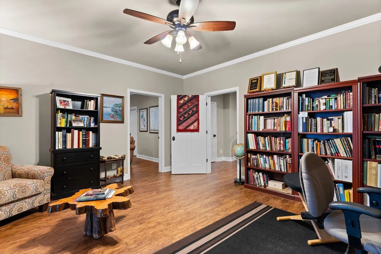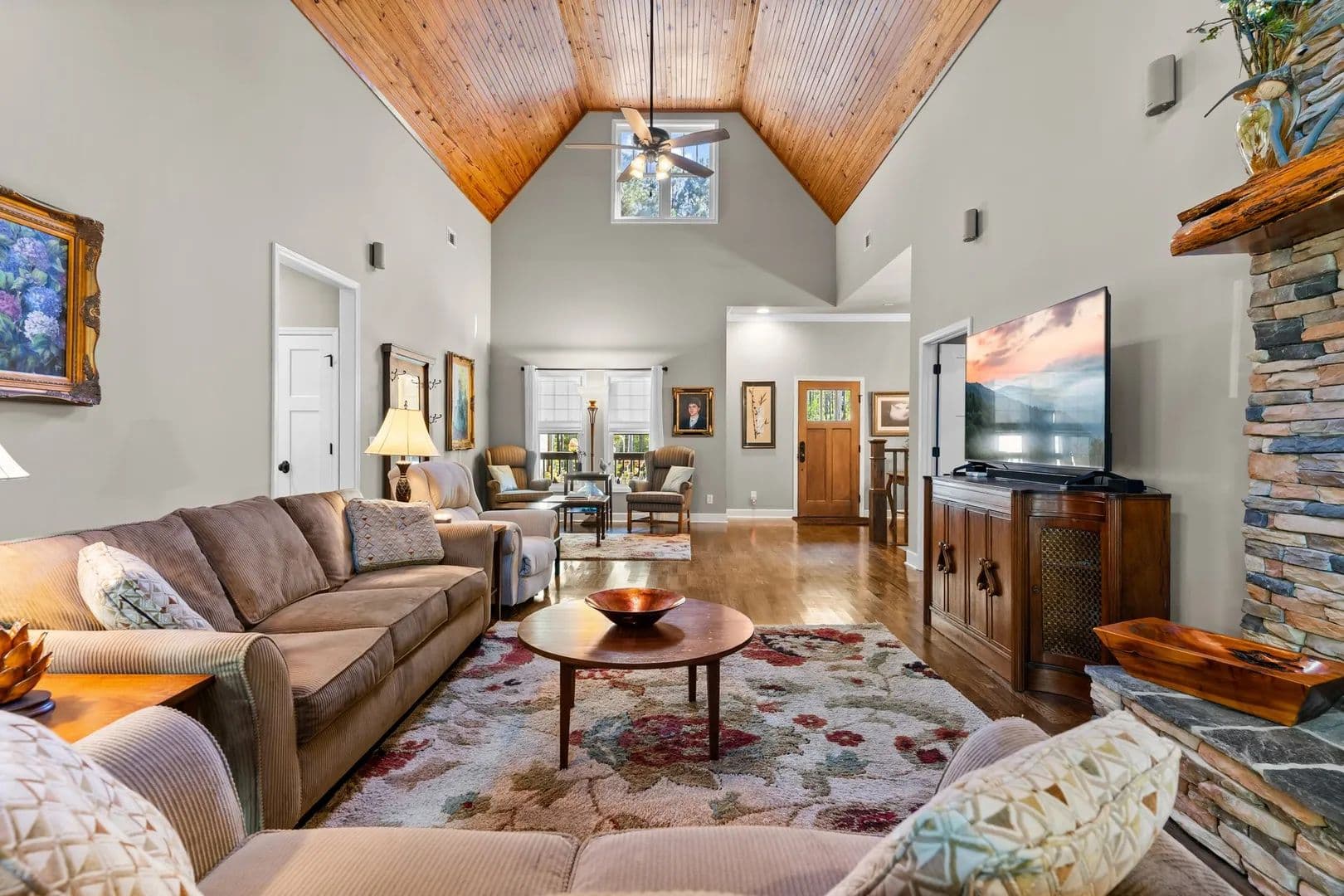 Downstairs, a large guest suite offers comfort and privacy with its own full bath, sitting area, and access to a lower-level porch. Additional office area and TV room make guests feel right at home, and a large storage room.