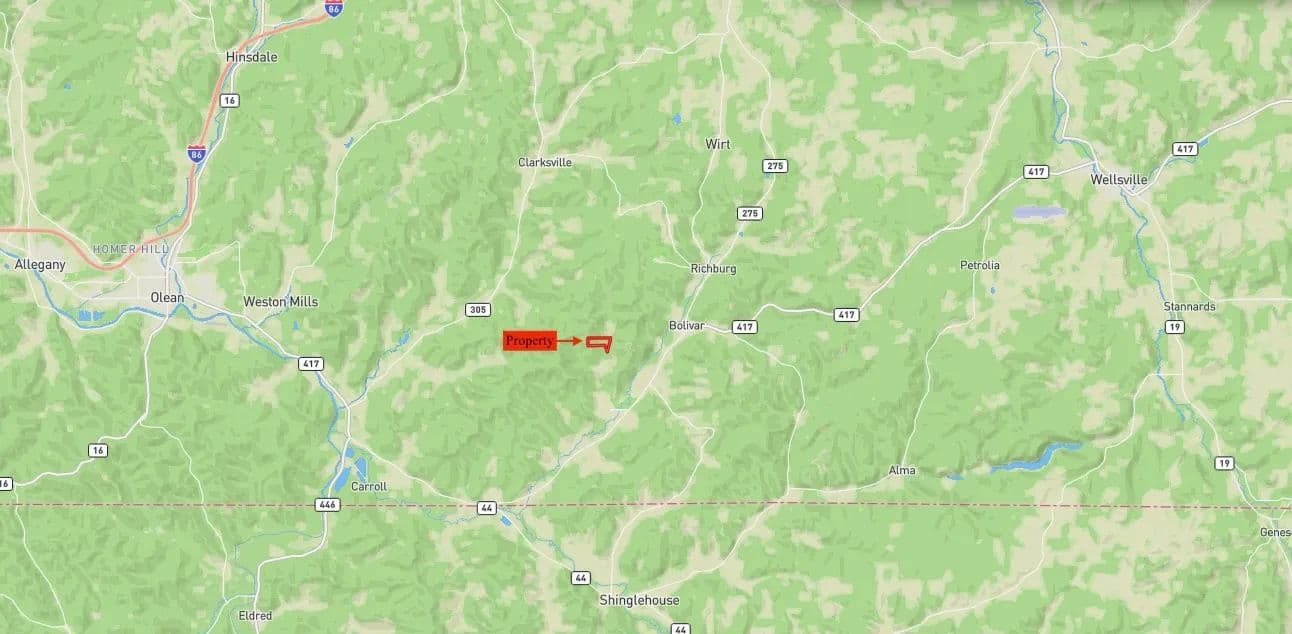 This property is located approximately 8 minutes from downtown Bolivar NY, 15 minutes from Shinglehouse PA, 25 minutes from Olean NY, 50 minutes from Hornell NY, 1 hour 20 minutes from Jamestown NY, and 1 hour 45 minutes to Buffalo NY.