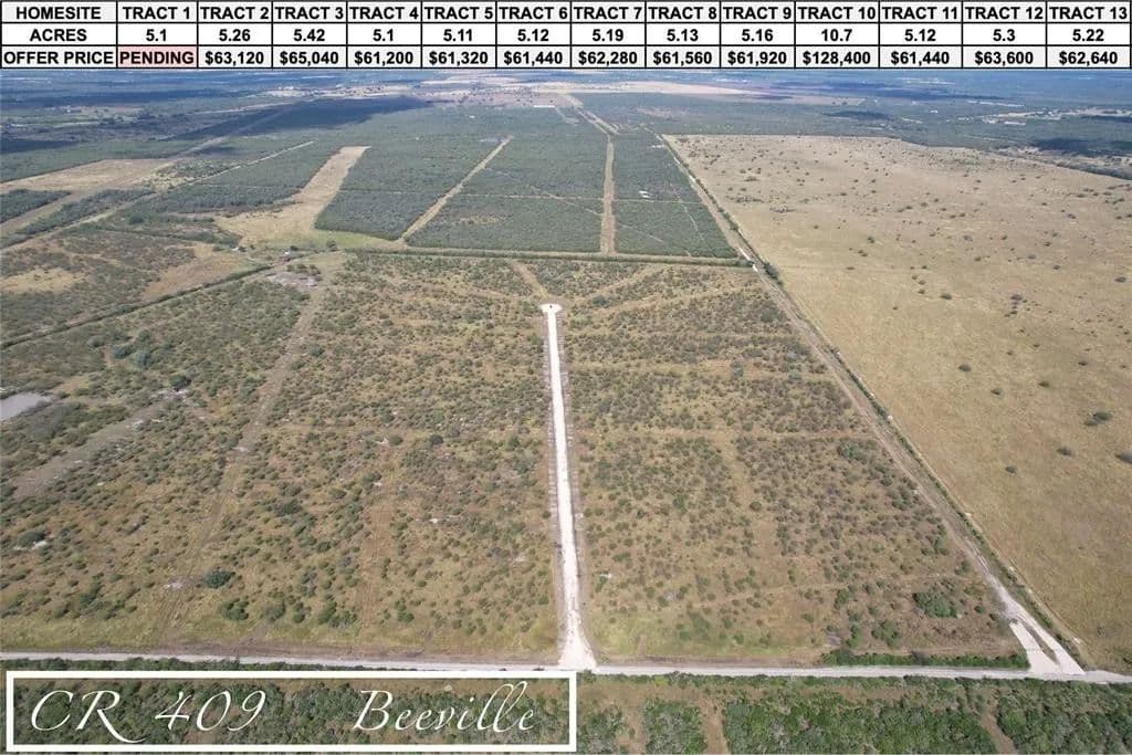 Come experience quiet & peaceful Texas countryside living at it’s finest! Just outside of Beeville City Limits with NO HOA & *VERY LIGHT* restrictions Animals & Manufactured homes WELCOME! Electricity ONSITE! Teeming Wildlife, NO Floodplain & STUNNING sunsets make this Perfect for the weekend getaway & custom home site. Multiple TRACTS available for purchase if you need a little more space! Native Coastal Grasses, with easy access via County- maintained road v NO flooding concerns. Vida tranquila y pacífica. Fuera de los límites de la ciudad de Beeville. Sin Asociación de Propietarios y restricciones ligeras. Los animales y hogares prefabricados son bienvenidos. Electricidad en el lugar. Vida silvestre sin llanura de inundación. Múltiples extensiones/tramos disponibles para su compra. Los ciervos salvajes, pavos y cerdos deambulan por el pasto. A minutos de la fantástica pesca en el resplandeciente Golfo de México.