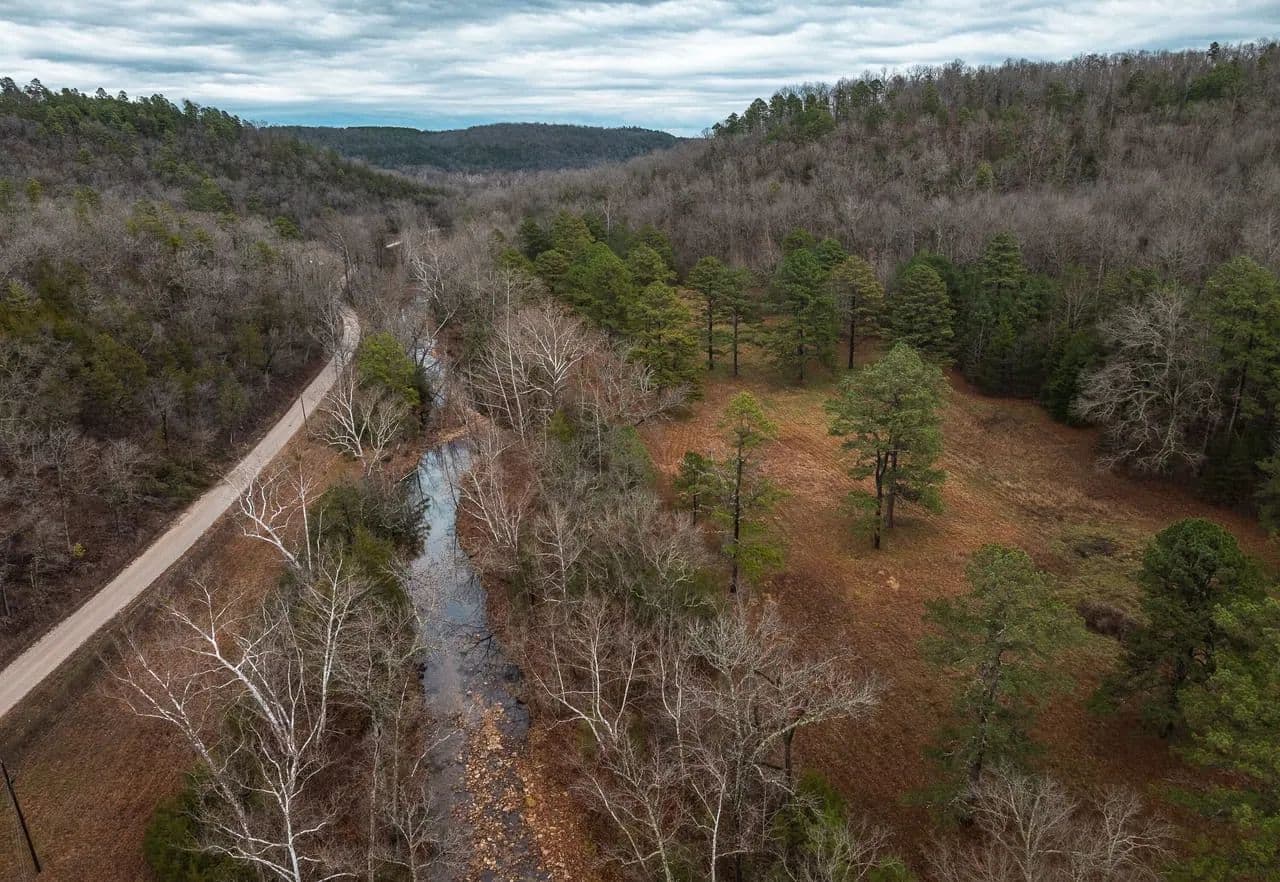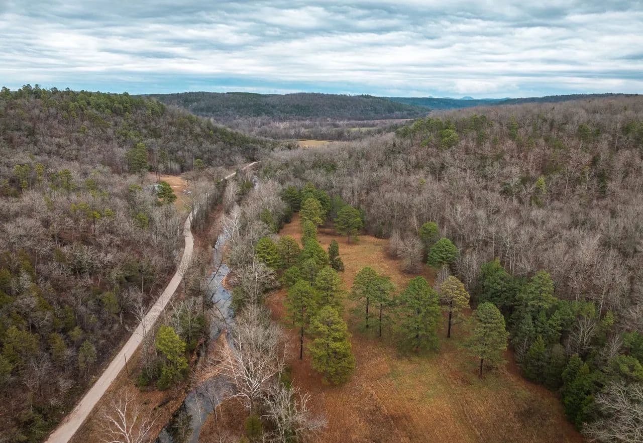 One word comes to mind when I think about this place- Rarity. This do it all tract encapsulates all the features that make the Ozarks so special. Every holler, every bend in the creek, and every hidden field corner encompasses the unharnessed, unmolested, pristine conditions of a truly healthy ecosystem with classic Ozark flora and fauna. This stunning parcel boasts over 1/2 mile of Sneeds Creek frontage, a spring-fed creek flowing year-round. A great sign of clean Ozark mountain water- the Ozark Hellbender salamander has been spotted in this creek which is an endangered species who can only survive in non polluted environments. To top it off, a nice size 365 day a year fresh water spring flows from underground in the northeast corner offering thousands of gallons of water a day, which is not only ideal for wildlife, but could offer a major cost savings for supplying clean drinking water for a home or cabin in comparison to drilling a well. The entire south boundary is shared with the Ozark National Forest. This access along with many other access points jut a short drive away offers you, family and friends the ability to hunt, hike, mountain bike and explore over 50,000 acres of Ozark wilderness. With electric on-site and multiple building locations, this land offers both convenience and natural beauty. Picture yourself in the Ozark creek bottom with mountain views, surrounded by a diverse habitat perfect for wildlife and people alike. The property features a north-facing bowl coming off the western ridge with plentiful white oak, a large flat ridge top with ideal food plot locations and multiple finger ridges extending into the creek bottom creating wildlife funnels. It also features 12 acres of hay field, with the western pasture not being cut for hay, which is ideal for ground-nesting birds. One stellar feature of this property is the fact that no grazing is taking place. The areas in the bottom untouched by the hay baler remain native Ozark riparian habitat teeming with lush Forbes and grasses. The cool season improved pasture grasses in the hay fields also offer a winter food source for the wildlife, while the two eastern-most hay fields would be ideal for a “honey hole” food plot adjacent to a destination food located 1/2 mile from White River access, you can be on your boat in world class trout waters in 5-10 minutes. The tract is conveniently located 20 minutes to Norfork, and 30 minutes to Mountain Home and Calico Rock. Highlights include giant mature pine, sycamore and walnut in the creek bottom, rock outcroppings, county road frontage, and fencing along the road. A rare opportunity in an area with limited private land holdings. Whether you want to forage for Chanterelle’s and Morel’s, explore the native creek bottom, enjoy the frost ribbons on a cold winter morning, or watch the river cane sway in the summer breeze, this property offers a classic Ozark vibe that is a true rarity to find.