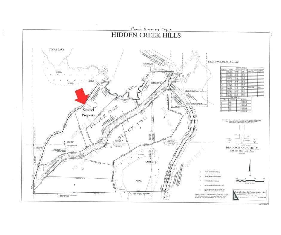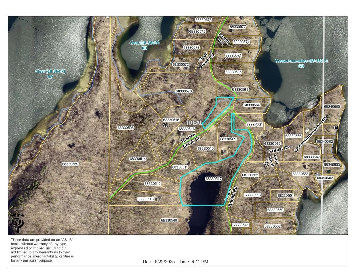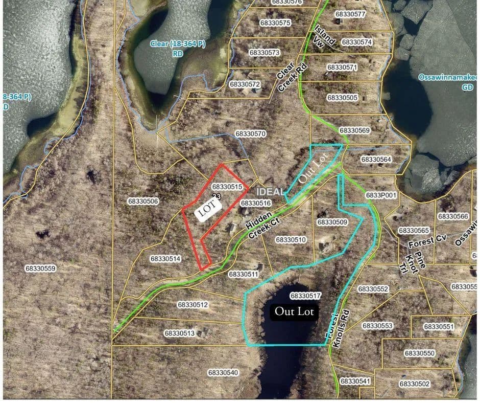 Beautiful 2.7-Acre Lot with Stream Flowing from Clear Lake to Ossawinnamakee Lake!This picturesque wooded lot features a natural stream flowing from Clear Lake to Ossawinnamakee Lake, offering a serene and unique setting. With a driveway already in place and a cleared building site, its ready for your dream home or cabin getaway. Nestled in the heart of lake and golf country, you'll enjoy easy access to some of the area's best recreation. Includes a 1/8 interest in Out lots A & B - see plat for details. Dont miss out on this exceptional property!