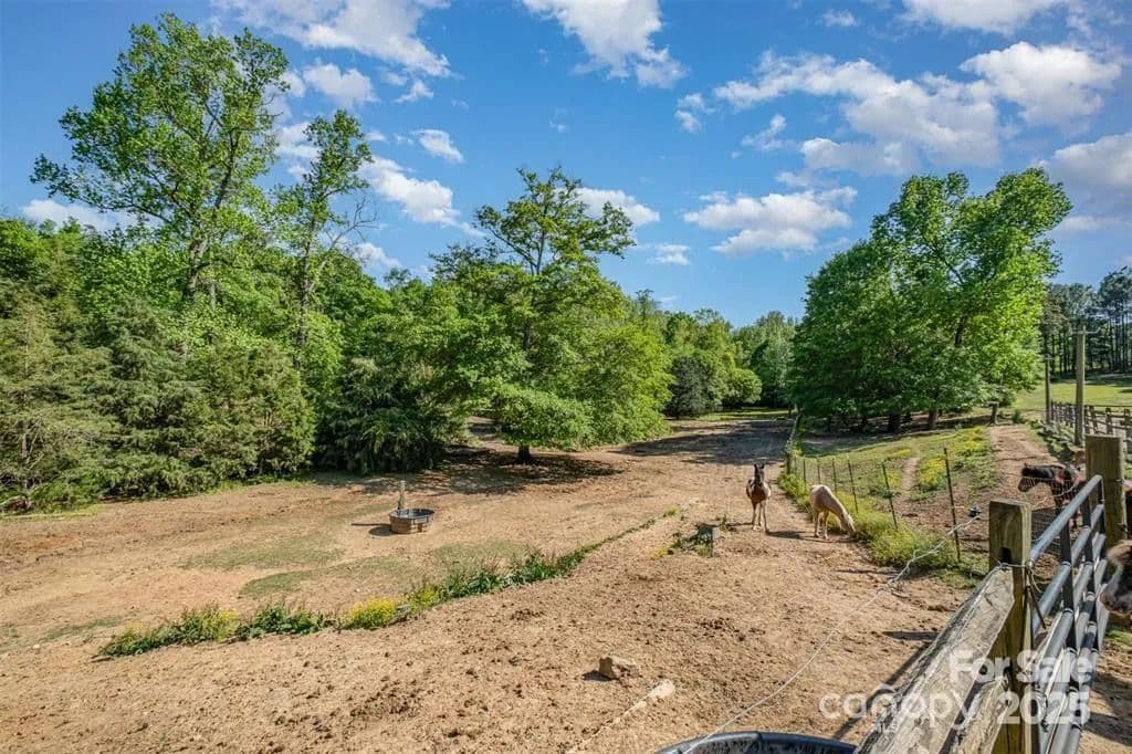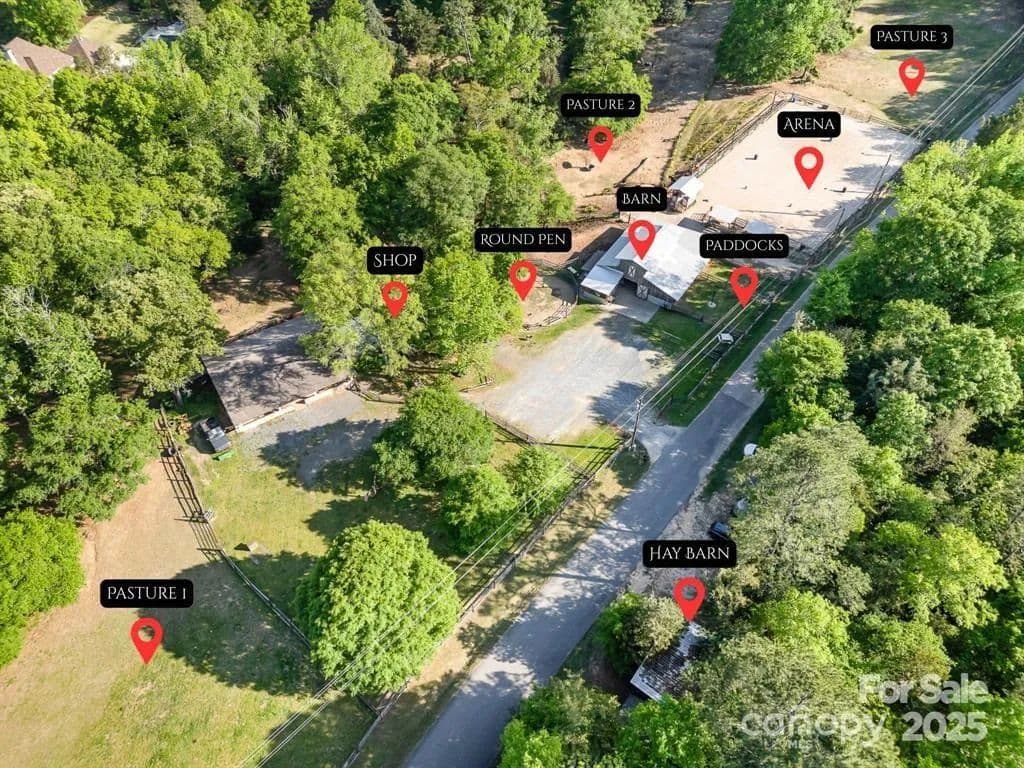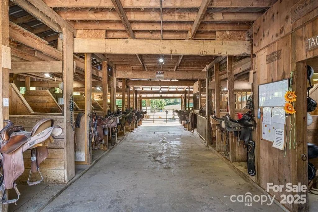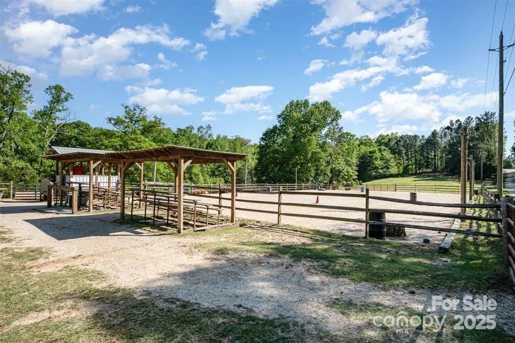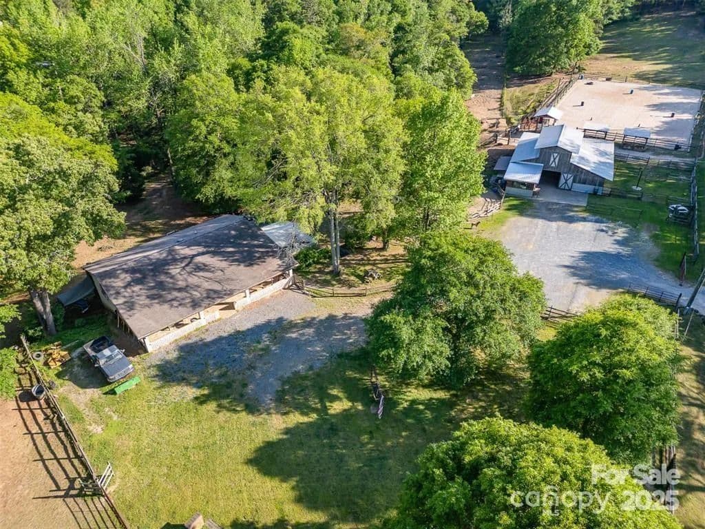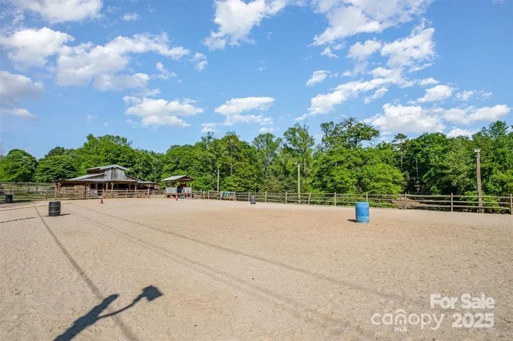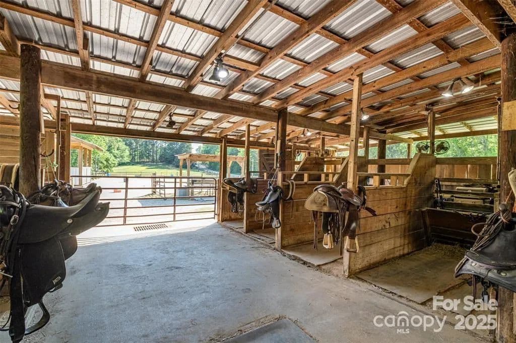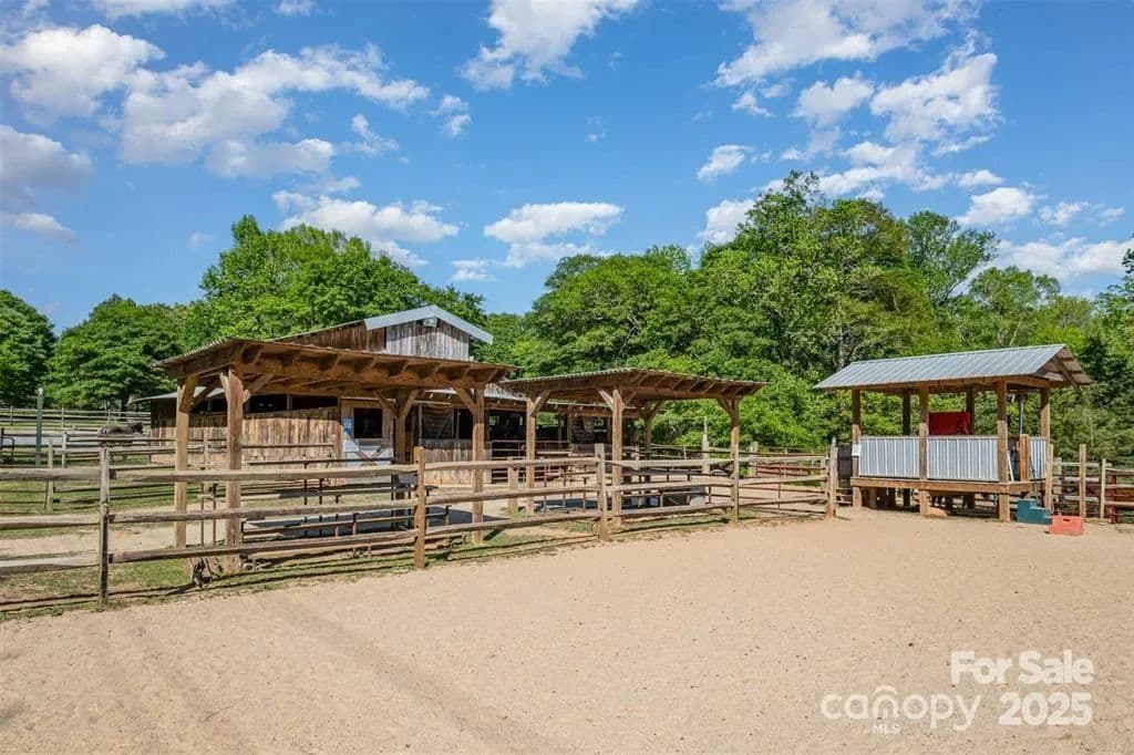 This exceptional 11.57-acre equestrian property offers a rare opportunity to enjoy the privacy and tranquility of country living, all while being just minutes from the conveniences and amenities of Indian Land. The main barn has been completely redone throughout the years, which includes includes 18 horse stalls (made up of 2 box and 16 standing stalls), each equipped with individual lighting. Attached to the barn are a functional tack room and a temperature controlled feed room with hot water, providing convenience for daily operations. Equestrian amenities include lighted riding arena that allow for evening or night training, and water lines run to three separate pastures, supporting efficient care and grazing for horses. Also included are 2 paddocks, a round pen, shop/equipment building, and spectator seating! On the opposite side of the street, a separate hay barn is included as part of the property, offering additional space for feed storage and equipment. The facility has been successfully run for years as a riding school and summer camp, and is perfectly suited for continued use as a boarding stable, training center, or equestrian camp OR working farm. A one-story brick home with a fully finished basement is located on the property and is included in the sale in as-is condition. With excellent infrastructure, a strong reputation, and income-generating potential, this is the perfect opportunity for any horse enthusiast or entrepreneur!