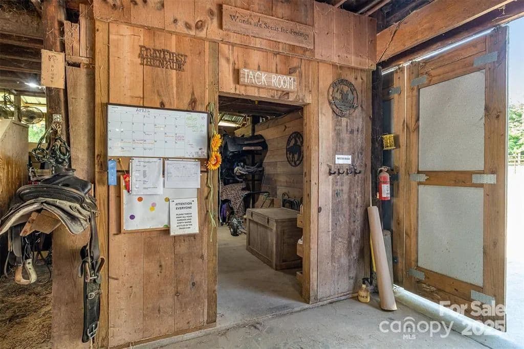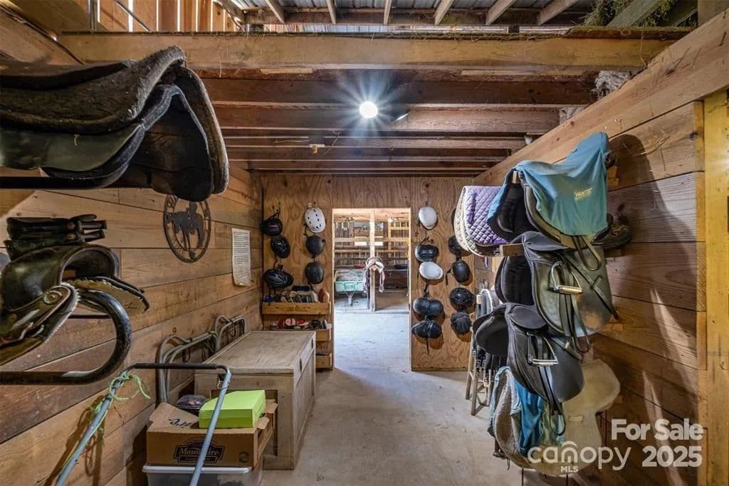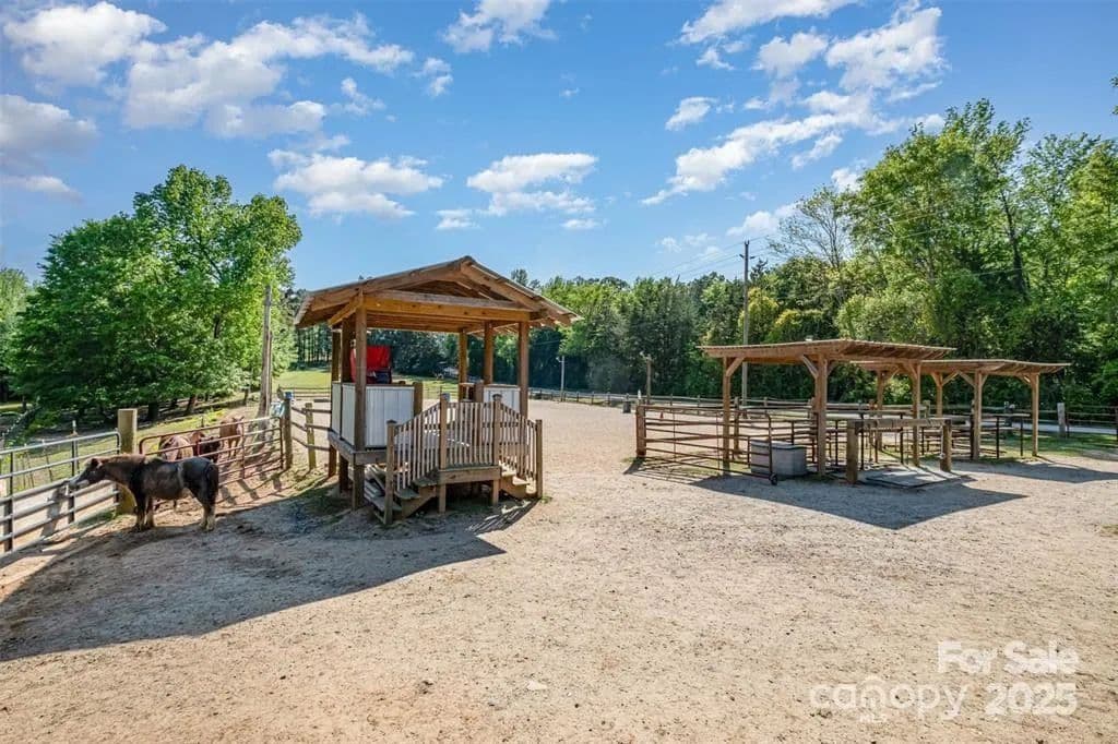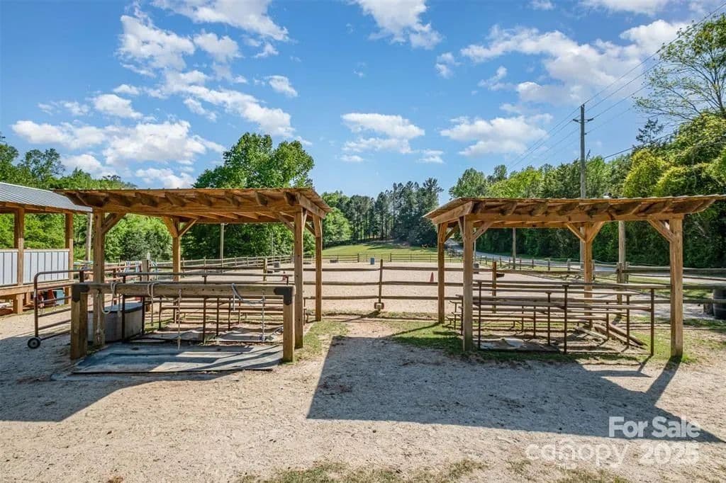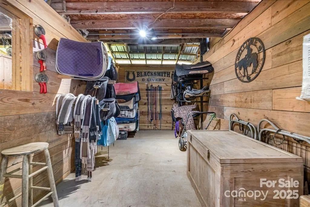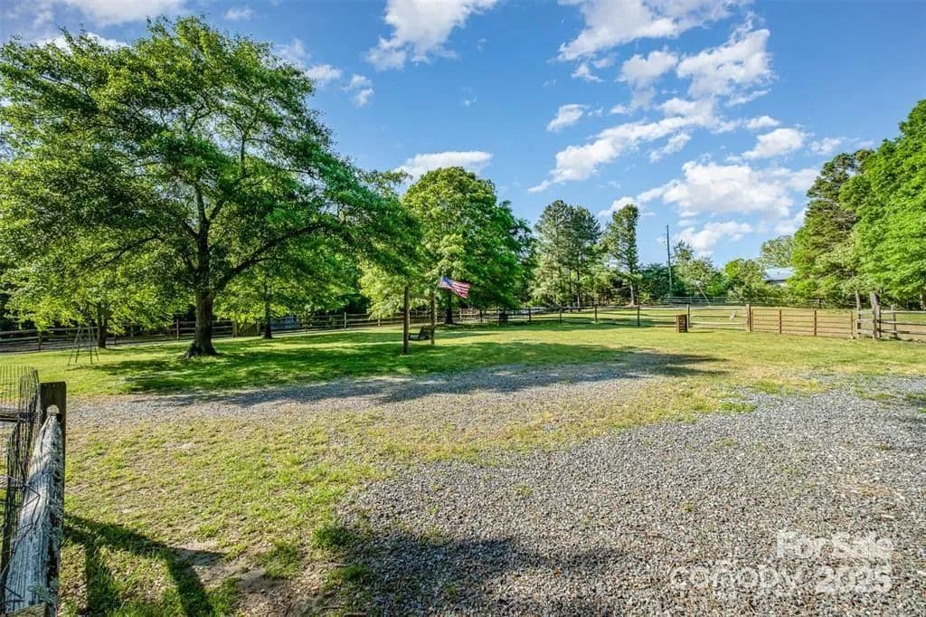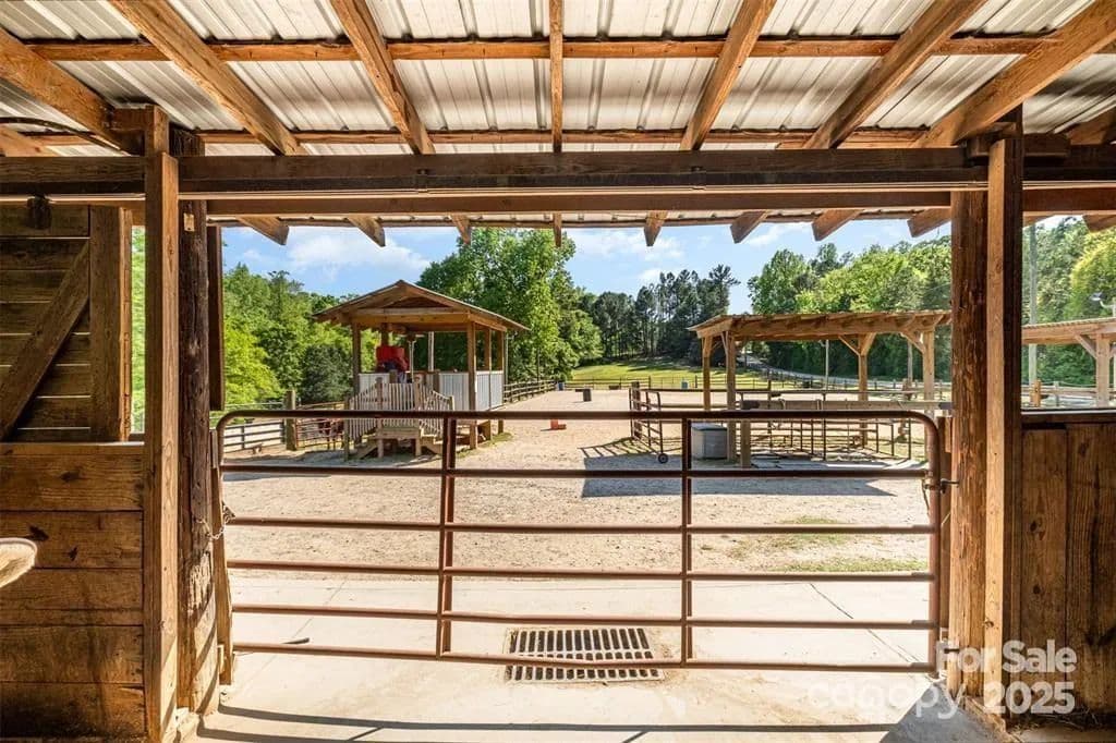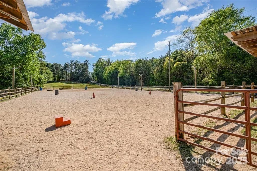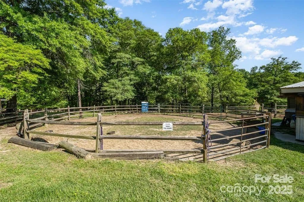This exceptional 11.57-acre equestrian property offers a rare opportunity to enjoy the privacy and tranquility of country living, all while being just minutes from the conveniences and amenities of Indian Land. The main barn has been completely redone throughout the years, which includes includes 18 horse stalls (made up of 2 box and 16 standing stalls), each equipped with individual lighting. Attached to the barn are a functional tack room and a temperature controlled feed room with hot water, providing convenience for daily operations. Equestrian amenities include lighted riding arena that allow for evening or night training, and water lines run to three separate pastures, supporting efficient care and grazing for horses. Also included are 2 paddocks, a round pen, shop/equipment building, and spectator seating! On the opposite side of the street, a separate hay barn is included as part of the property, offering additional space for feed storage and equipment. The facility has been successfully run for years as a riding school and summer camp, and is perfectly suited for continued use as a boarding stable, training center, or equestrian camp OR working farm. A one-story brick home with a fully finished basement is located on the property and is included in the sale in as-is condition. With excellent infrastructure, a strong reputation, and income-generating potential, this is the perfect opportunity for any horse enthusiast or entrepreneur!