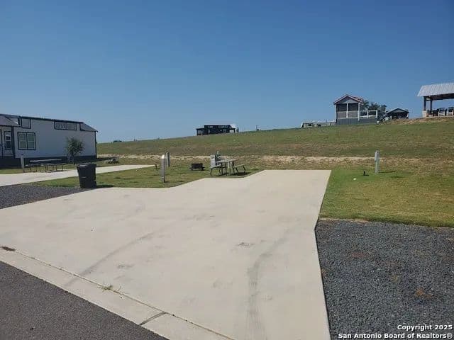 This property offers an ideal retreat for RV or tiny homeowners seeking a peaceful yet amenity-rich location in Texas Hill Country. Situated within the Firefly Resort, it combines serene natural views with convenient access to community features and nearby attractions. Prime location and quiet setting: The lot is positioned to provide tranquility with beautiful Hill Country views, while being a short walk from the community pavilion, pool, and other resort amenities. Nearby destinations include Luckenbach, the Texas Wine Trail, and Fredericksburg's Main Street. Fully equipped for RV or tiny home: The site includes all necessary utilities and hookups for RVs or tiny homes, with a concrete pad, picnic table, firepit, and glider swing, making it ready for immediate use or rental. Resort amenities and community features: Firefly Resort offers world-class amenities such as a two-tiered pool with splash pad and infinity waterfall, playground, dog park, clubhouse with game areas and laundry, outdoor kitchens and grills, live weekend music, and security with a guardhouse and cameras. Investment and rental opportunities: Owners can enjoy the property as a personal getaway or generate income through on-site property management services that facilitate renting the lot when not in use. Phase 3 developments include additional amenities like an adult-only heated pool and pickleball courts.