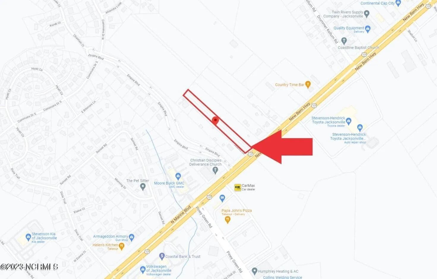 Great opportunity with highway frontage in a commercially growing area of the Jacksonville ETJ. Located on Hwy 17 just out of the city limits. 4 parcels sold as one with 126 feet of road frontage. RMFLD current zoning. Could potentially be rezoned to commercial for wider use of the property. 20,000+ traffic count. Close to Marine Corps Base Camp Lejeune.