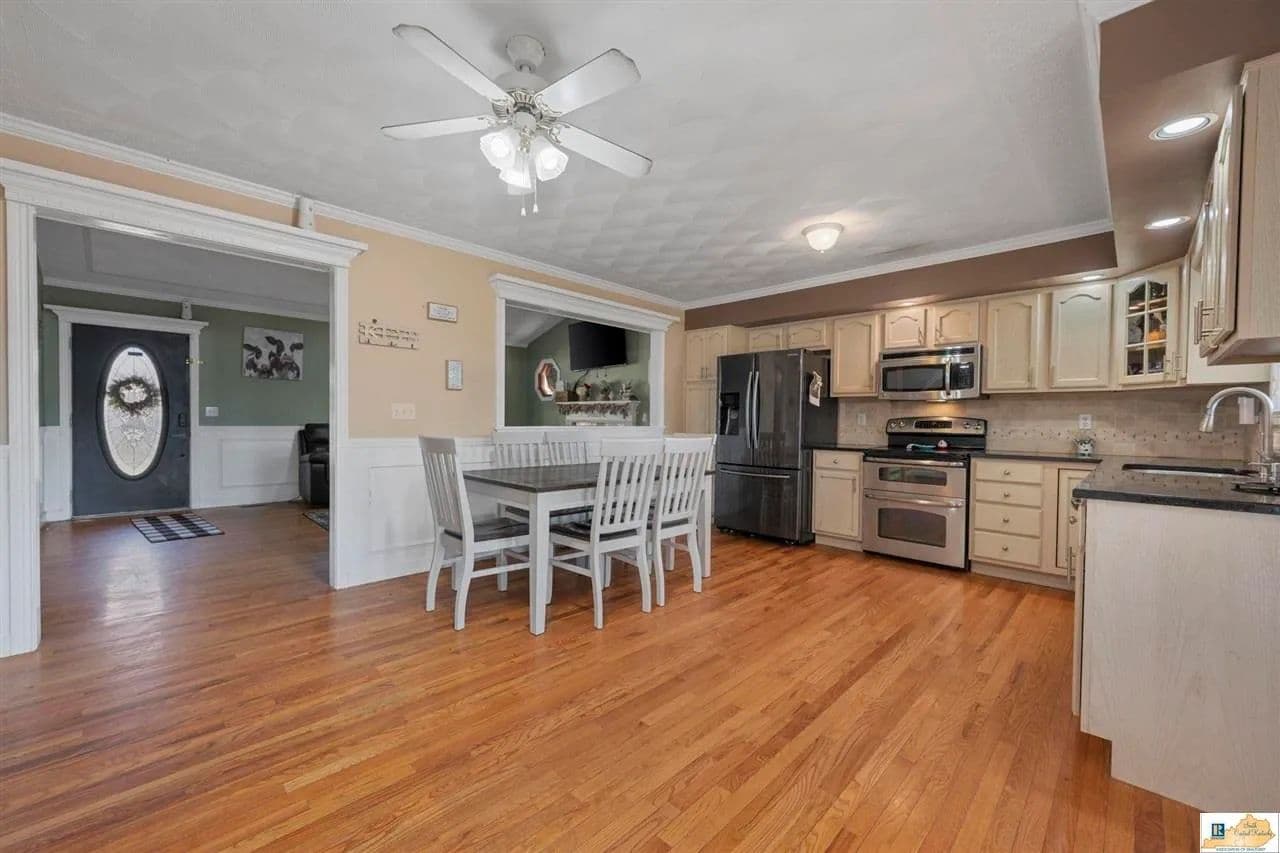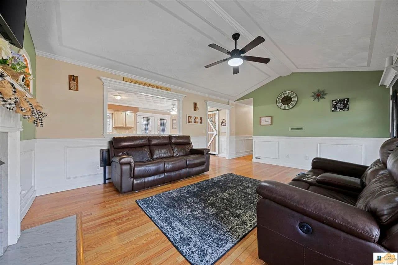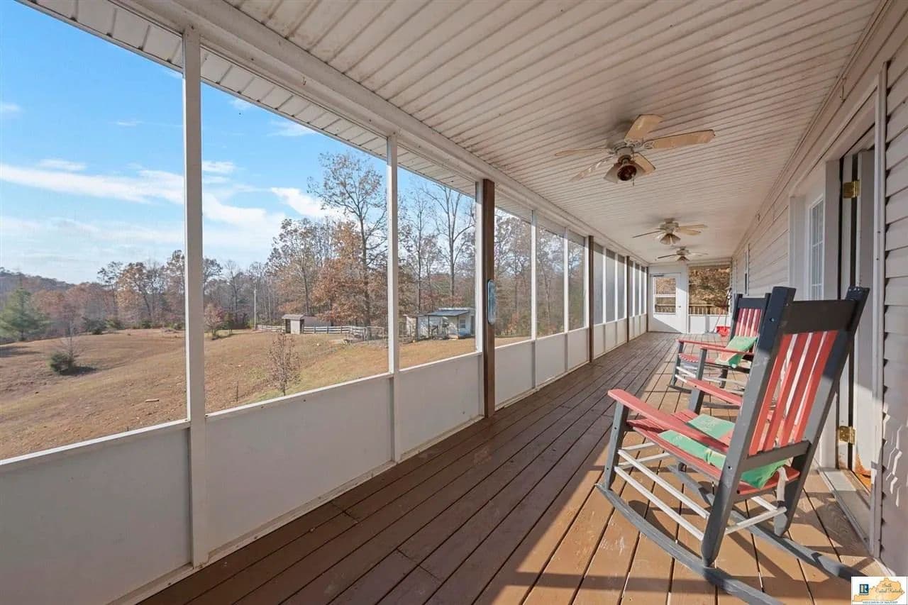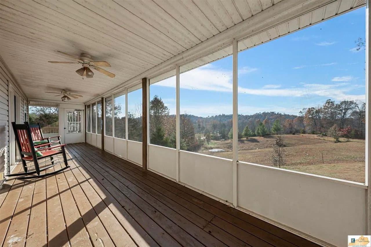 Welcome to your private retreat! This beautifully detailed home sits on 15 serene acres, offering the perfect blend of open pasture and wooded trails. Whether you're looking for a peaceful homestead, a place for animals, or room for extended family, this property has it all. The main level features 2 spacious bedrooms and two full bathrooms showcasing warm character with textured ceilings, crown molding, and wainscoting throughout. The full-length porches on three sides invite you to relax and enjoy the scenic views while the enclosed sunroom on the fourth sides provides a cozy spot year-round. The finished basement doubles as a mother-in-law suite, complete with it's own kitchen and living area-perfect for guests, family, or potential rental income. Outside you will find a detached 3-car garage with an additional lean-to, a chicken coop, and another outbuilding for storage or hobbies. The land is a picturesque mix of pasture and woods, complete with trails for exploring and a large pond that adds to the tranquil setting. Additional features include a camper hookup with water, electric, and gas, making it easy to host visitors or enjoy weekend adventures right at home.