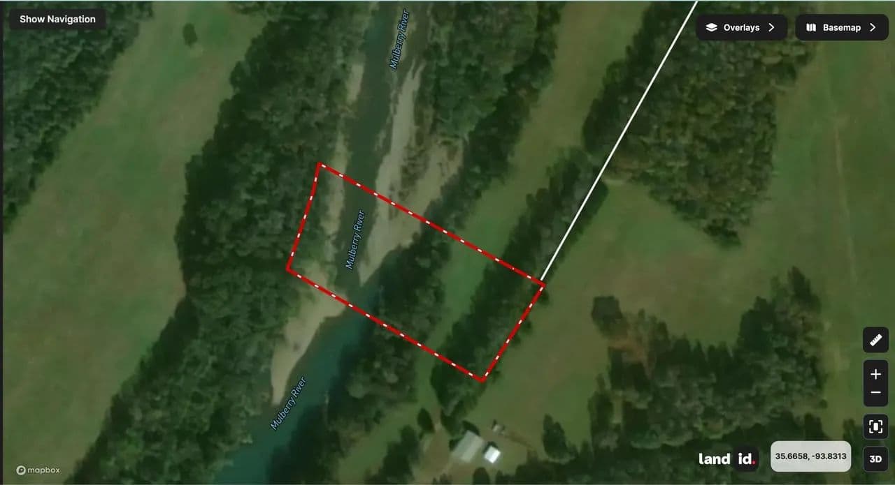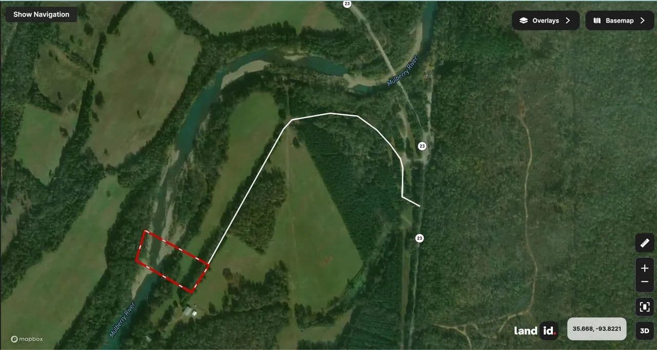 3 Acre Mulberry Riverfront lot with 246 ft of river frontage on one of the Mulberry river’s best floating stretches. Water and electric at the road with deeded access via shared gravel road. Just 13 miles north of I-40 on scenic Hwy 23. Enjoy Ozark National Forest views, waterfront serenity, and the sound of the river from your future deck or cabin site. A rare chance to own prime riverfront property in the Ozarks.