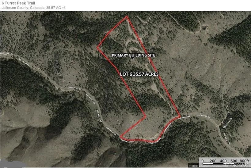 Jaw dropping views and a ton of possibility highlight this 35+ acre parcel, perfectly located near miles of hiking and biking trails plus renowned fly-fishing waters. With level areas to sloped, this parcel is ready to build your private mountain retreat or take advantage of the preliminary work done by the sellers to allow for subdividing into 3 parcels of 10+ acres with water augmentation through Headwater Authority of the South Platte (HASP). Fees to HASP need to be paid by Buyer to finalize augmentation plan if desired. Proposed subdivision pre-application has been submitted with preliminary county approval allowing for 2 dwellings on each new parcel: 1 main residence and 1 Accessory Dwelling Unit. Wildcat Pointe Estates is a beautiful community with gorgeous homes and no HOA. Turret Peak Trail is a well maintained private road with easy access off paved Hwy 126. Road Maintenance Agreement is $5000/year for private road maintenance and snow removal. Land Survey Plat available as well as the Project Narrative and Site Division Design as submitted to Jefferson County if Buyer wishes to pursue the subdivision route. This great location is only 15 minutes to Conifer shopping and amenities, 15 minutes to Pike National Forest trails, and an hour and 15 minutes to DIA. Showings by appointment only. All information is deemed reliable and represented to the best of seller's knowledge, buyer is responsible to verify all information as to subdivision potential and building suitability.