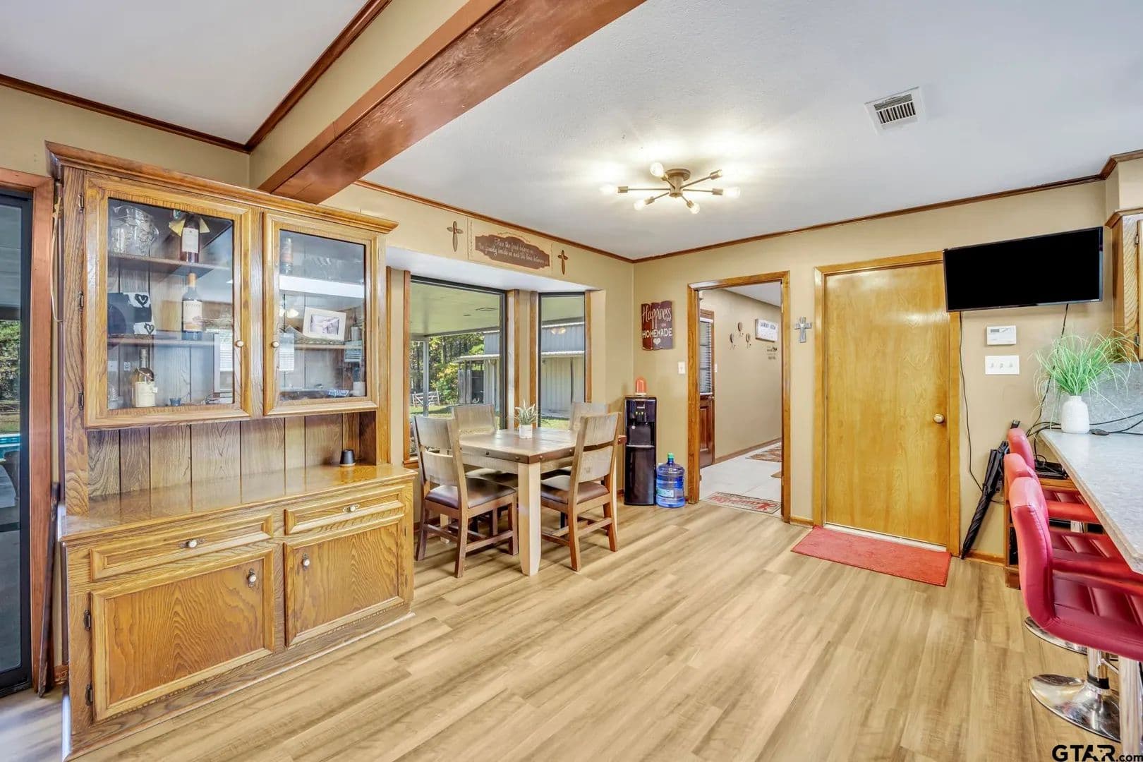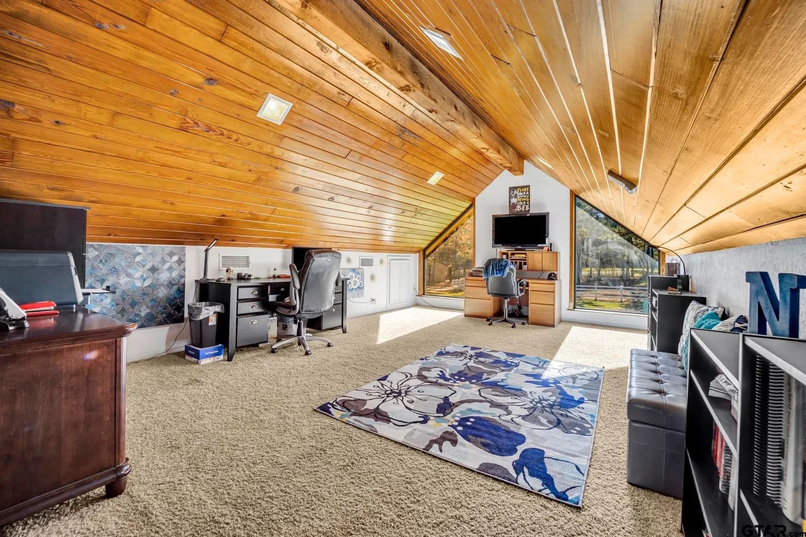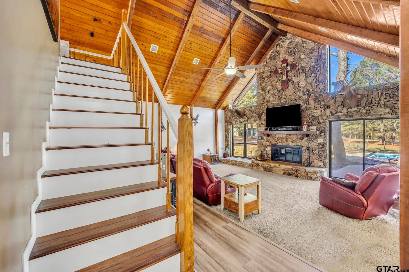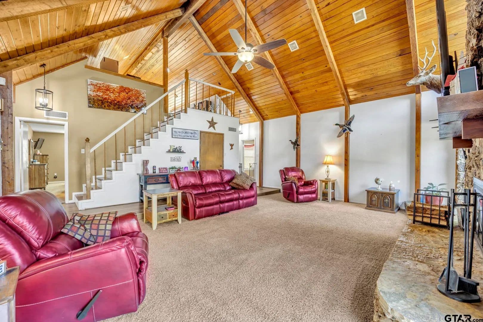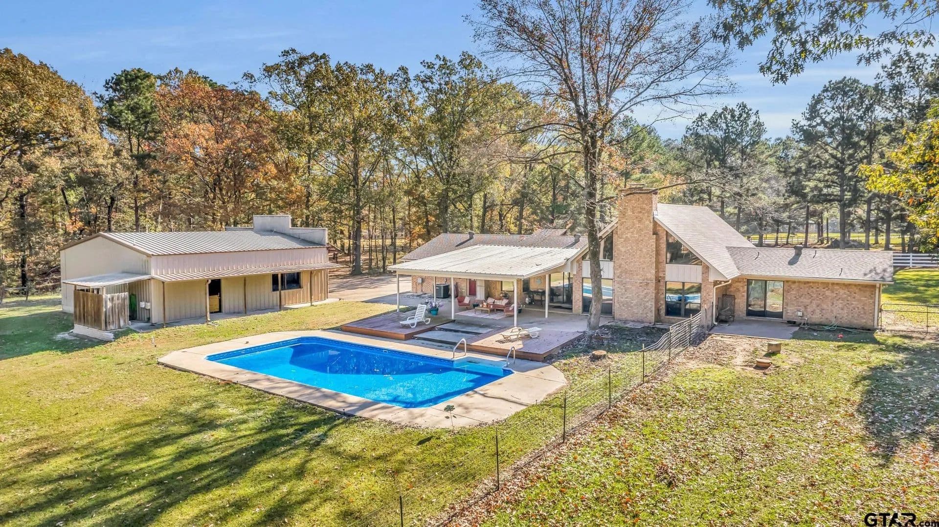 Relax and unwind on 6 beautiful acres in this 3 Bed 2 Bath family home in Kilgore! Nestled behind tall pines and a stately gated entrance at the end of a cul-de-sac, you'll find this charming and pastoral brick home with a 6-stall horse barn, loafing shed, equipment barn, and fabulous separate mancave (perfect for family get-togethers or MIL suite) a wonderful retreat. With a shaded pond, pastures, an in-ground pool, and a separate dog run, this home has it all! Imagine holiday evenings around the magnificent floor to ceiling stone fireplace with gorgeous views of the backyard, large back patio, and the pool. Entertain family and friends in the dining area and eat-in kitchen with abundant cabinetry and a great layout. The lofted space in the living room is a perfect private office, playroom, or additional guest bedroom! Find your sanctuary in the master bedroom, split from the two guest bedrooms, with its private sliding door to the back patio and a deep soaking tub. You'll love spending weekends in the separate second dwelling that's an incredible mancave! With a kitchenette and a three-quarter bath, you can host and entertain with ease in this extended family room, MIL suite, or make it a state-of-the-art workshop! Serene pastureland, mature shade trees, picturesque views, and proximity to shopping and dining make this homestead a must see. Call today to see! This one won't last long!