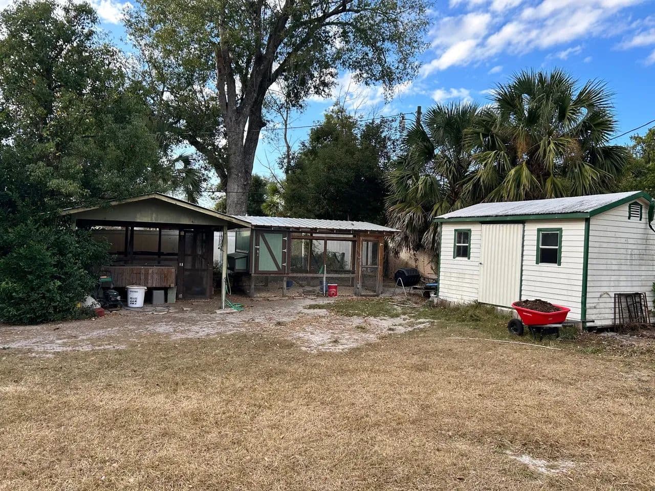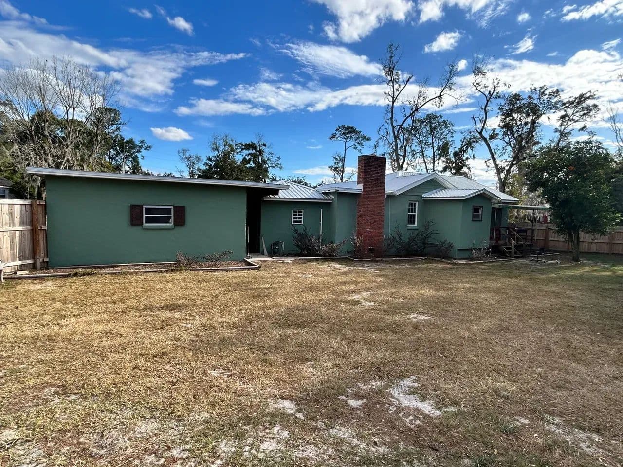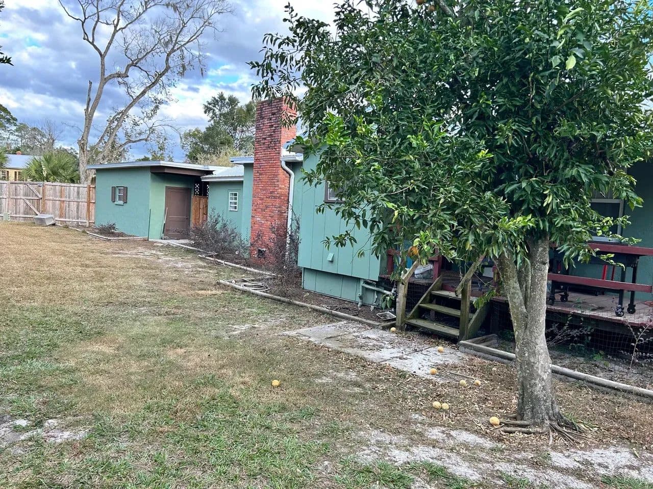 Welcome home to this beautifully updated 3-bedroom, 2-bath residence set on a spacious corner lot in one of Live Oak’s most established and inviting neighborhoods. Fully remodeled just two years ago, this home blends modern comfort with classic charm. Step inside to an open living and kitchen layout, perfect for gathering and entertaining. The kitchen flows seamlessly into a large step-down den, complete with a cozy fireplace that anchors the space and adds character. Throughout much of the home you’ll find refinished original hardwood floors, polished to a gorgeous shine—and yes, the home has had no pets, preserving those floors beautifully. The primary suite is its own retreat, featuring a generous walk-in tile shower and an oversized towel and linen closet for exceptional storage. Outside, enjoy a fenced backyard with plenty of room to play, garden, or relax. A huge, mature lemon tree produces abundantly, and a detached storage building offers additional utility. For those dreaming of homestead potential, the property includes a large chicken coop and an attached pole barn that has been thoughtfully converted into a spacious run with open rafters for roosting. Chickens are already in place and may stay or be removed based on buyer preference. With a two-car carport, utility room, and a welcoming neighborhood setting close to all Live Oak amenities, this property truly offers comfort, charm, and room to grow.