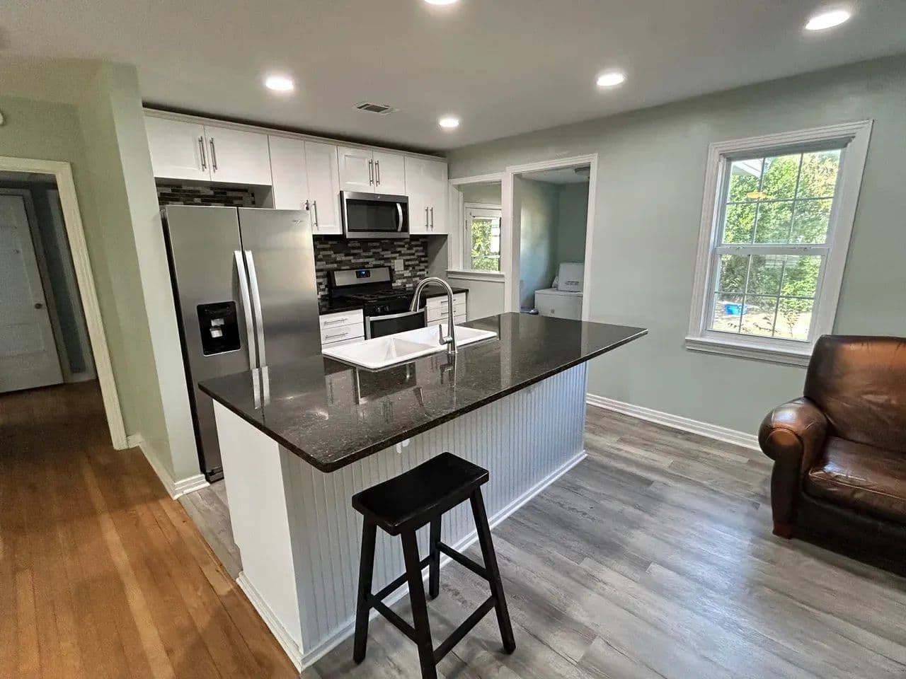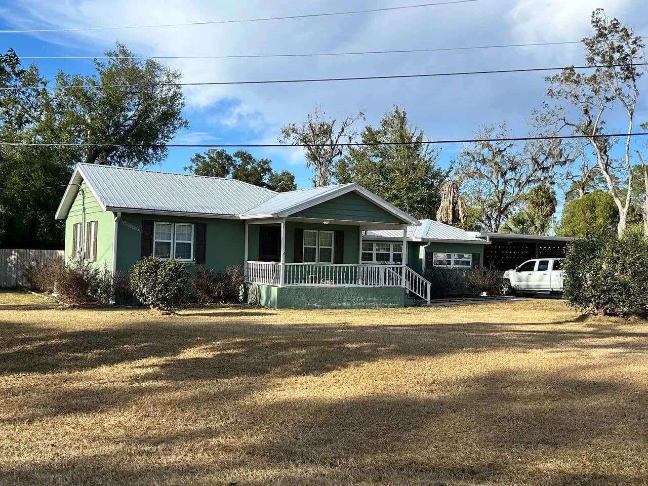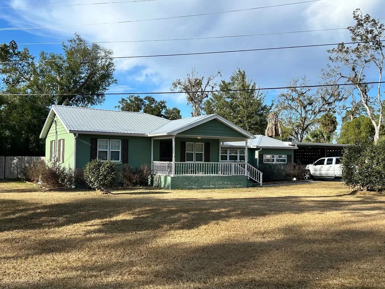 Welcome home to this beautifully updated 3-bedroom, 2-bath residence set on a spacious corner lot in one of Live Oak’s most established and inviting neighborhoods. Fully remodeled just two years ago, this home blends modern comfort with classic charm. Step inside to an open living and kitchen layout, perfect for gathering and entertaining. The kitchen flows seamlessly into a large step-down den, complete with a cozy fireplace that anchors the space and adds character. Throughout much of the home you’ll find refinished original hardwood floors, polished to a gorgeous shine—and yes, the home has had no pets, preserving those floors beautifully. The primary suite is its own retreat, featuring a generous walk-in tile shower and an oversized towel and linen closet for exceptional storage. Outside, enjoy a fenced backyard with plenty of room to play, garden, or relax. A huge, mature lemon tree produces abundantly, and a detached storage building offers additional utility. For those dreaming of homestead potential, the property includes a large chicken coop and an attached pole barn that has been thoughtfully converted into a spacious run with open rafters for roosting. Chickens are already in place and may stay or be removed based on buyer preference. With a two-car carport, utility room, and a welcoming neighborhood setting close to all Live Oak amenities, this property truly offers comfort, charm, and room to grow.