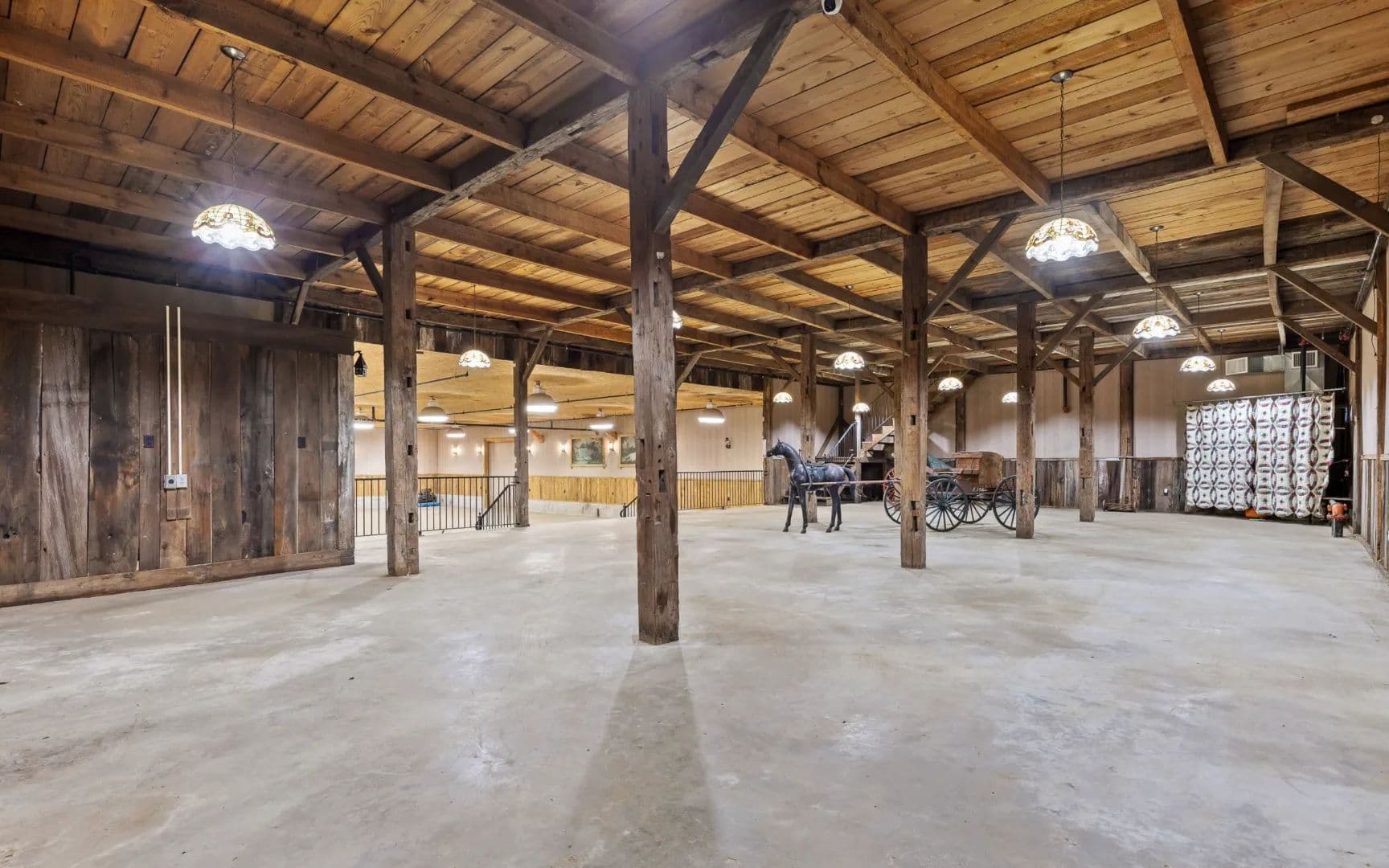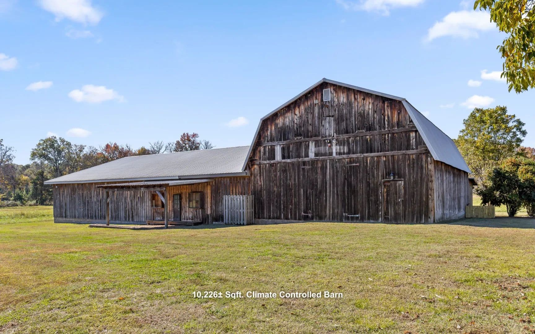 Pastures, fenced fields, and 2,300± feet creek frontage on Poe Branch. Gated entrance with 3 structures: 2,800+ sqft FARMHOUSE built in 1890. 35'x 60' garage/barn, and climate-controlled 10,200+ sqft. LUXURY CAR BARN.