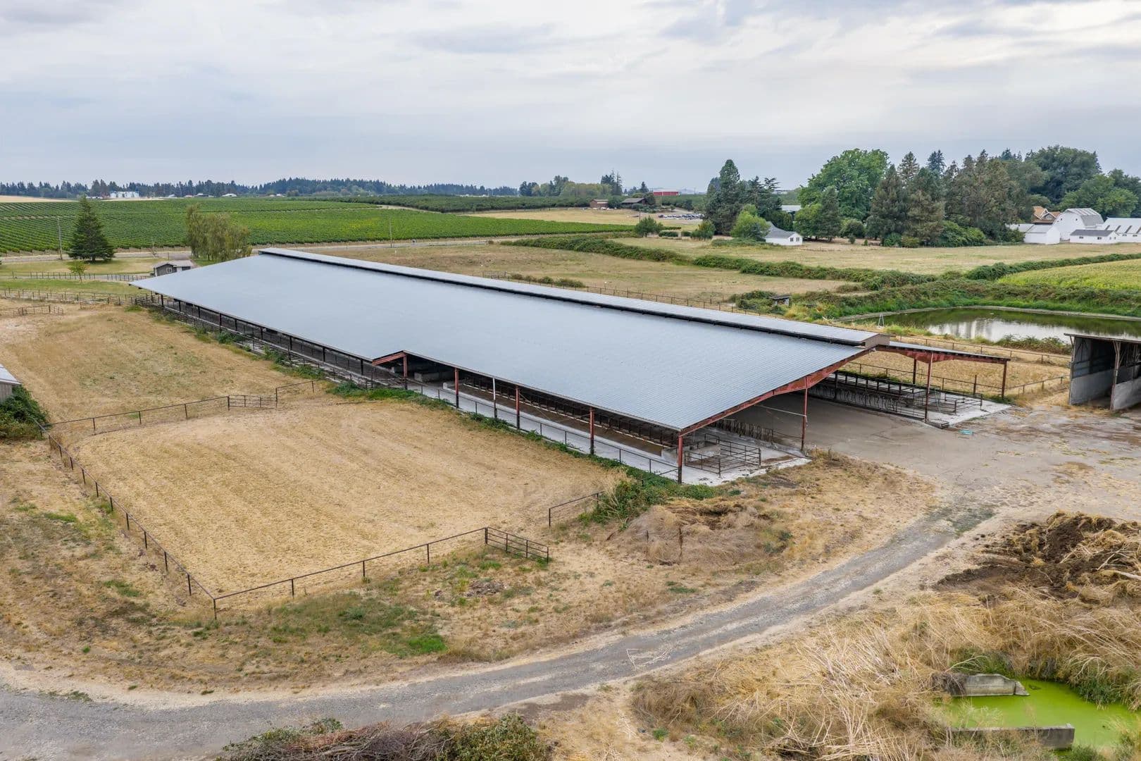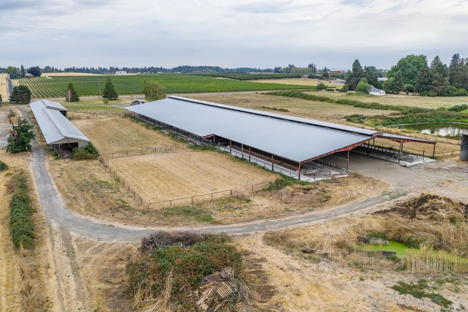 101± acre Willamette Riverfront Farm with EFU zoning, and secure water rights. Features diverse, highly productive soils including Chehalis, Amity, and Cloquato silt loams, plus 52,000 sq. ft. free-stall barn, hay cover, and former dairy setup. Historically farmed for corn and hay, currently leased for immediate income. Rare large-acreage parcel with good soils, water, and infrastructure, ideal for permanent crops, row crops Hazelnuts, Blueberries, or livestock.