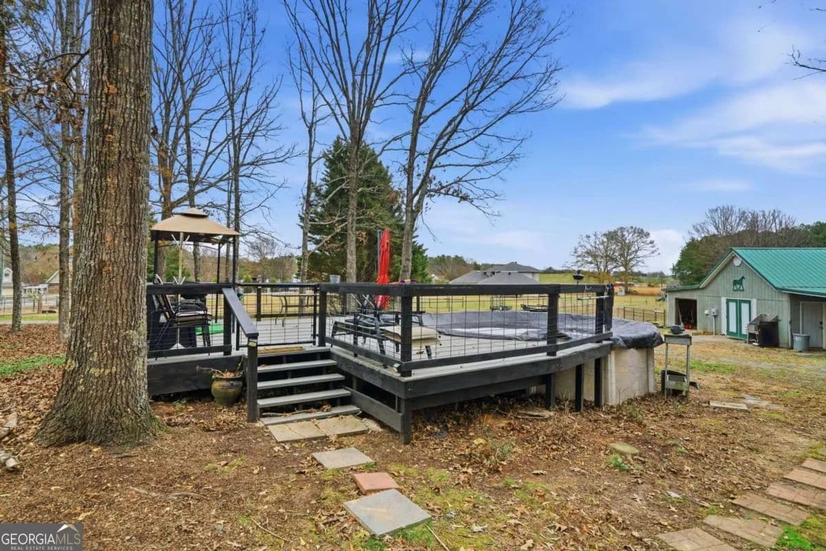 Truly one of a kind-this mini horse farm on 5 level, usable acres offers a lifestyle that is nearly impossible to find. If we're being honest, the magic starts outside, where the land and amenities steal the show. Approximately 4.5 acres are fully fenced, with additional interior fencing creating dedicated spaces for a garden and chicken coop. A separate driveway leads to the impressive 65-foot barn, complete with three stalls, a feed room, and a pasture shelter with a misting system, ensuring your horses enjoy comfort in every season. The property is exceptionally well-equipped with an indoor workshop featuring a roll-up door (currently used as a dog kennel), plus an adjacent outdoor workshop ideal for equipment, tractors, toys, or storage. You'll also find RV hookups, a separate carport, and ample space to support every hobby or project imaginable. After tending the land and animals, unwind in one of several outdoor living spaces. Relax in the hot tub on the back deck, perfectly positioned to overlook the pasture and take in sweeping views, or cool off in the large above-ground pool surrounded by expansive decking-perfect for summer gatherings. Inside, the home welcomes you with an open living room featuring vaulted ceilings and a stunning stone fireplace. The kitchen is thoughtfully designed with leathered granite countertops and stainless steel appliances, and flows seamlessly into a large all-season sunroom, ideal for year-round enjoyment. The finished basement offers a generous flex space suitable for a gym, media room, office, or guest area, along with a third full bathroom. Adding to the home's functionality is a handicap-accessible ramp leading to the back deck, enhancing accessibility without sacrificing style. This is more than a home-it's a rare opportunity to own a fully functional mini farm with resort-style amenities, versatile spaces, and room to live, work, and play. There is truly nothing else like it on the market. Owners have made approximately $50,000 in improvements including adding the pool deck in 2024, concrete in barn and stalls, mud management system, chicken coop and improving the fence.