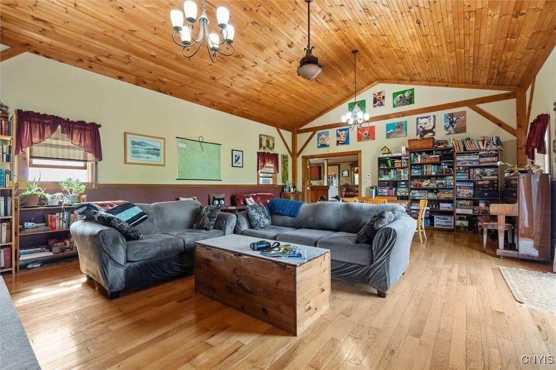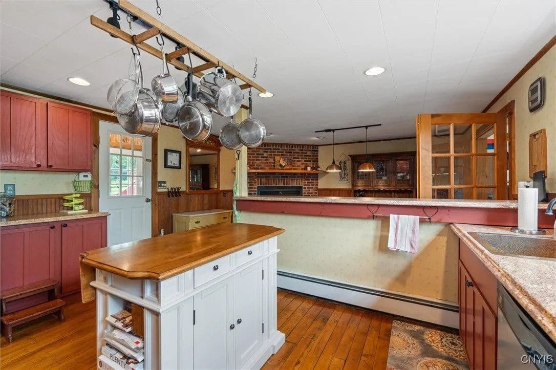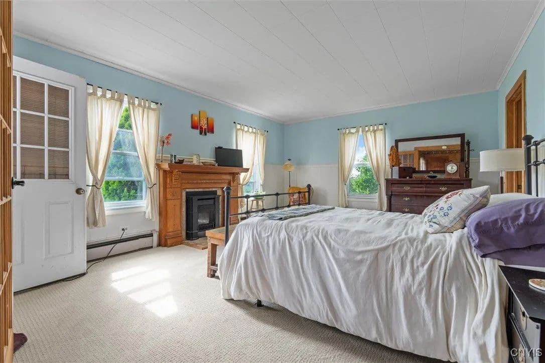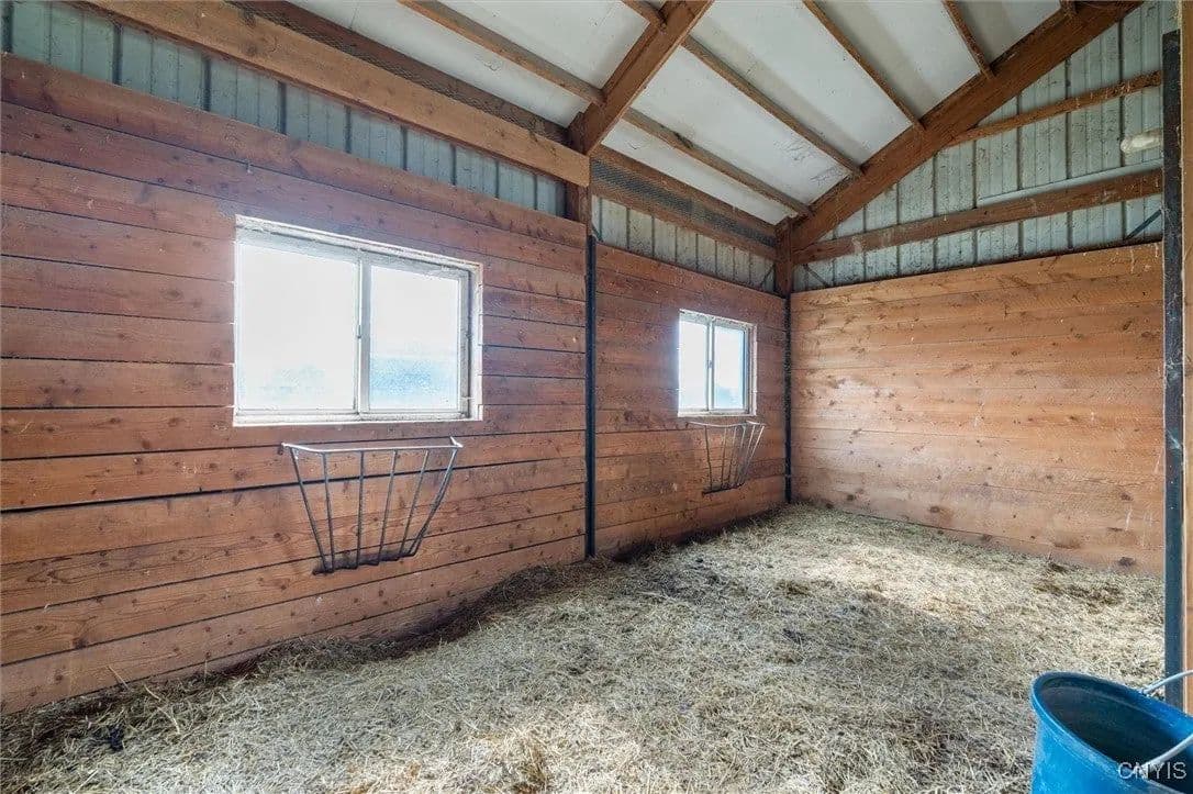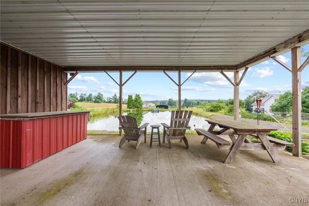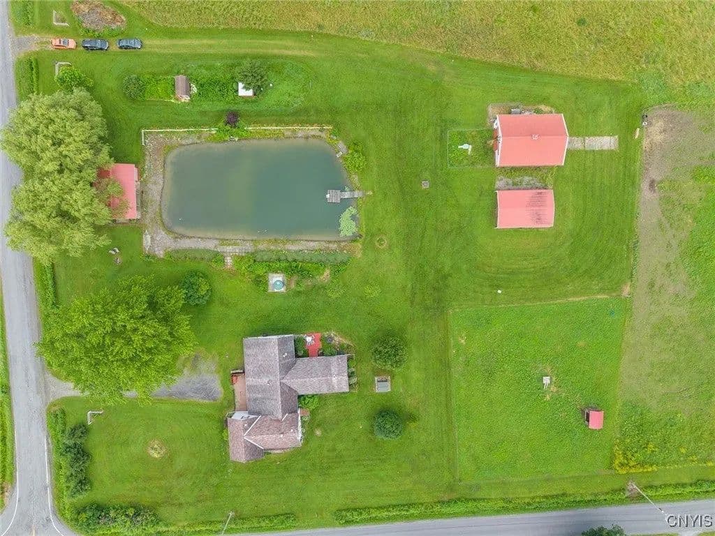 This beautifully expanded farmhouse offers 3,142 square feet of living space on 12 level acres. Originally constructed in the mid-1800s, the home blends historic character with thoughtful modern updates. The country kitchen features stainless steel appliances & original hardwood floors. The beautiful hardwoods continue to the front room; on one side, tucked behind French doors, is the primary suite. This spacious retreat includes a walk-in closet & a cozy propane fireplace. On the other side are a full bath and separate laundry room, creating a comfortable and functional private wing. A formal dining room boasts a wood-burning fireplace and newly installed hardwood floors (2021), perfect for cozy gatherings. The heart of the home is a 19’ by 25’ great room with vaulted ceilings and a stunning floor-to-ceiling stone propane fireplace. An additional full bath and private office flank the great room. Upstairs, you’ll find two additional spacious bedrooms, another walk-in closet, a full bathroom, and access to a walk-in attic Farmette ready features abound. A 40’ by 30’ Morton barn includes electric, water, & stalls with antique doors salvaged from the NYS Fairgrounds. Over two acres of fenced pasture include two livestock run-ins. There’s also a chicken coop, garden shed, and metal carport. A picturesque pond includes a floating dock, pavilion, fountain, and aerator. Systems and utilities have been updated for efficiency and reliability. 200 amp electrical service w. whole-house surge protection, and separate panel wired and ready for a whole-house generator (generator not included). A high-efficiency pellet boiler installed in 2019 w a 3.5-ton bulk hopper, thermal storage, stainless chimney liner, and remote monitoring with heating zoned into four areas supported by pellet, wood, & propane options. A tankless propane hot water system was added in 2019, and both the house well pressure tank and pond well pump were replaced in 2023. Fiber optic internet is available. This move-in ready farmette offers history, comfort, and room to grow—all within a peaceful and practical setting. Also listed as single family S1621453