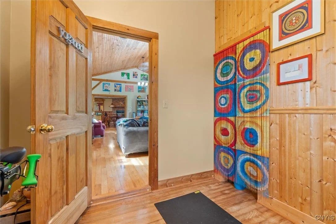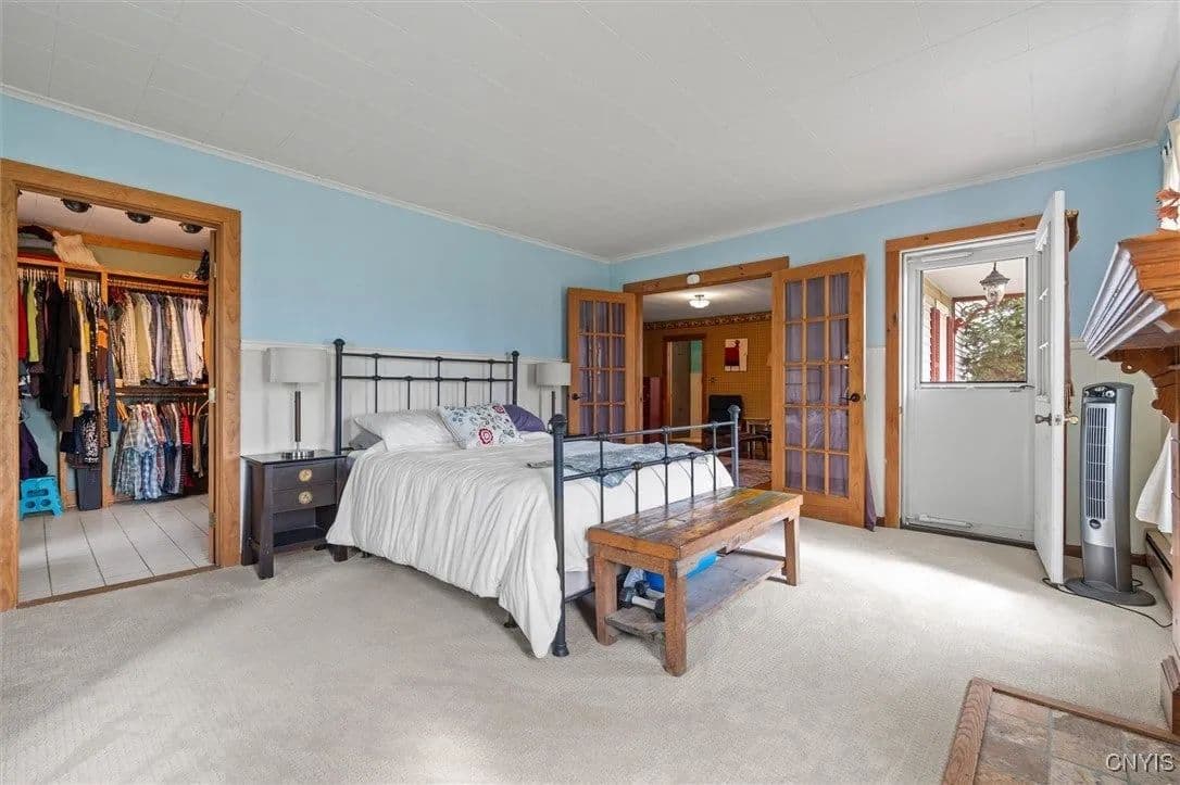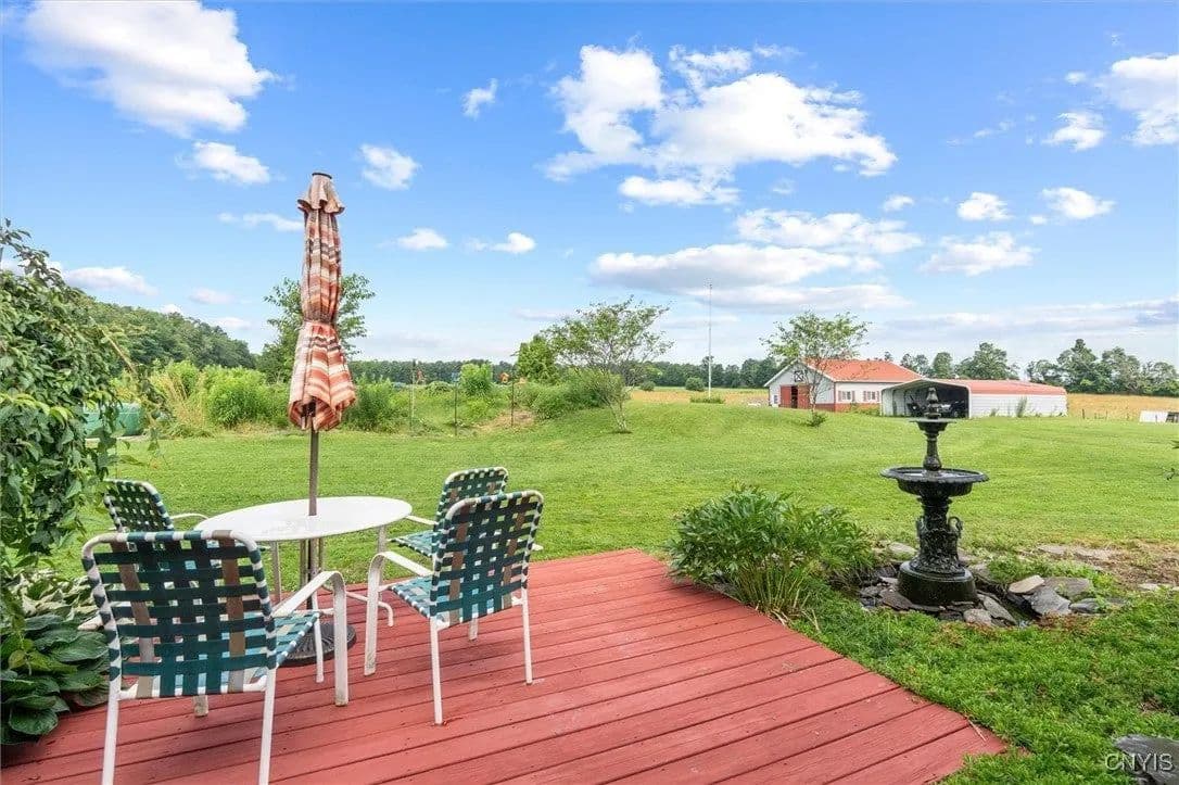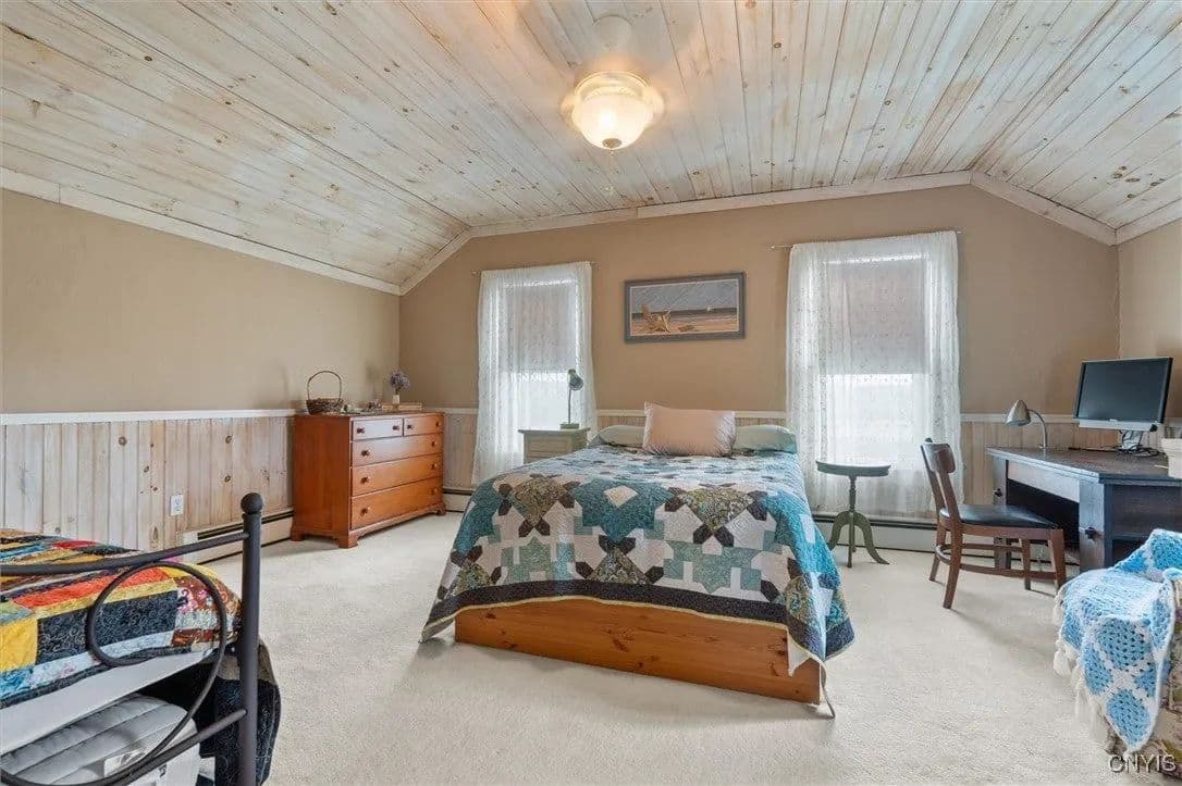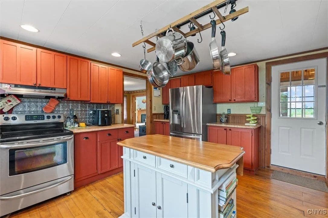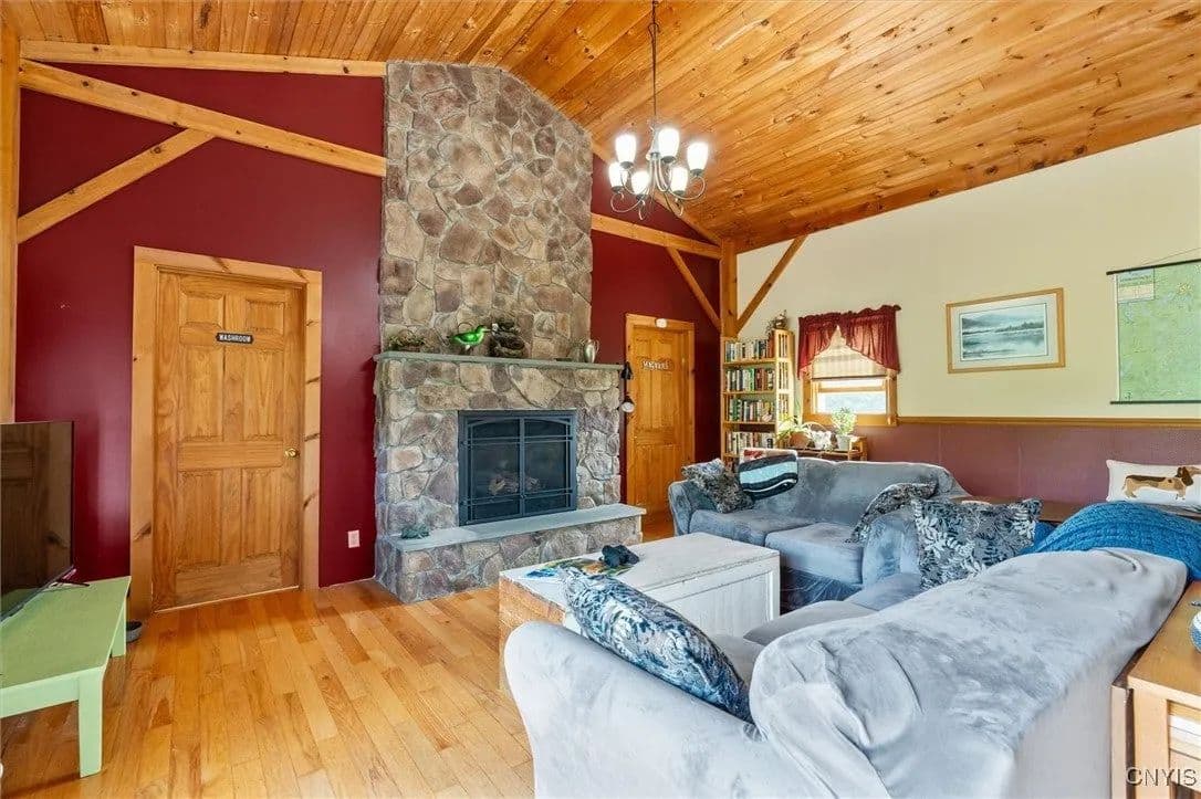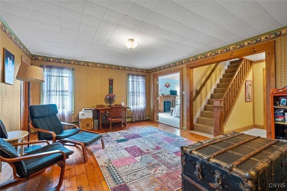 This beautifully expanded farmhouse offers 3,142 square feet of living space on 12 level acres. Originally constructed in the mid-1800s, the home blends historic character with thoughtful modern updates. The country kitchen features stainless steel appliances & original hardwood floors. The beautiful hardwoods continue to the front room; on one side, tucked behind French doors, is the primary suite. This spacious retreat includes a walk-in closet & a cozy propane fireplace. On the other side are a full bath and separate laundry room, creating a comfortable and functional private wing. A formal dining room boasts a wood-burning fireplace and newly installed hardwood floors (2021), perfect for cozy gatherings. The heart of the home is a 19’ by 25’ great room with vaulted ceilings and a stunning floor-to-ceiling stone propane fireplace. An additional full bath and private office flank the great room. Upstairs, you’ll find two additional spacious bedrooms, another walk-in closet, a full bathroom, and access to a walk-in attic Farmette ready features abound. A 40’ by 30’ Morton barn includes electric, water, & stalls with antique doors salvaged from the NYS Fairgrounds. Over two acres of fenced pasture include two livestock run-ins. There’s also a chicken coop, garden shed, and metal carport. A picturesque pond includes a floating dock, pavilion, fountain, and aerator. Systems and utilities have been updated for efficiency and reliability. 200 amp electrical service w. whole-house surge protection, and separate panel wired and ready for a whole-house generator (generator not included). A high-efficiency pellet boiler installed in 2019 w a 3.5-ton bulk hopper, thermal storage, stainless chimney liner, and remote monitoring with heating zoned into four areas supported by pellet, wood, & propane options. A tankless propane hot water system was added in 2019, and both the house well pressure tank and pond well pump were replaced in 2023. Fiber optic internet is available. This move-in ready farmette offers history, comfort, and room to grow—all within a peaceful and practical setting. Also listed as single family S1621453