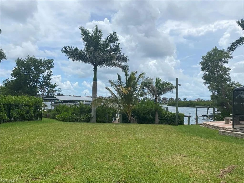 Come and enjoy this beautiful quaint neighborhood of the Carolands by Bonita Beach Survey and building plans are available per your request or bring your own design It is a pie shaped lot with a boat dock and lift on the Bay and one bridge to the Gulf Come and build your dream home. See building plans for existing lot in the attachments ANOTHER LOT WITH LARGE WATERFRONT ALSO AVAILABLE . LOOK AT THE LAST PICTURES.